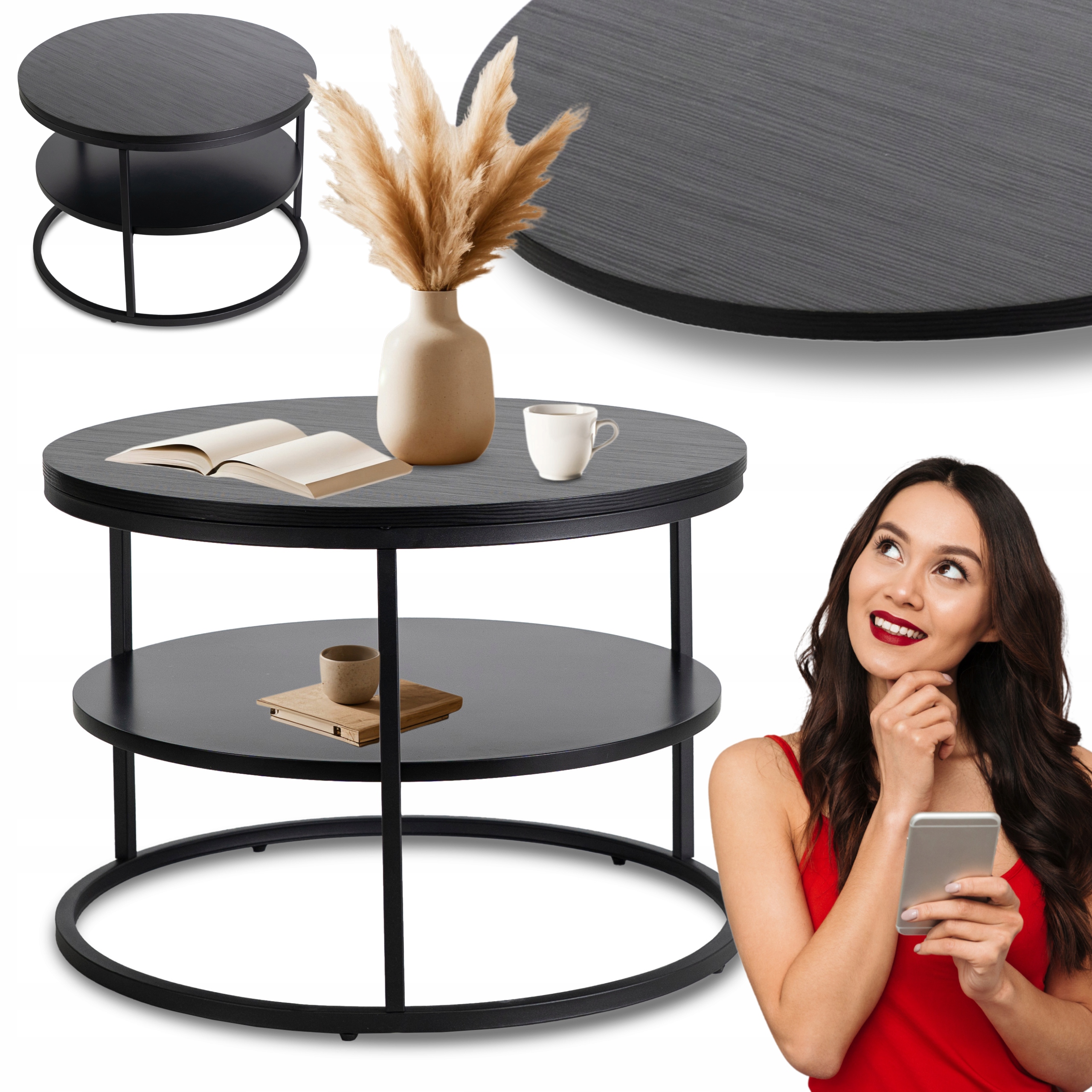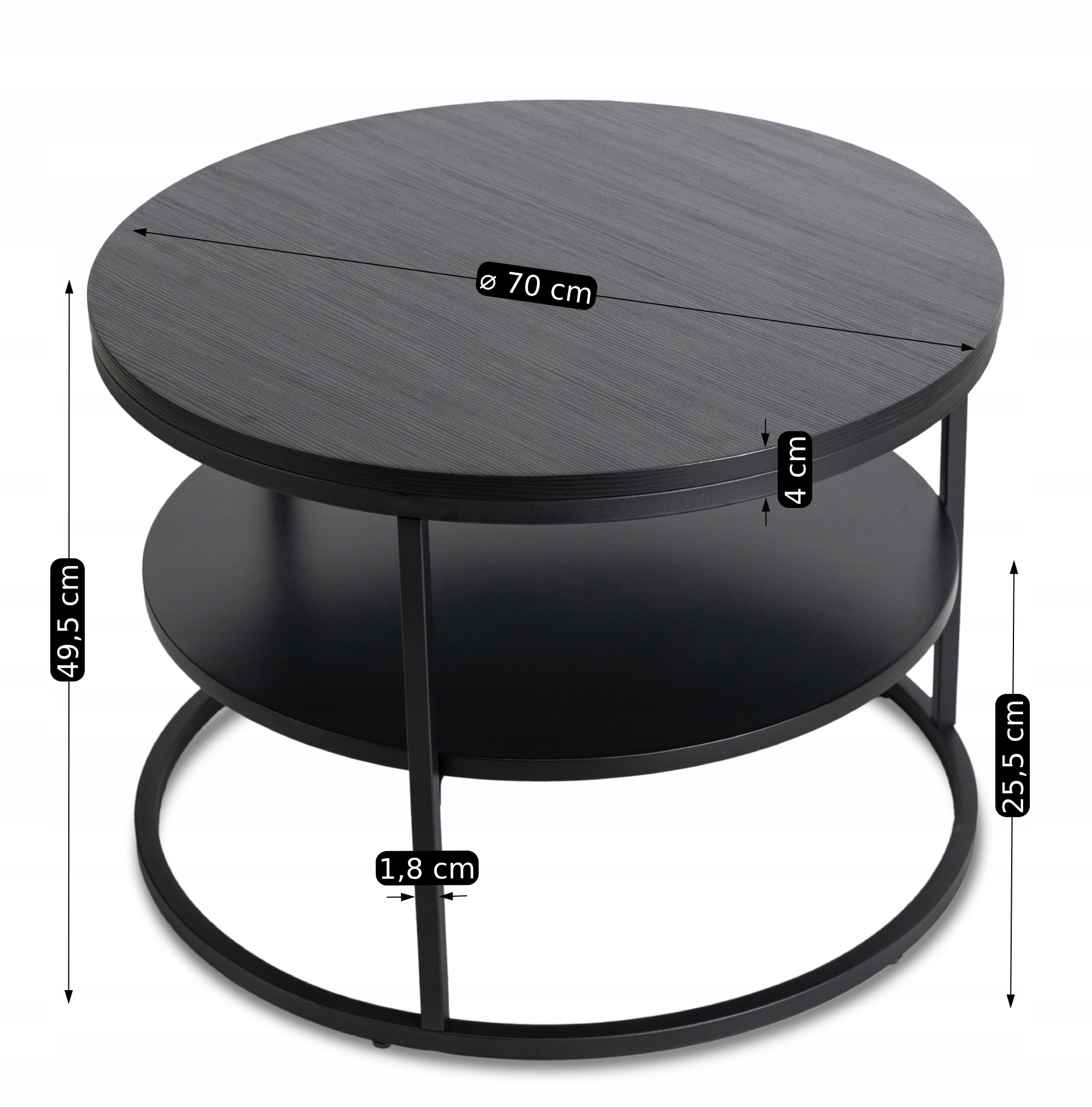Stolik Kawowy Okrągły Loft Ława Do Salonu Kanapy Mała Czarna BEST Ø70 ⭐⭐⭐⭐⭐