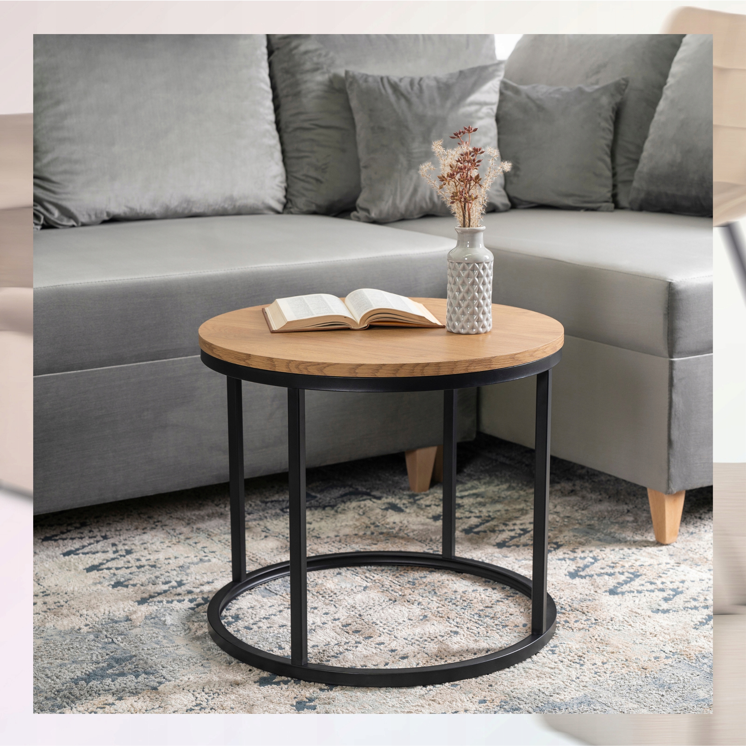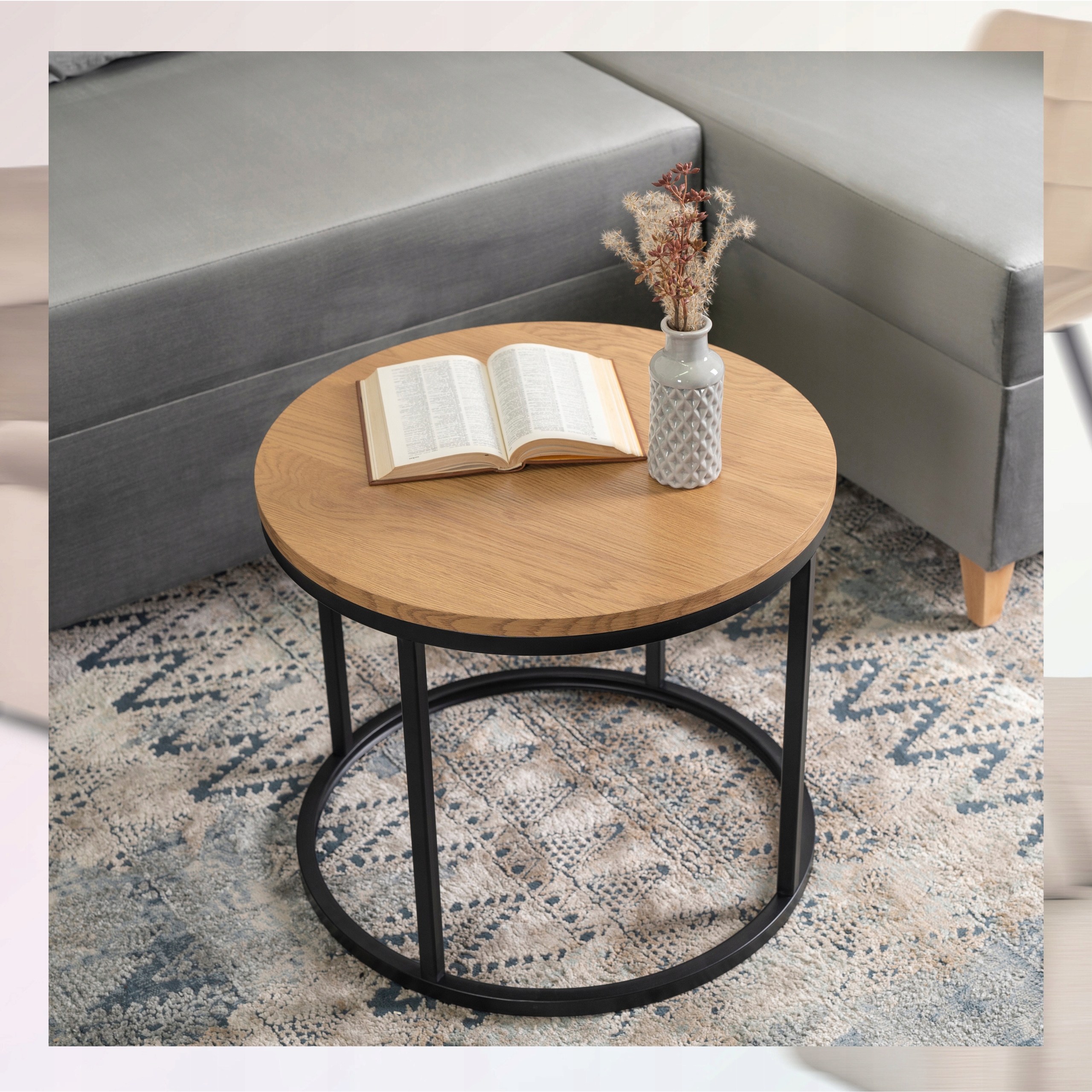 Stolik Kawowy Okrągły Loft Mały LELLA Ława Mała Okrągła Dąb Złoty Czarny ⭐⭐⭐⭐⭐