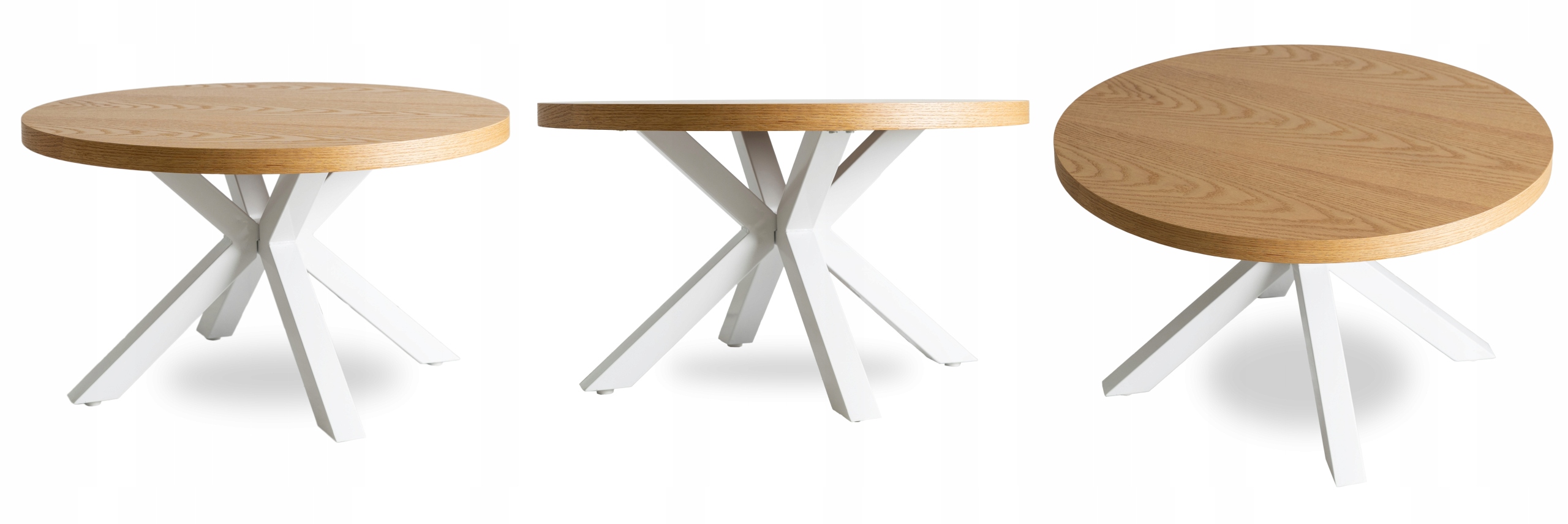 Stolik Kawowy Okrągły Mały Biały Dąb Złoty Loft Nowoczesny Ława LINCOLN ⭐⭐⭐⭐⭐
