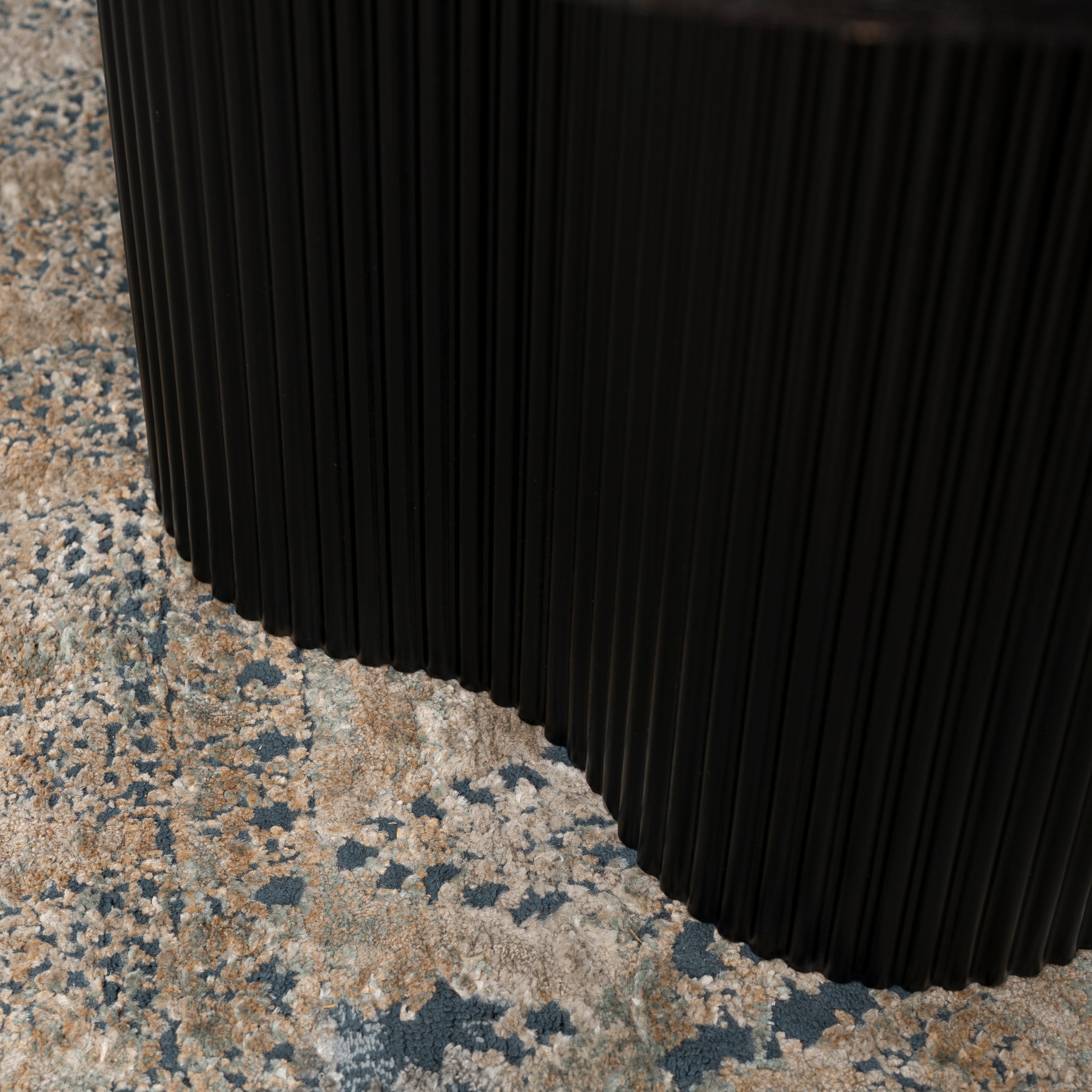 Stolik Kawowy Okrągły Mały Czarny Ryflowany Loft Nowoczesny Ława DERIAN ⭐⭐⭐⭐⭐