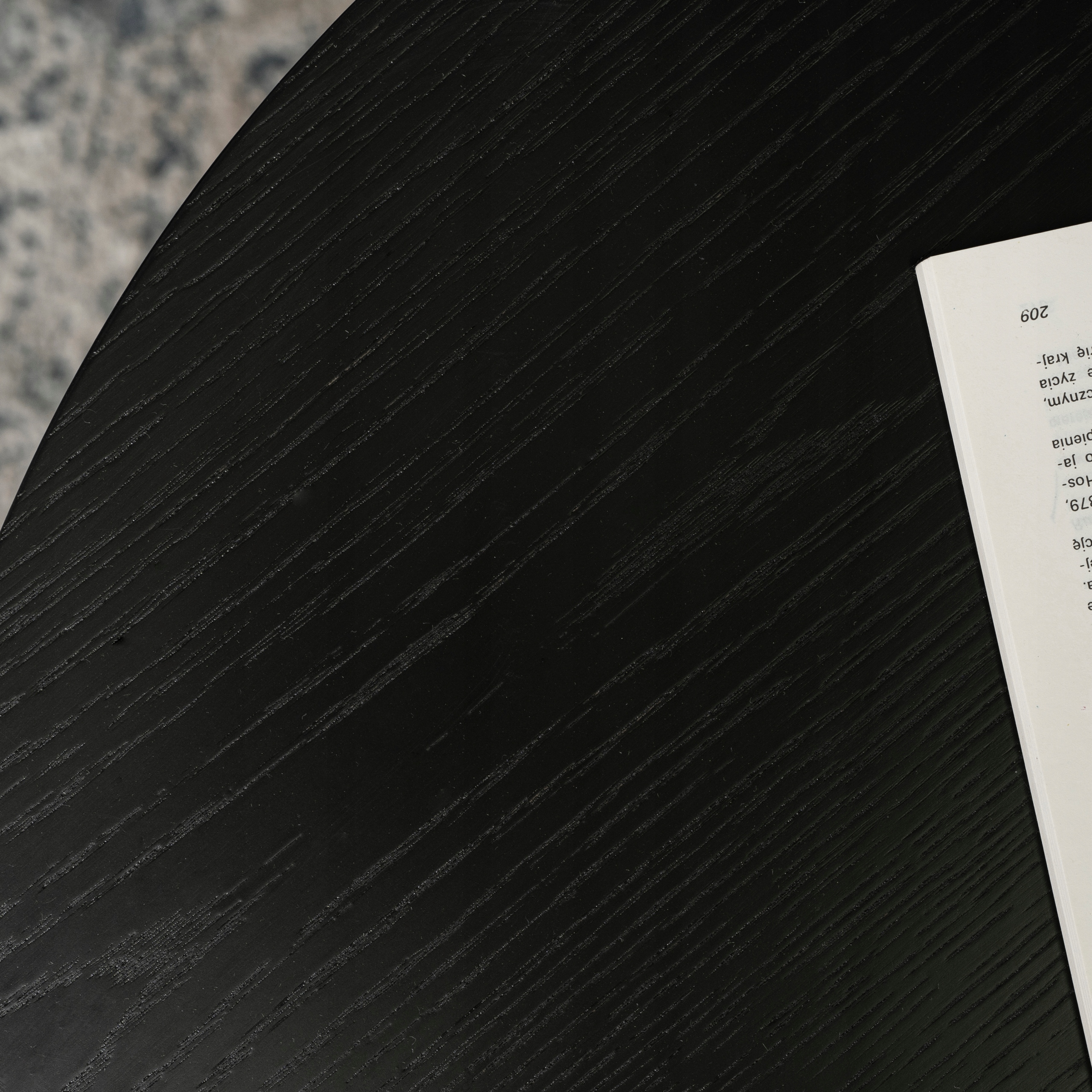 ⭐ Blat stolika wykonany jest w kolorze czarnym z eleganckim wzorem drewna.