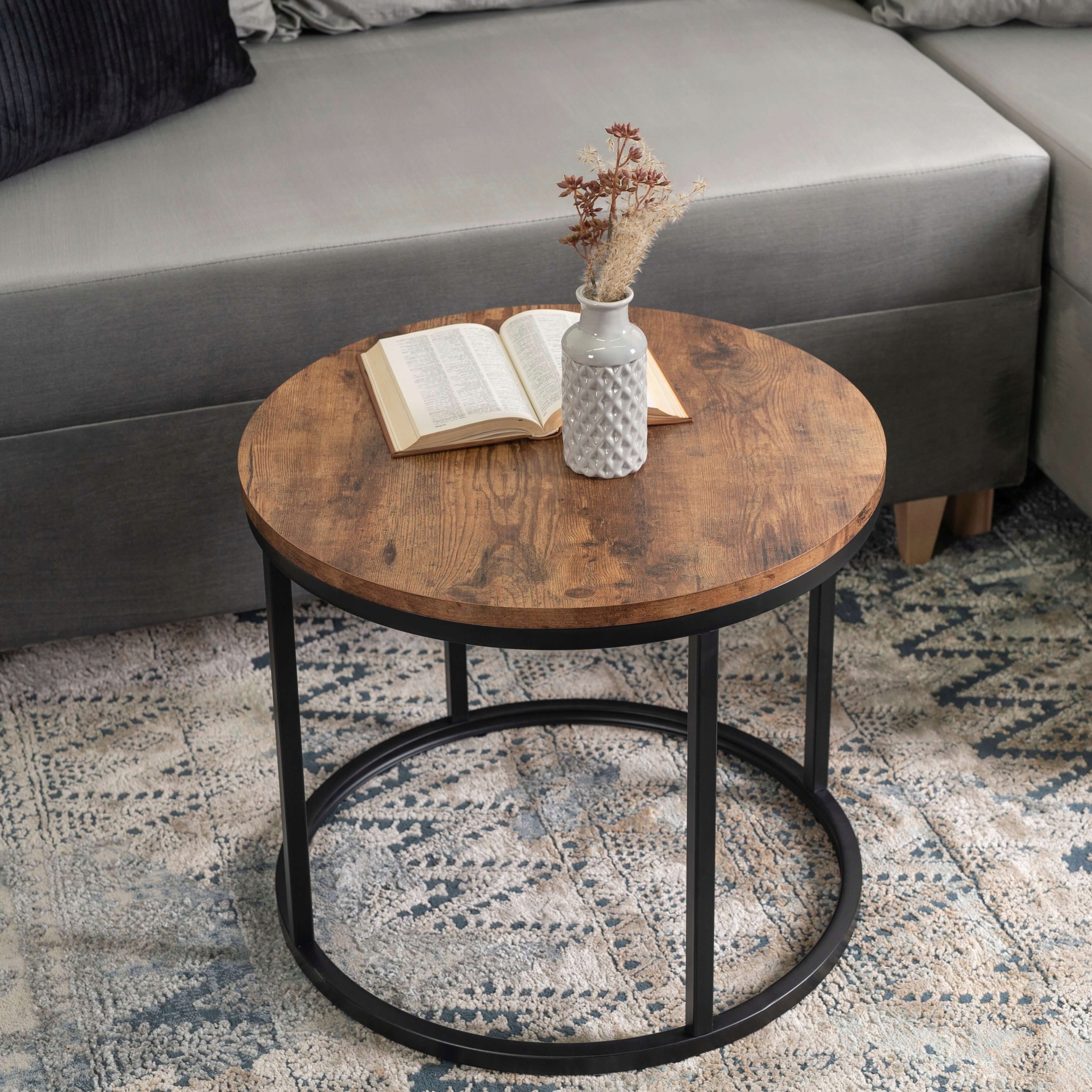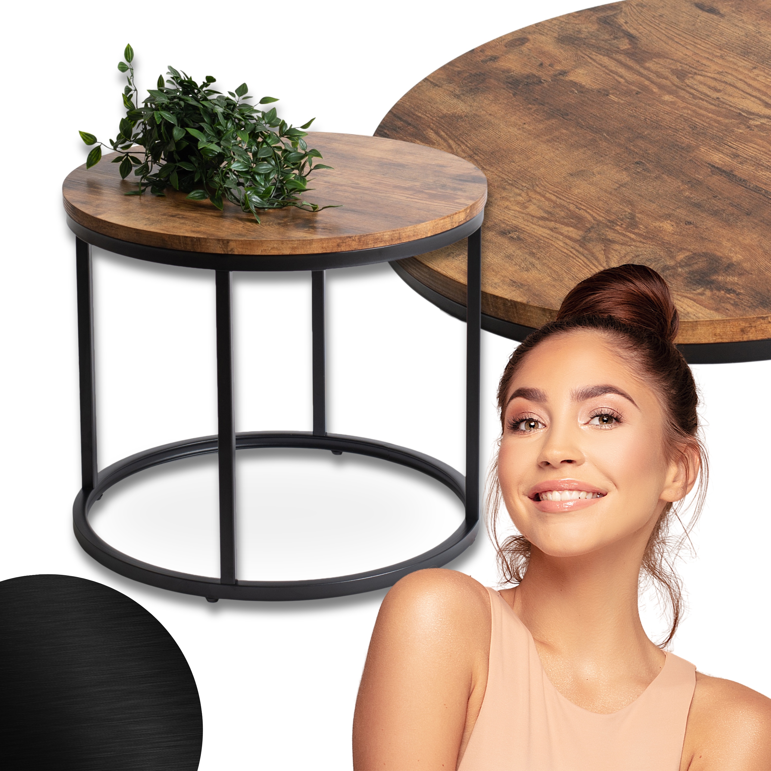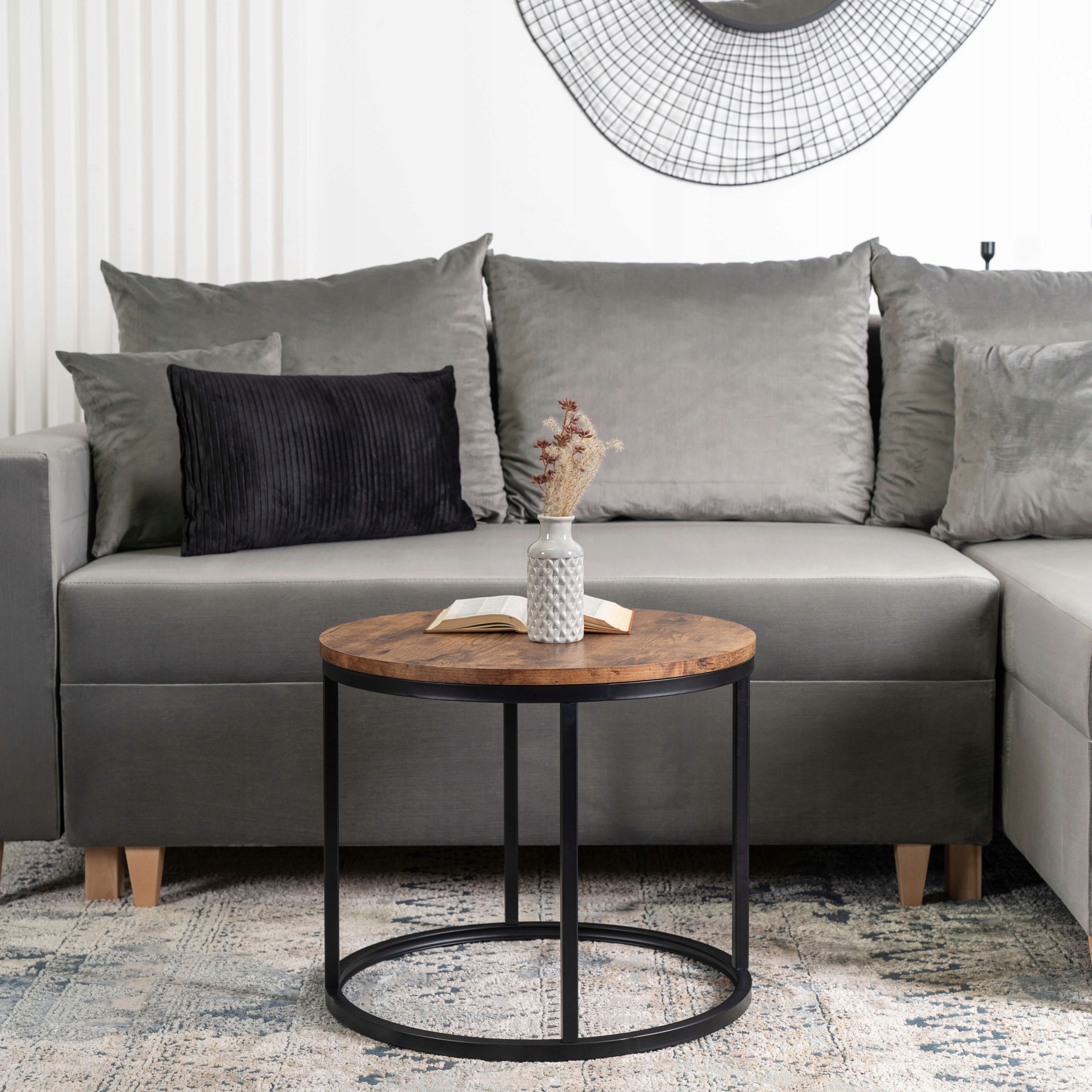 Stolik Kawowy Okrągły Mały Loft Ława Mała Salon Dąb Rustykalny Czarny TIM ⭐⭐⭐⭐⭐