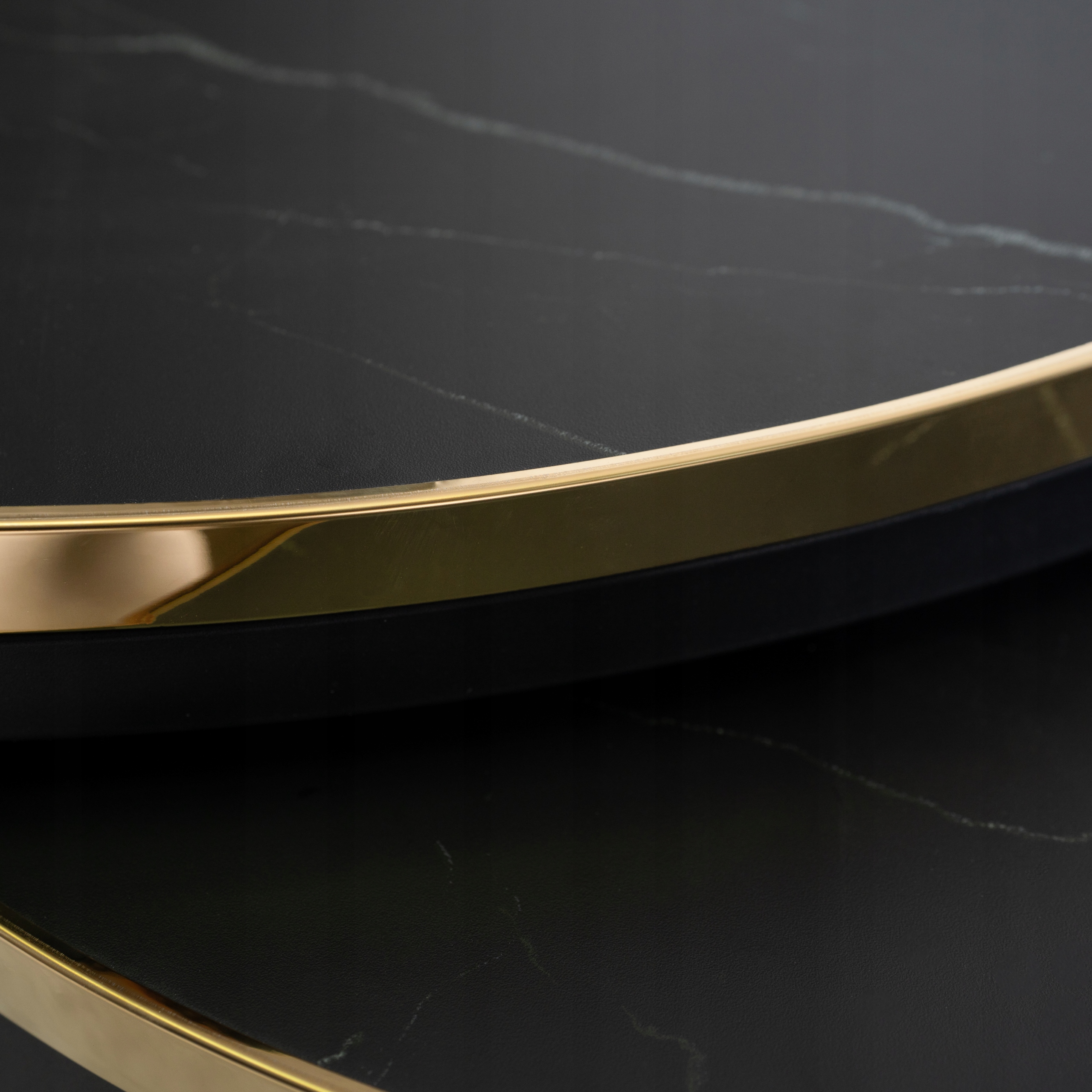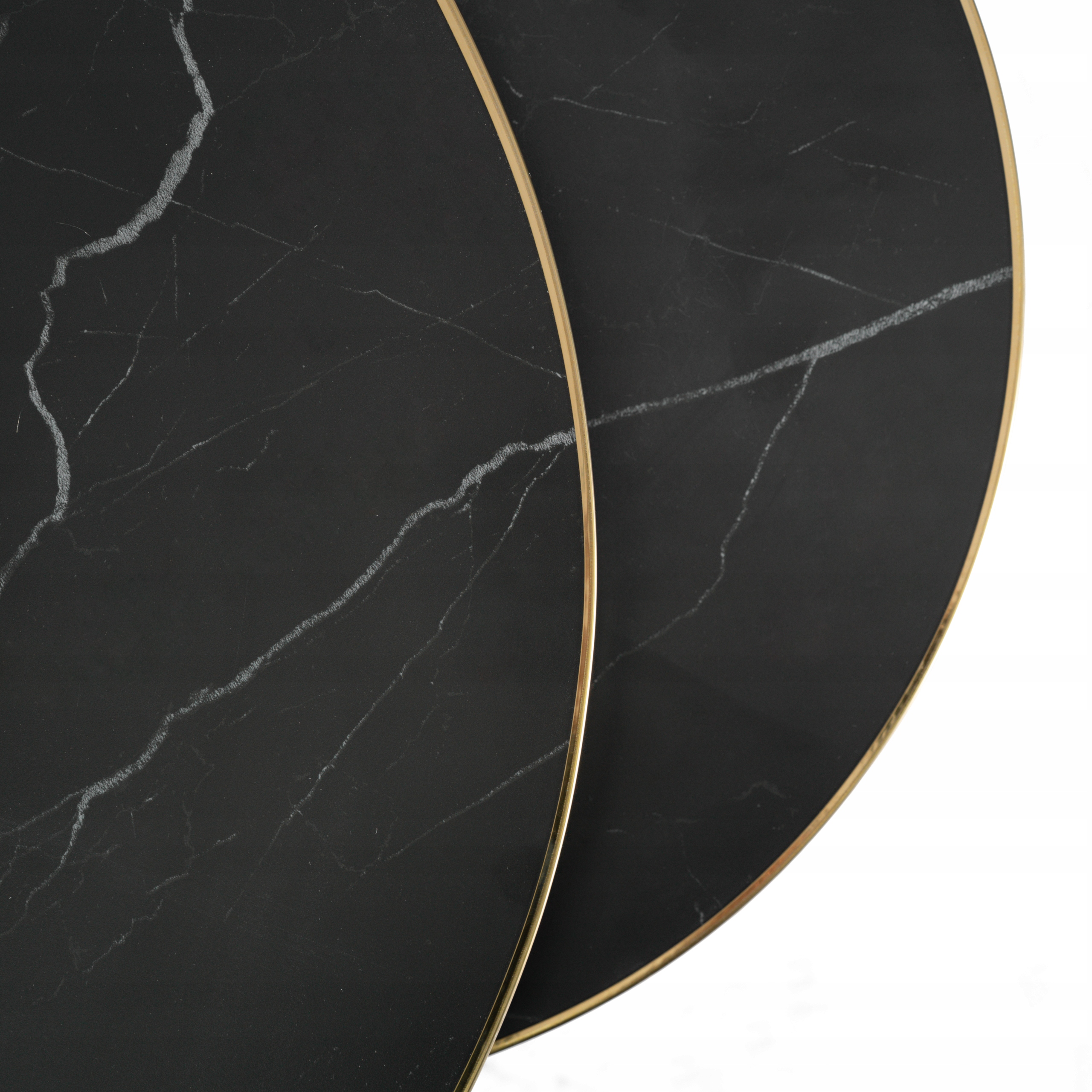 Stolik Kawowy Okrągły Marmur Czarny Zestaw 2w1 Ława Glamour Złoty ARON ⭐⭐⭐⭐⭐