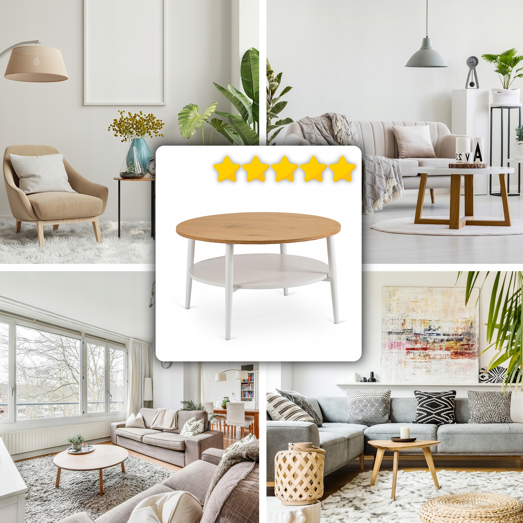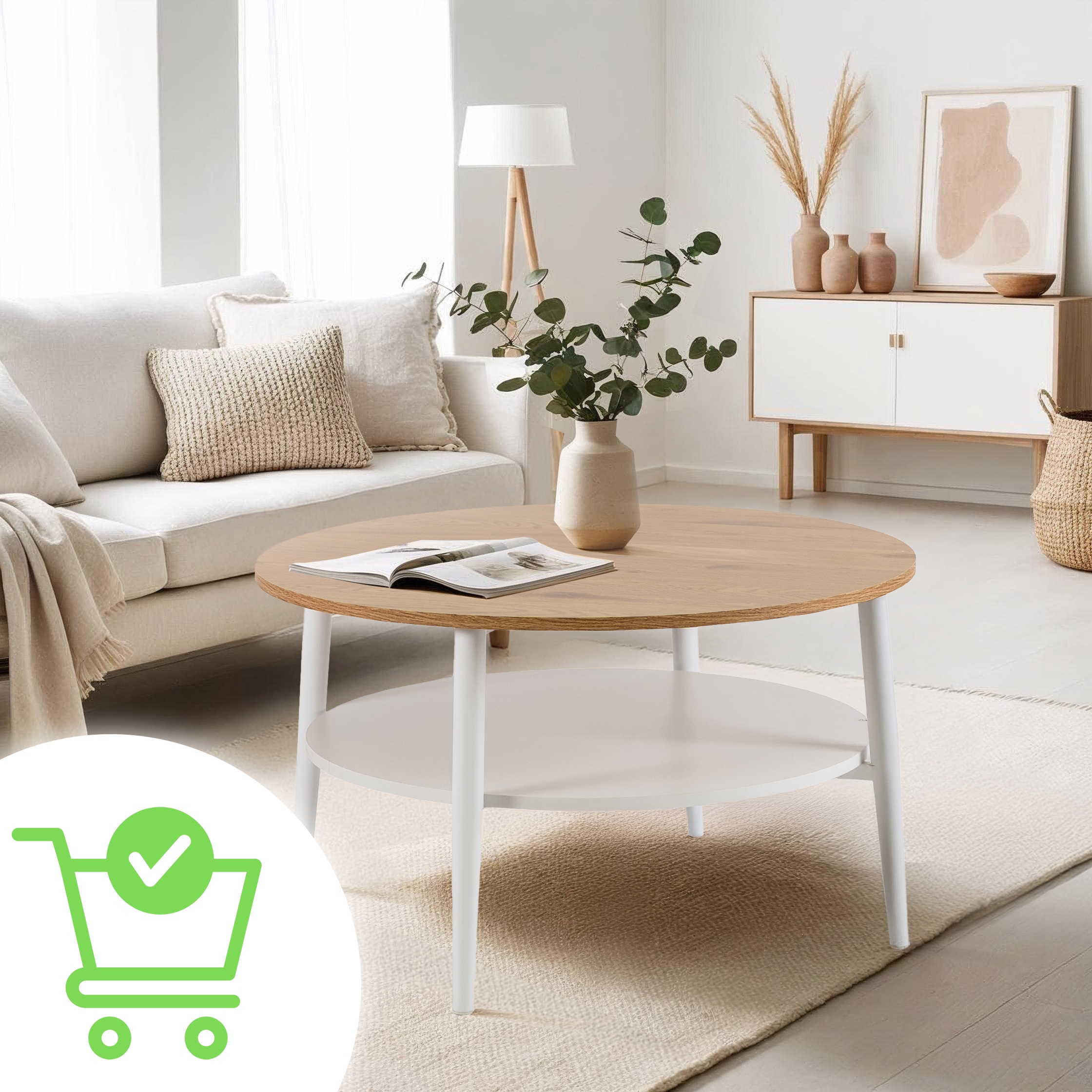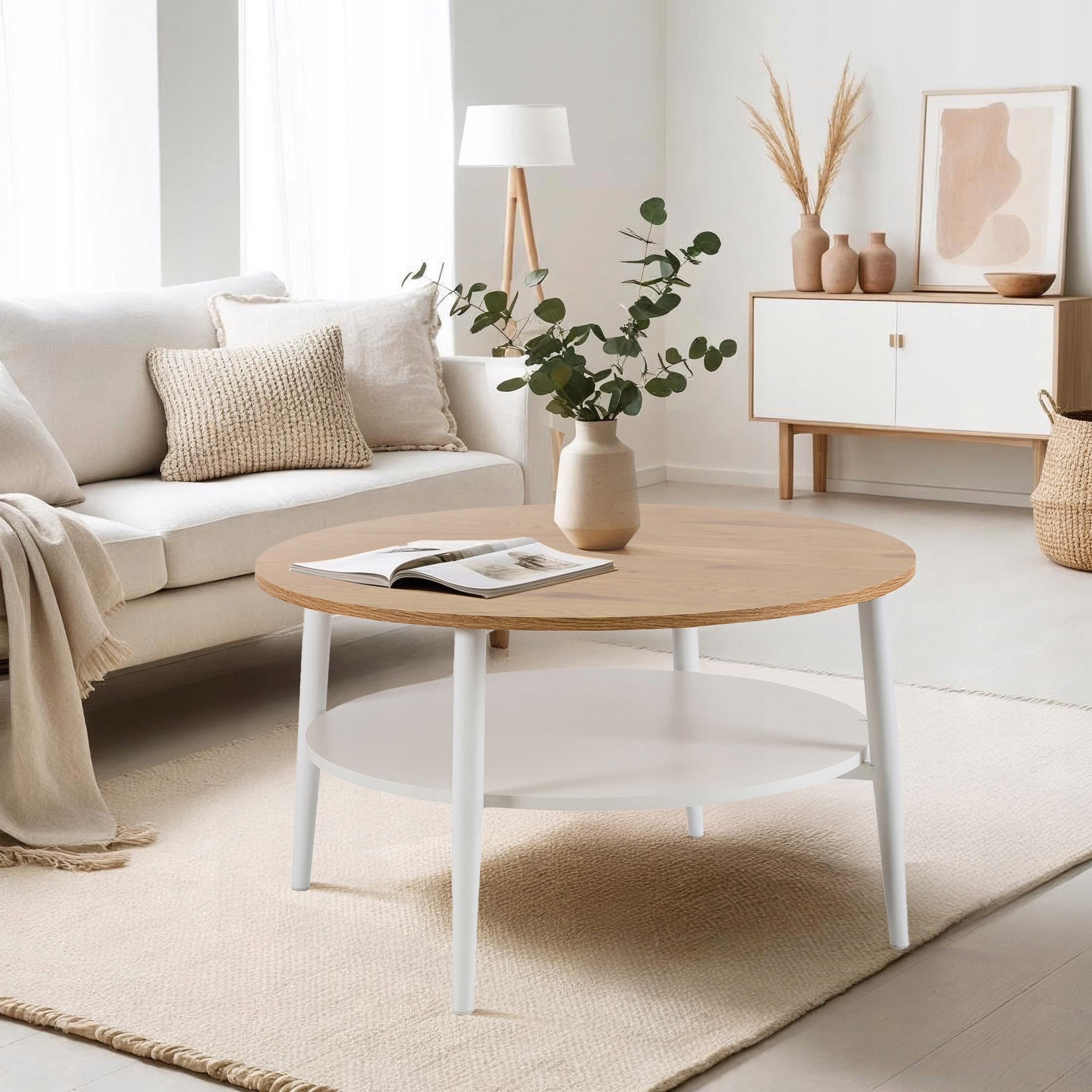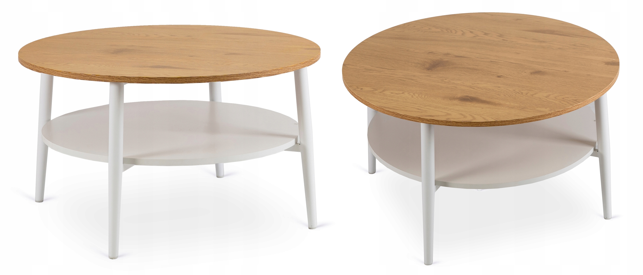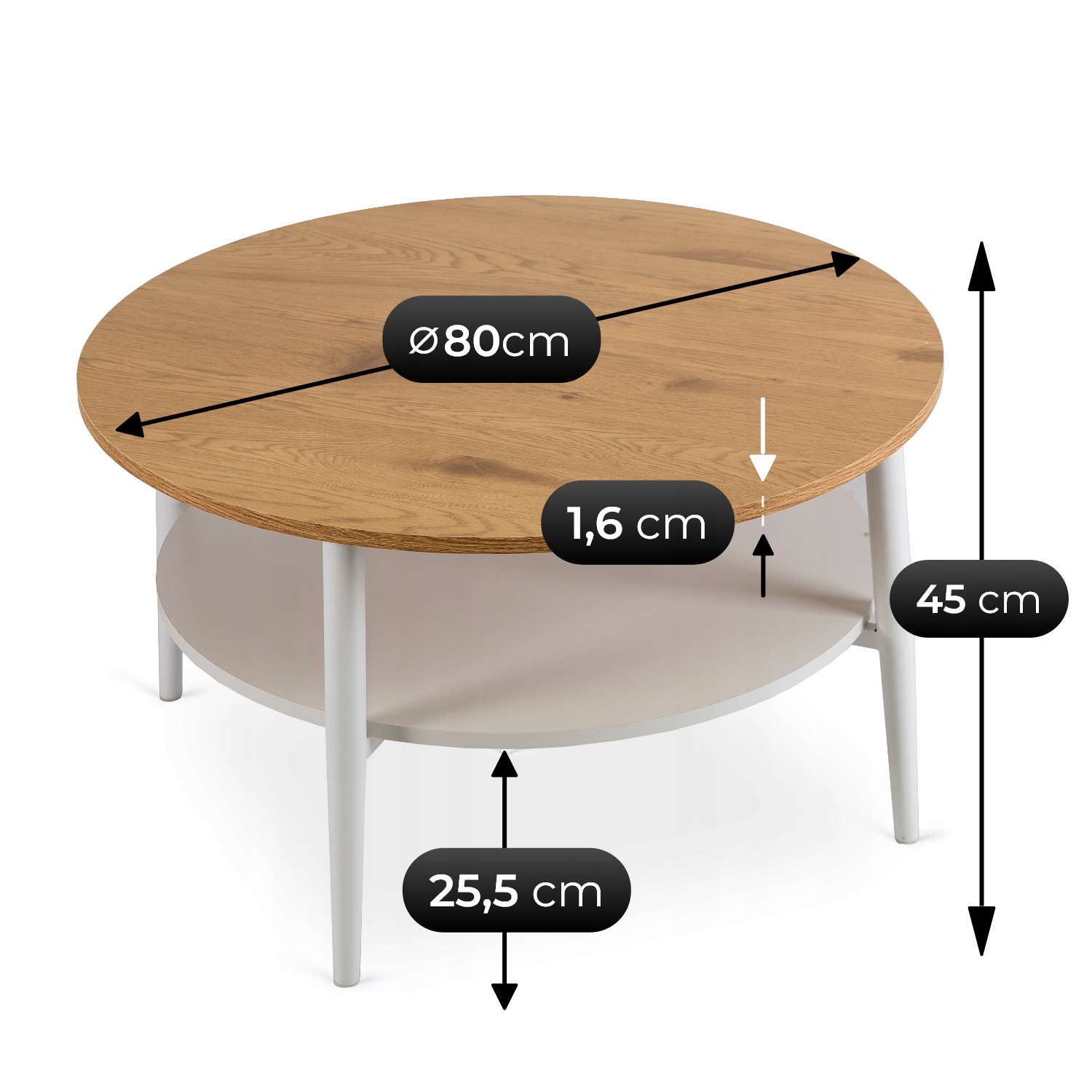 Stolik Kawowy Okrągły Skandynawski Ława Okrągła Dąb Złoty Biały PAULO MAX ✨