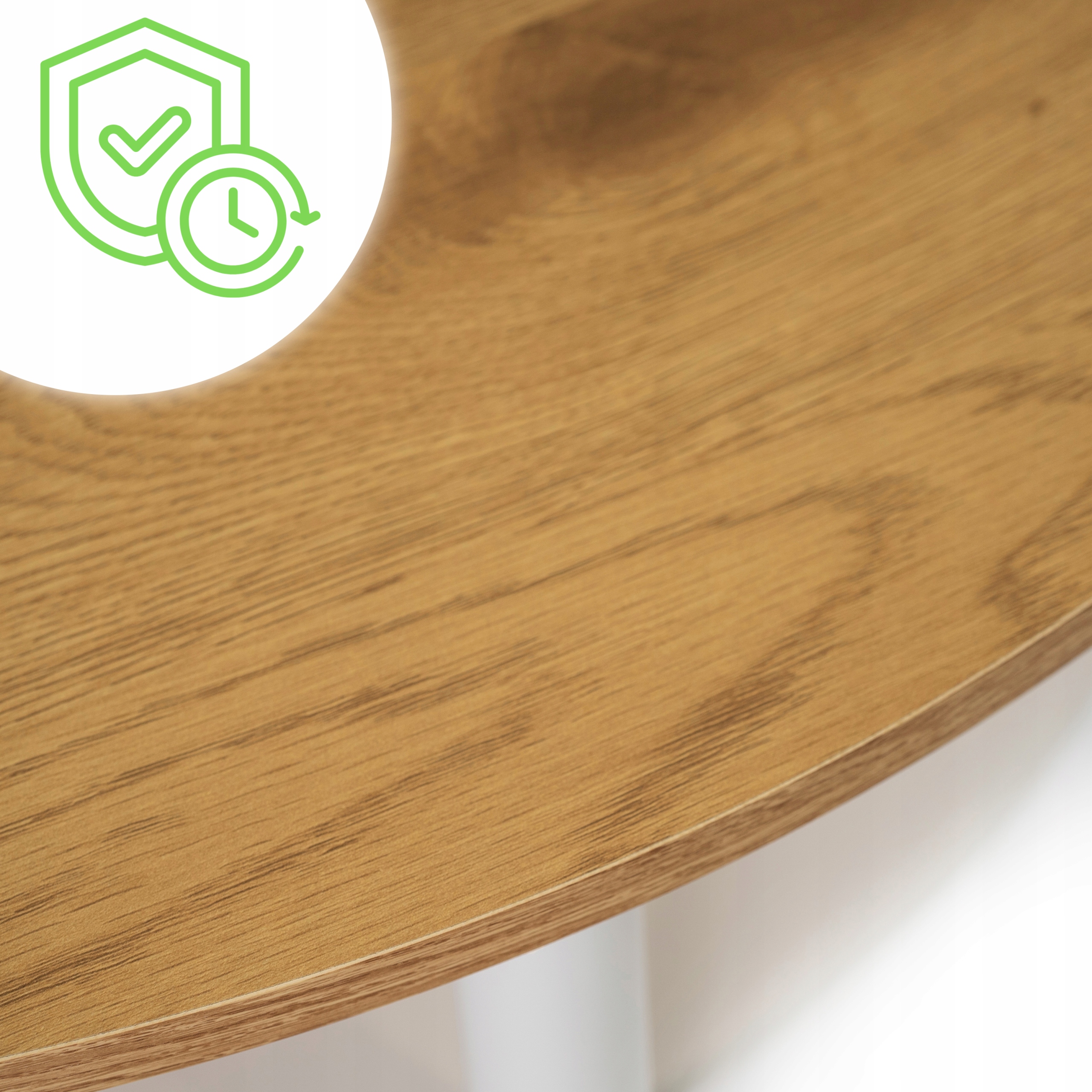 Blat wykonany z trwałej płyty MDF zachowuje elegancki wygląd na dłużej, jest odporny na drobne uszkodzenia i łatwy w utrzymaniu czystości – nie rysuje się i nie odbarwia tak łatwo jak tańsze odpowiedniki.