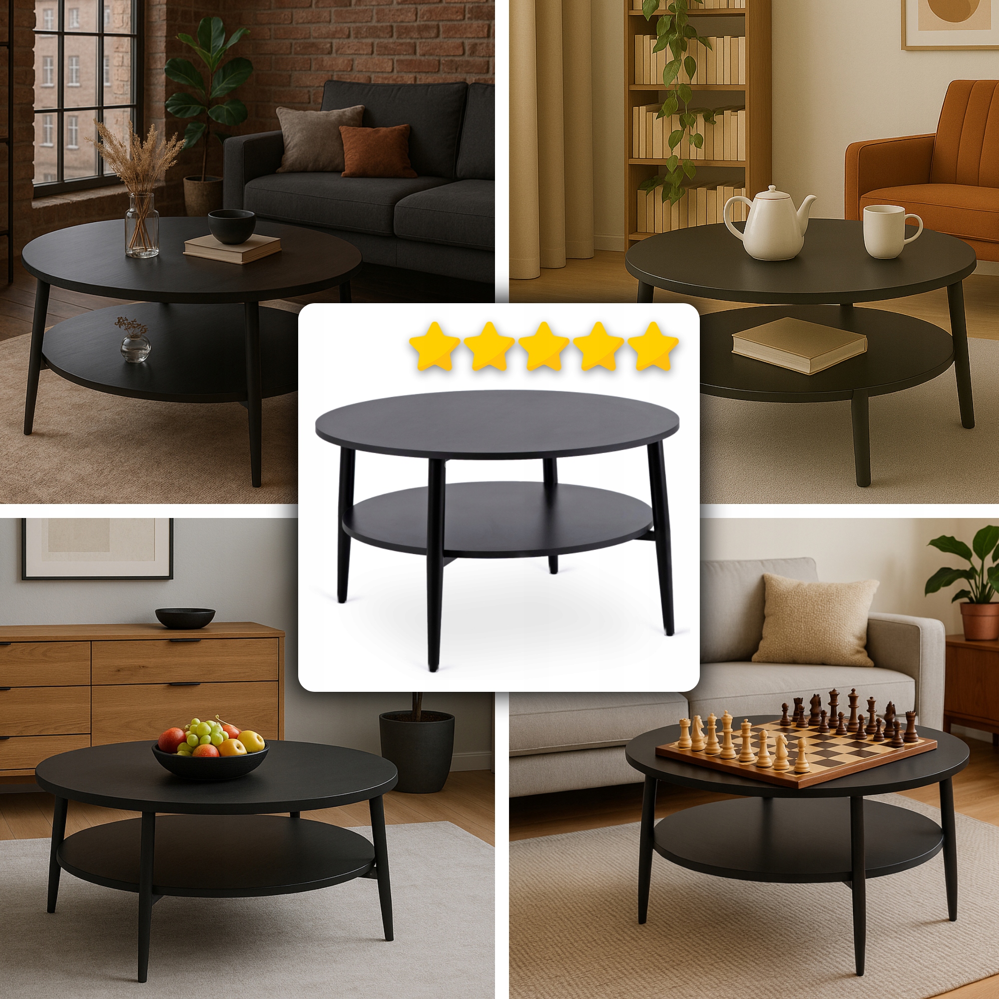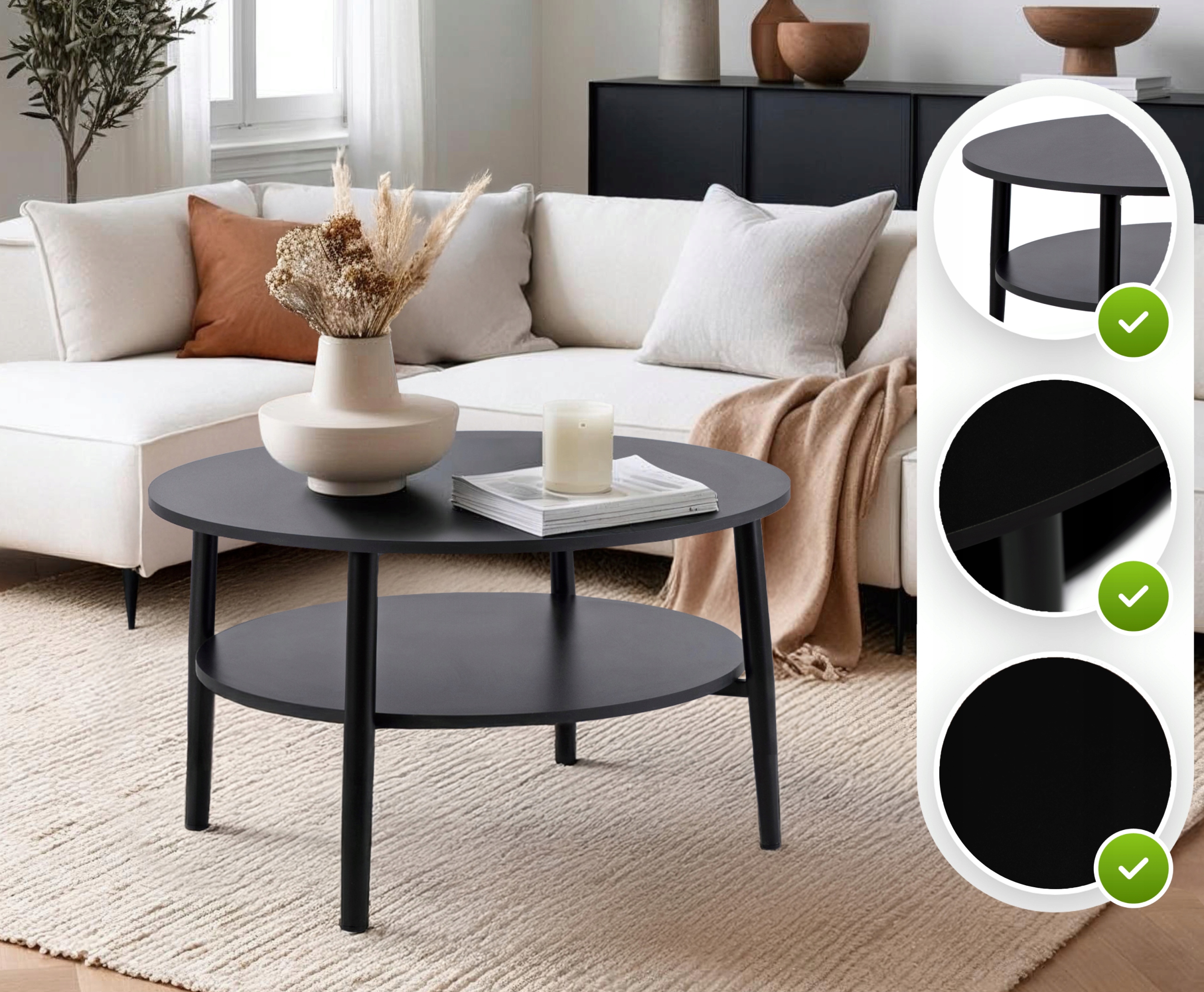 Stolik Kawowy Okrągły Skandynawski Ława Okrągła Loft Czarny PAULO MAX✨