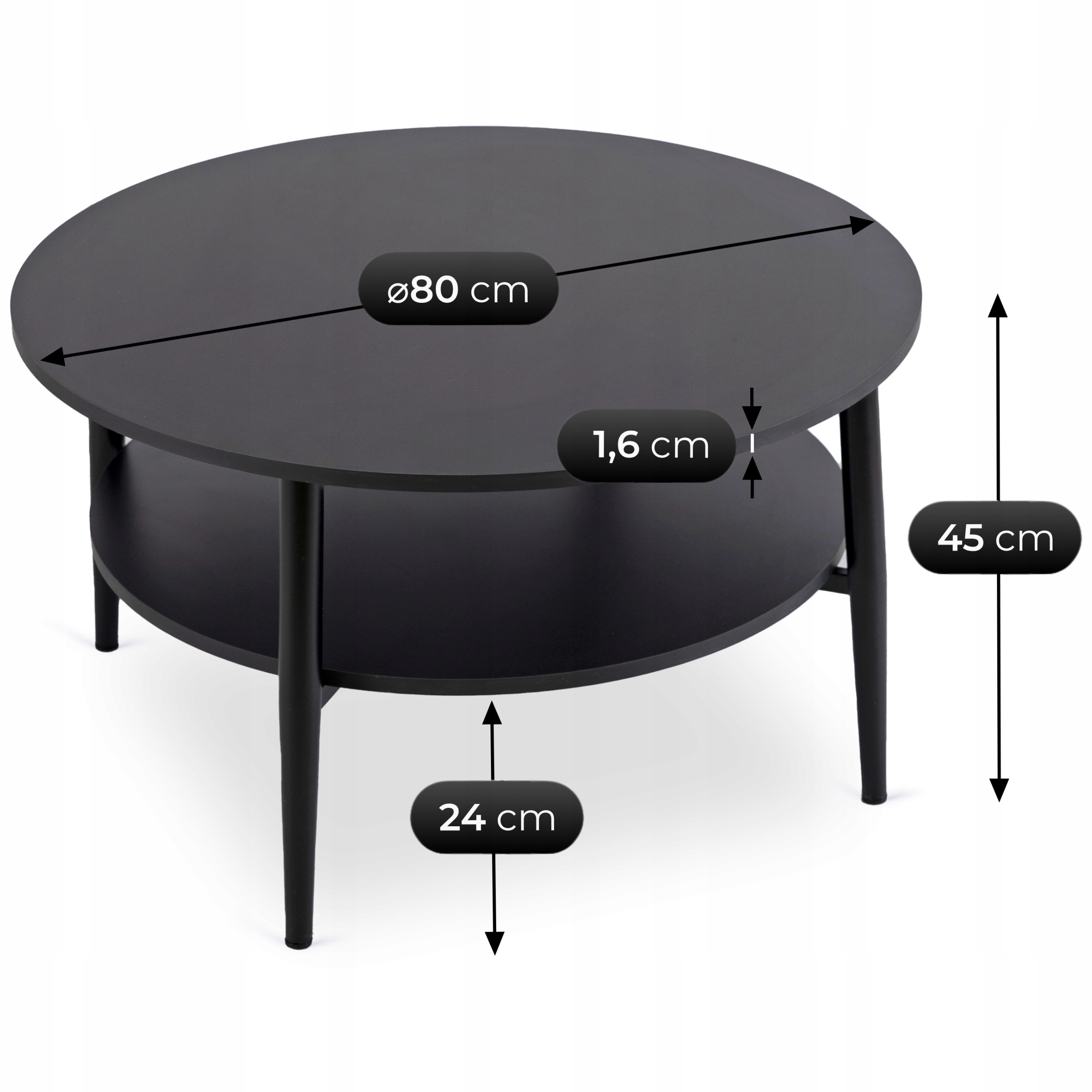 - Średnica blatu większego blatu: 80 cm