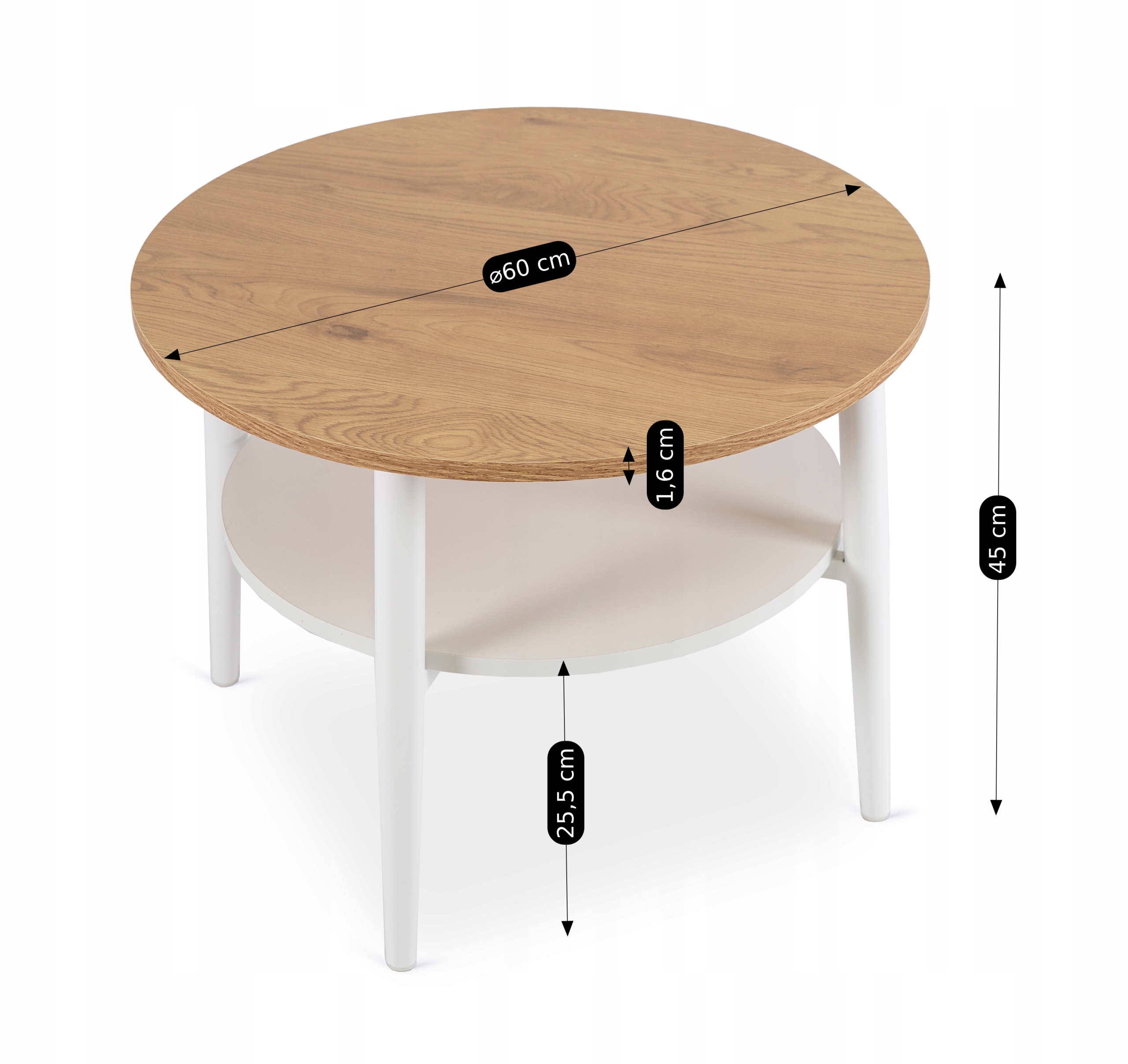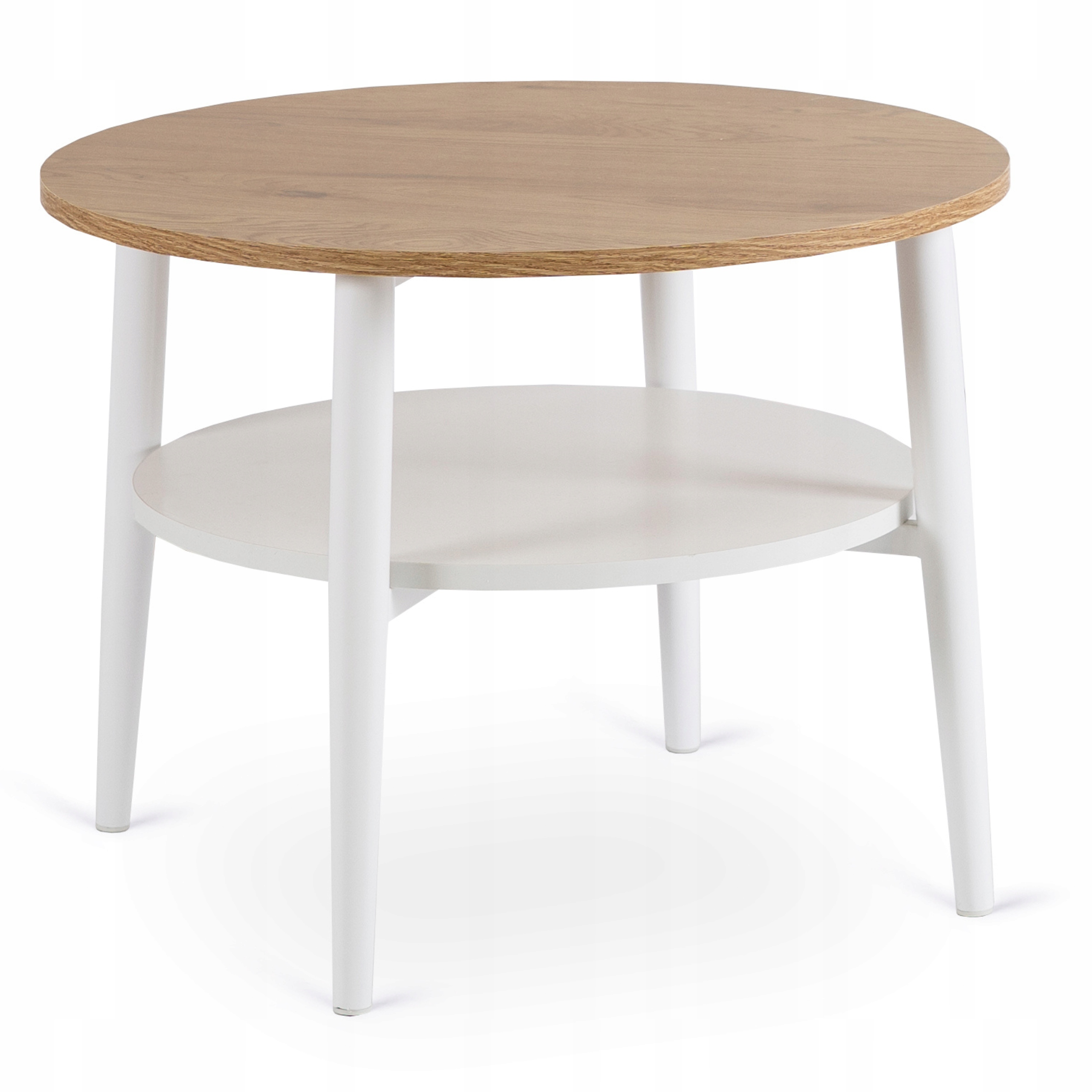 Stolik Kawowy Okrągły Skandynawski Ława Okrągła Loft Dąb Złoty Biały PAULO ⭐⭐⭐⭐⭐