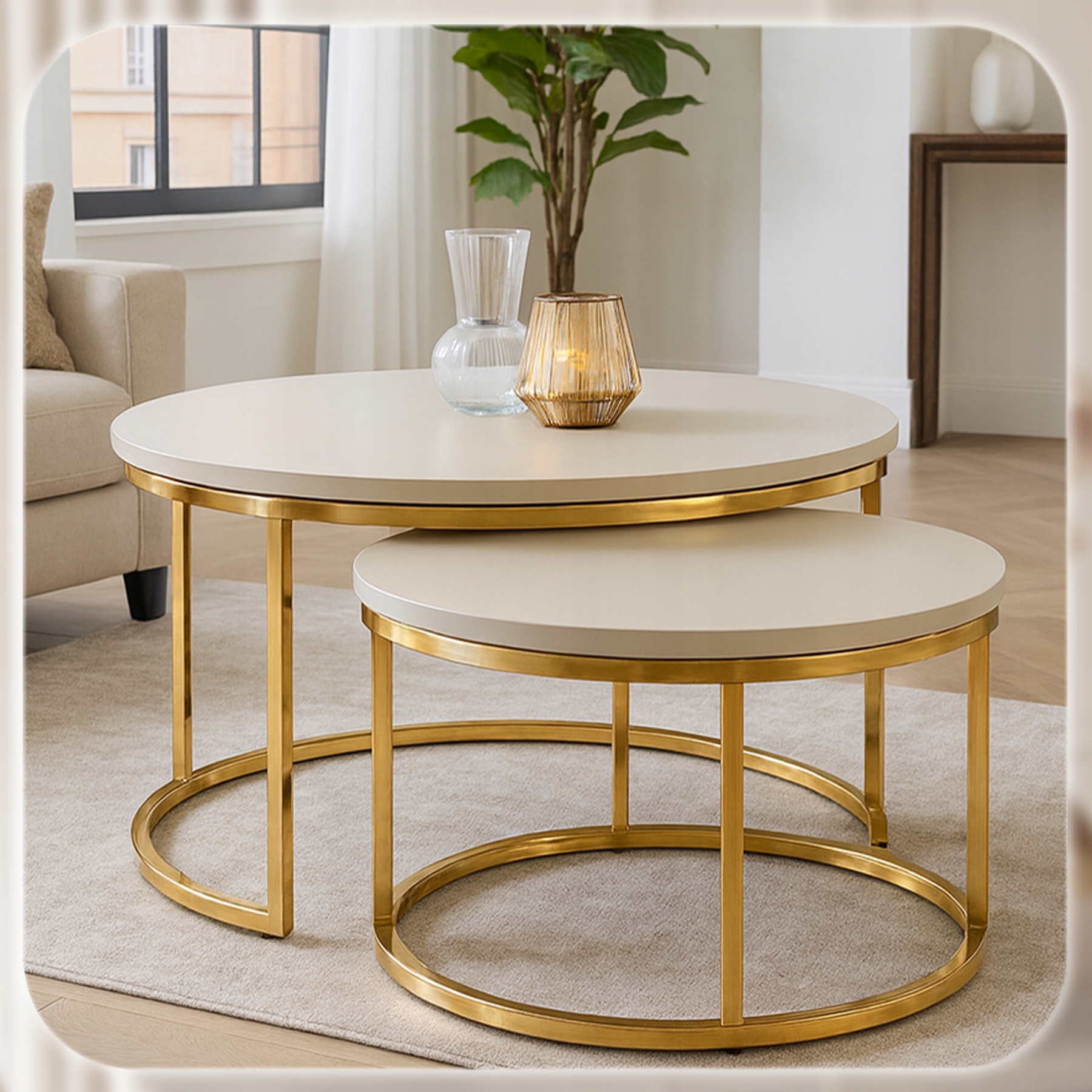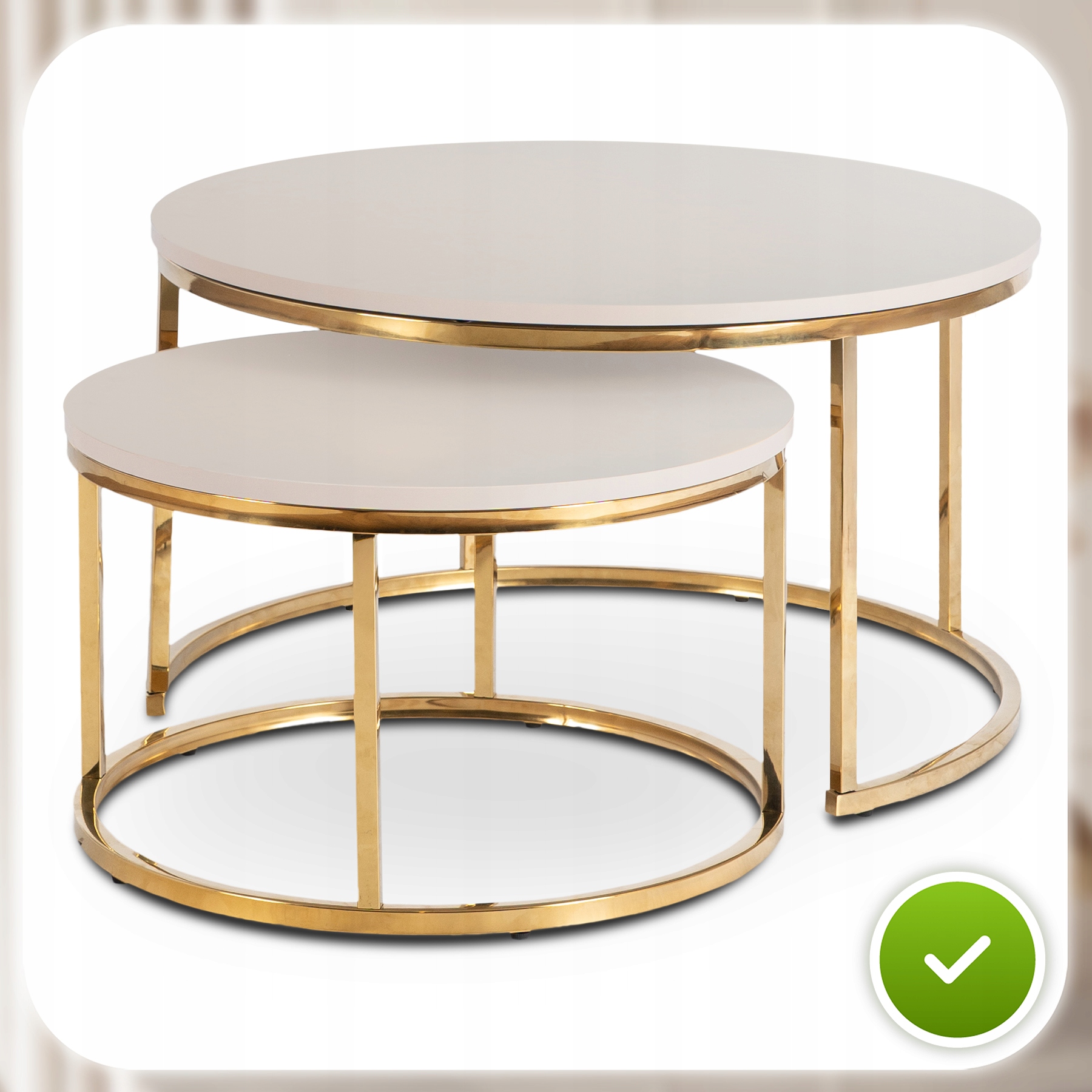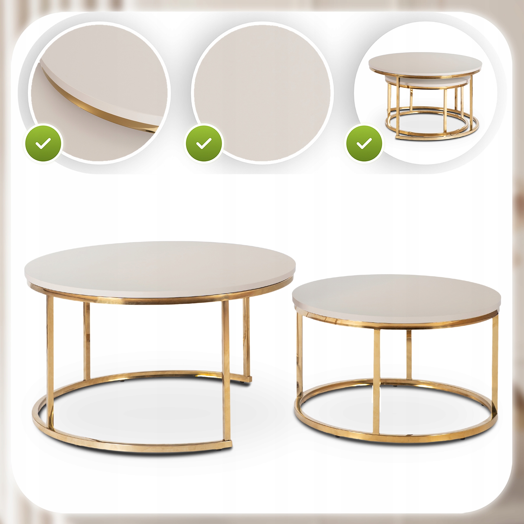 ✨ Stolik Kawowy Okrągły Zestaw 2w1 Ława Glamour Kaszmir Złoty APULIA MAX