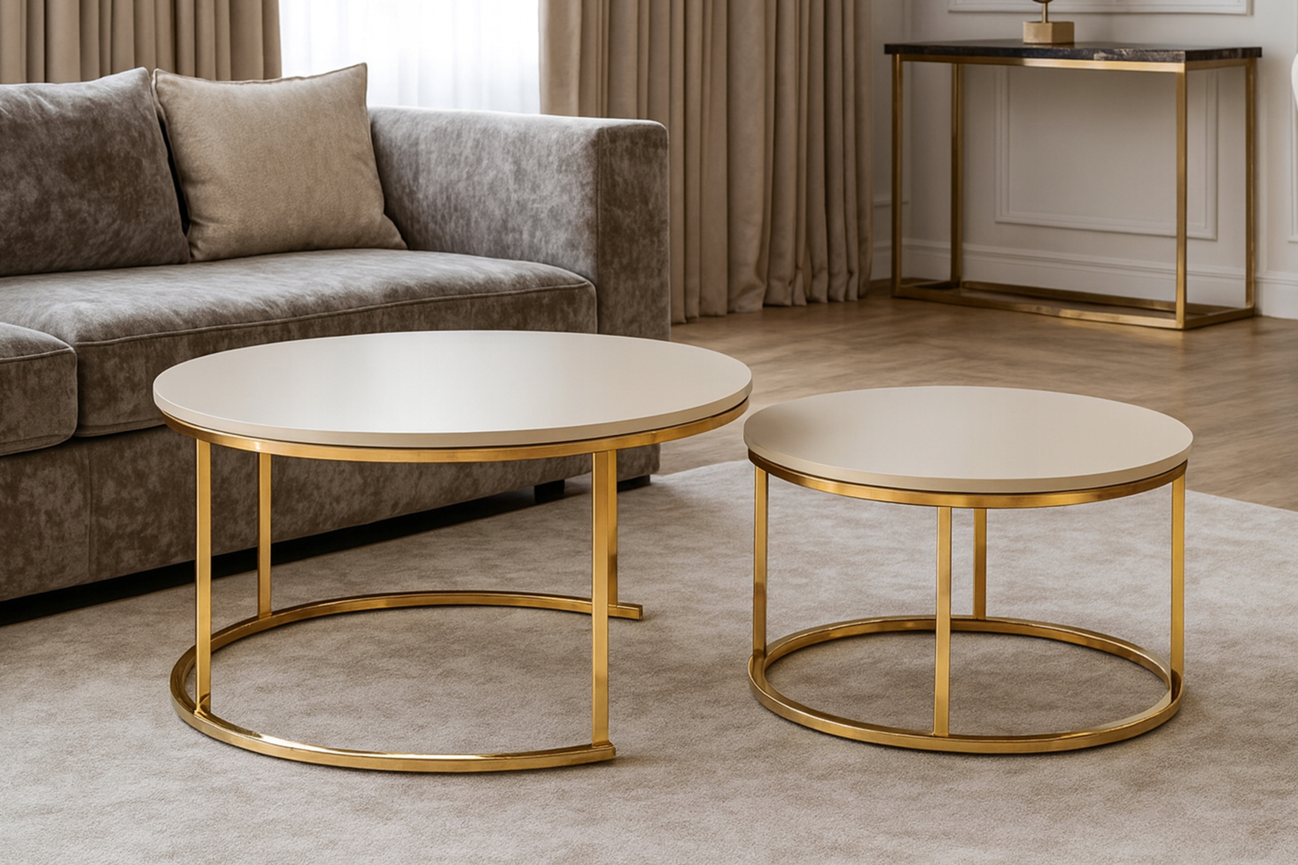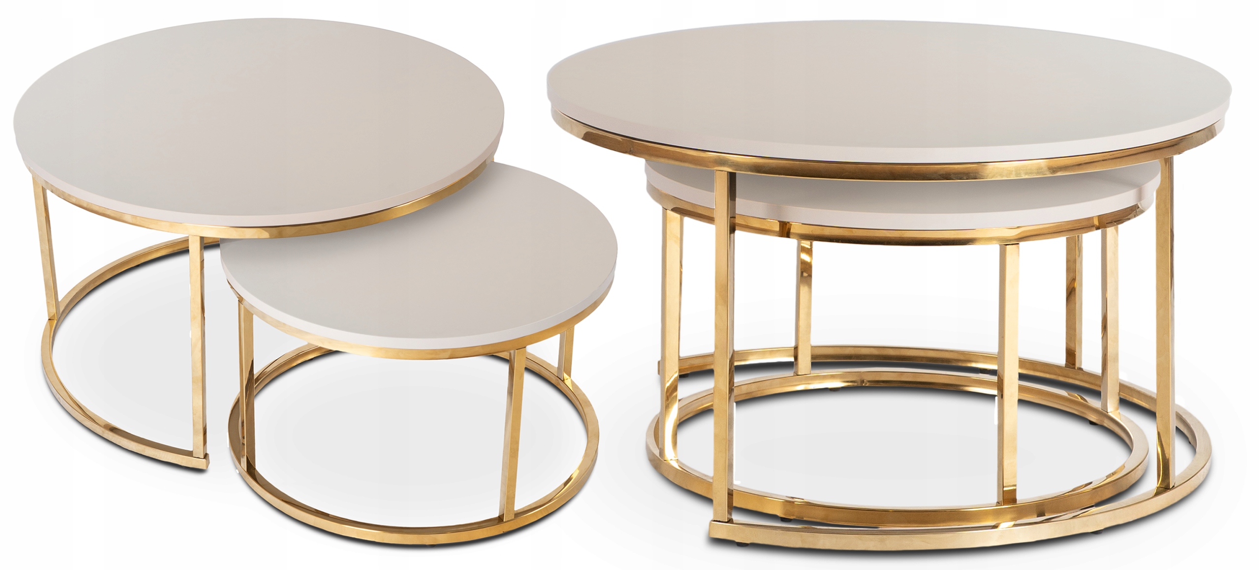 Oczywiście. Stoliki możesz rozdzielić, ustawić osobno lub zestawić razem, tworząc elegancką, wielopoziomową kompozycję dopasowaną do Twojego wnętrza.