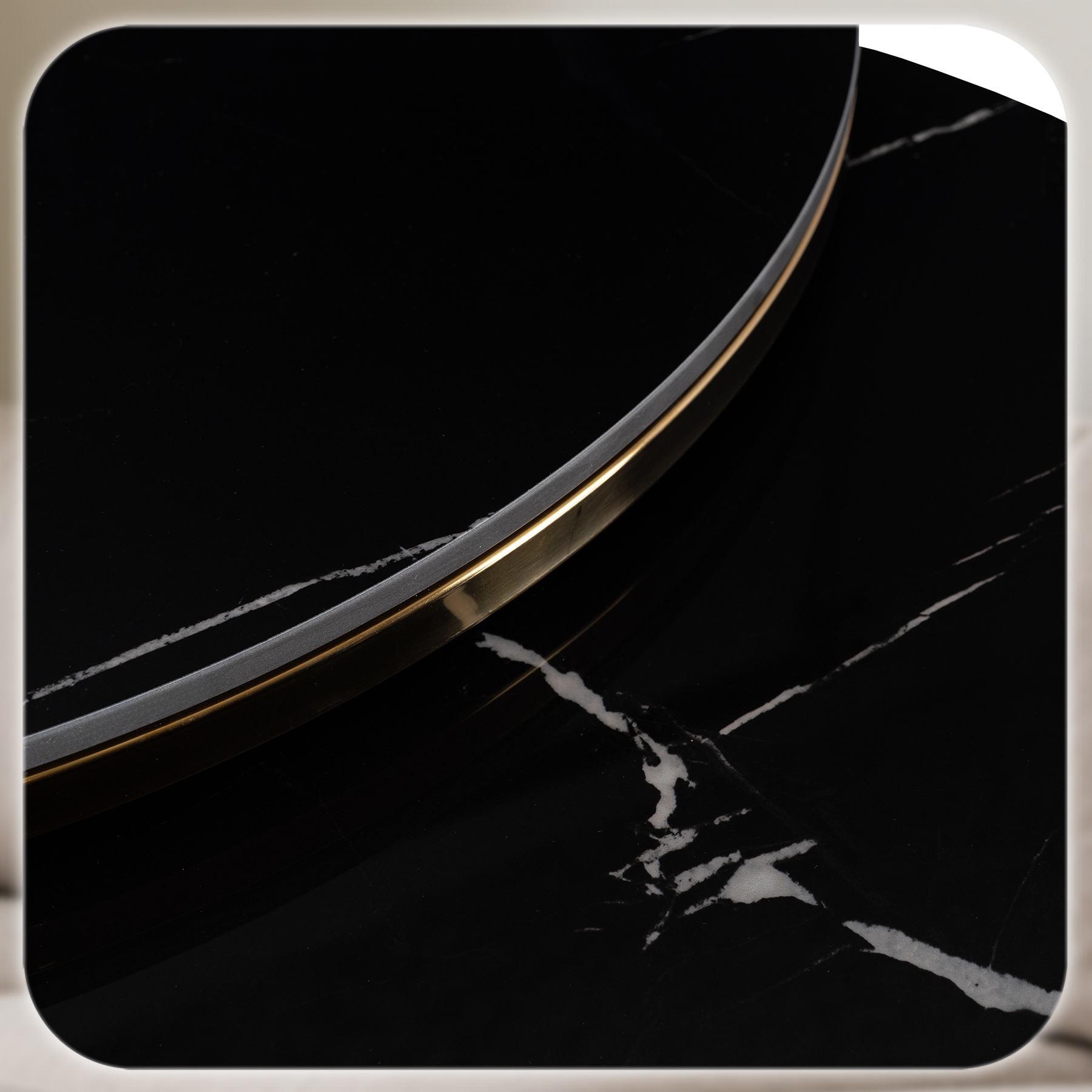 ✨ Stolik Kawowy Okrągły Zestaw 2w1 Ława Glamour Marmur Czarny Złoty MILANO