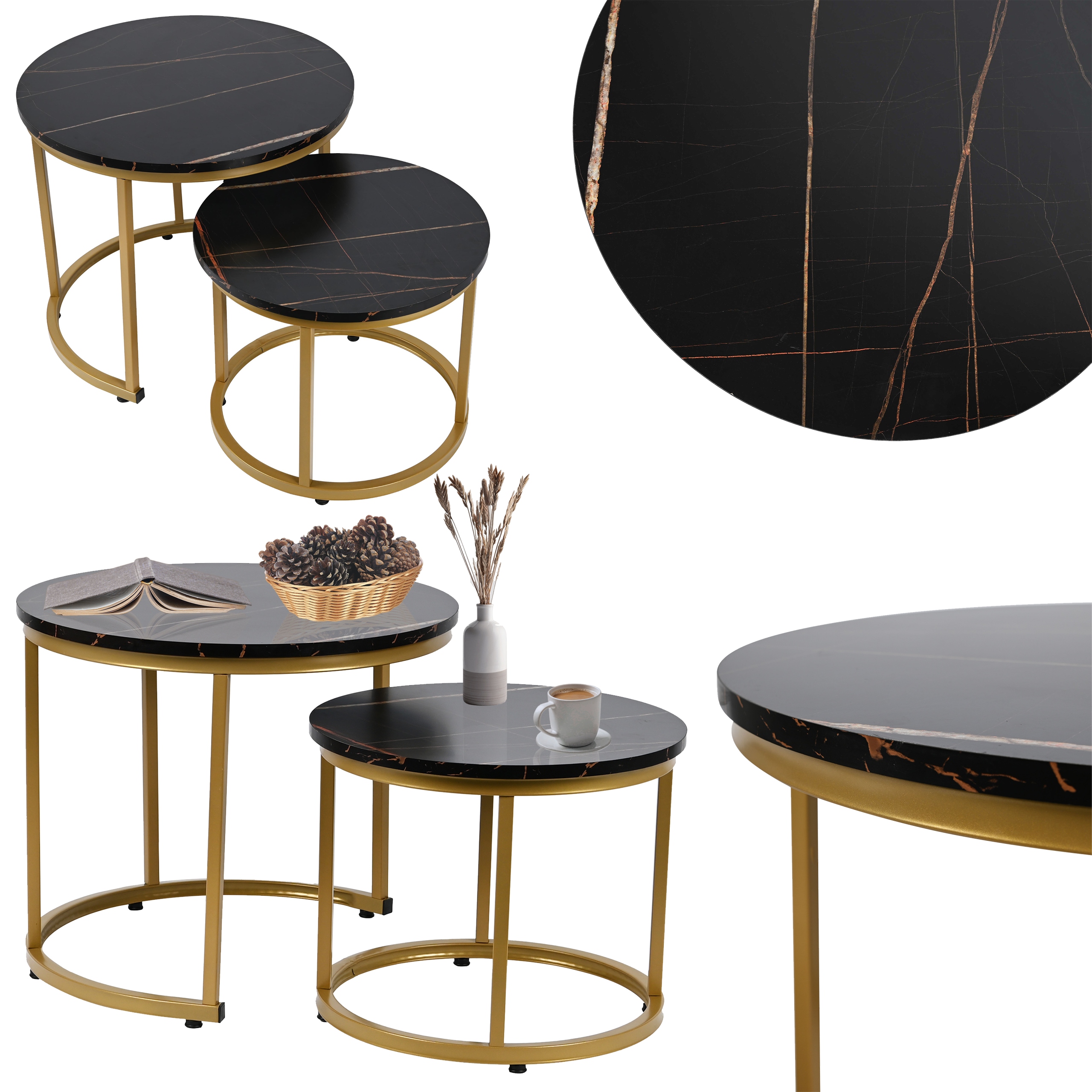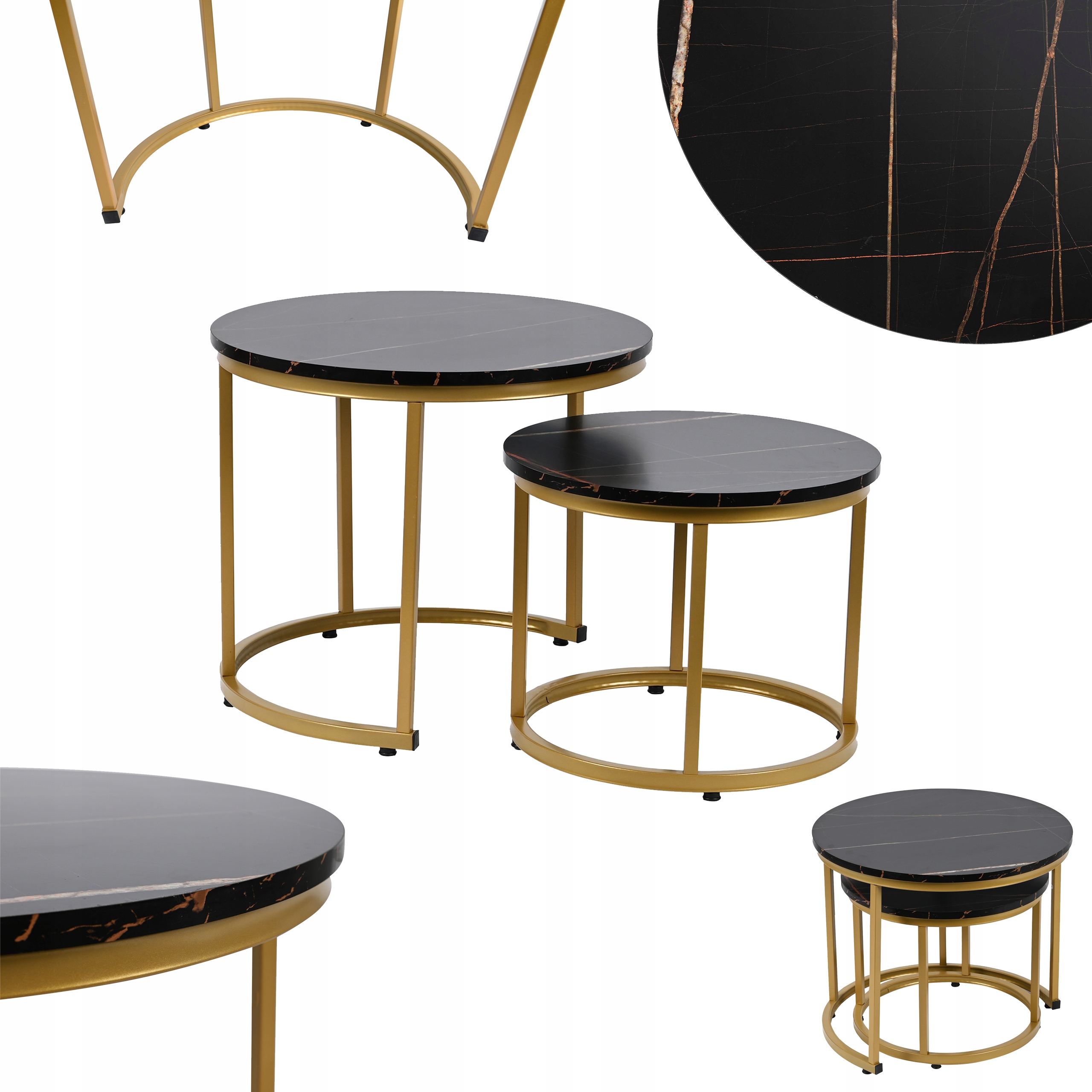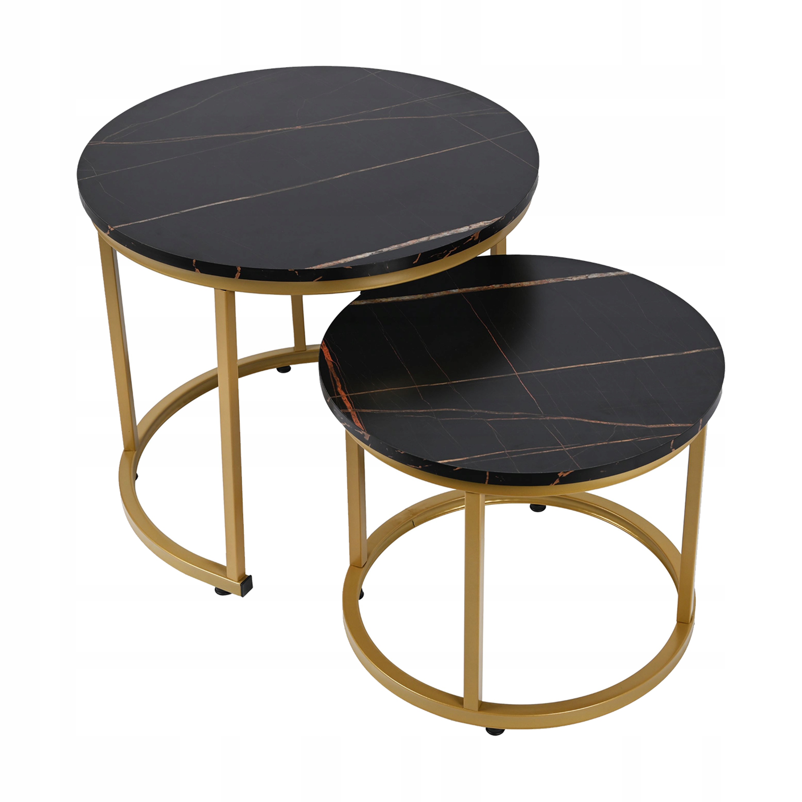 Okrągłe stoliki kawowe, kolor czarny marmur 53 x 45 i 43 x 35 Glamour do SALONU