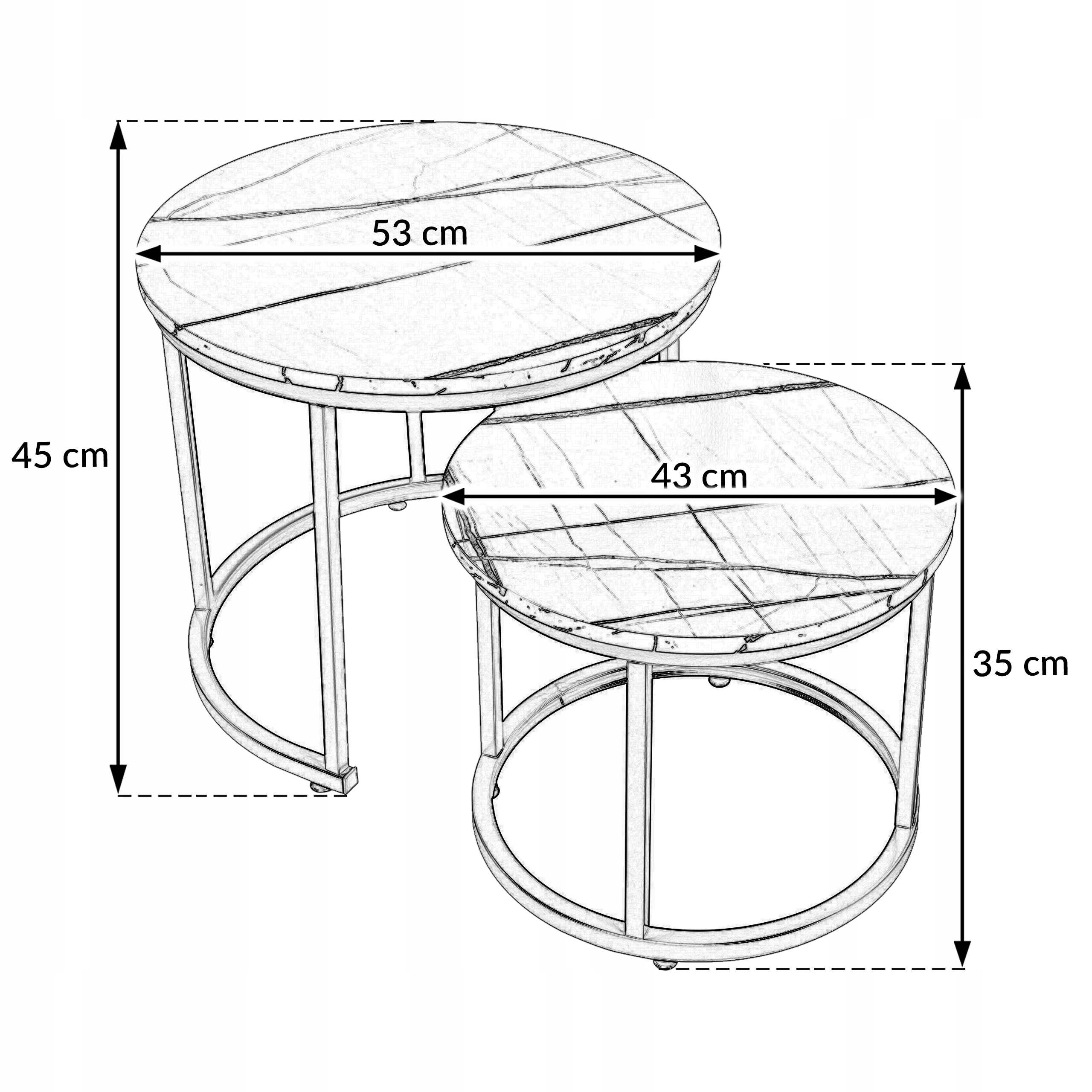 SK110MCZ Stoliki kawowe 2szt 53x45/43x35cm MARMUR CZARNY