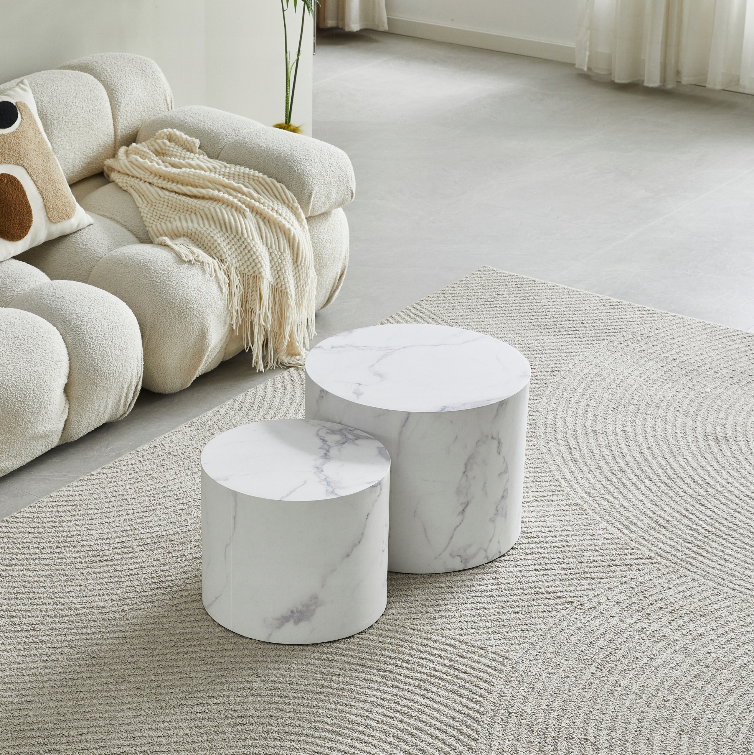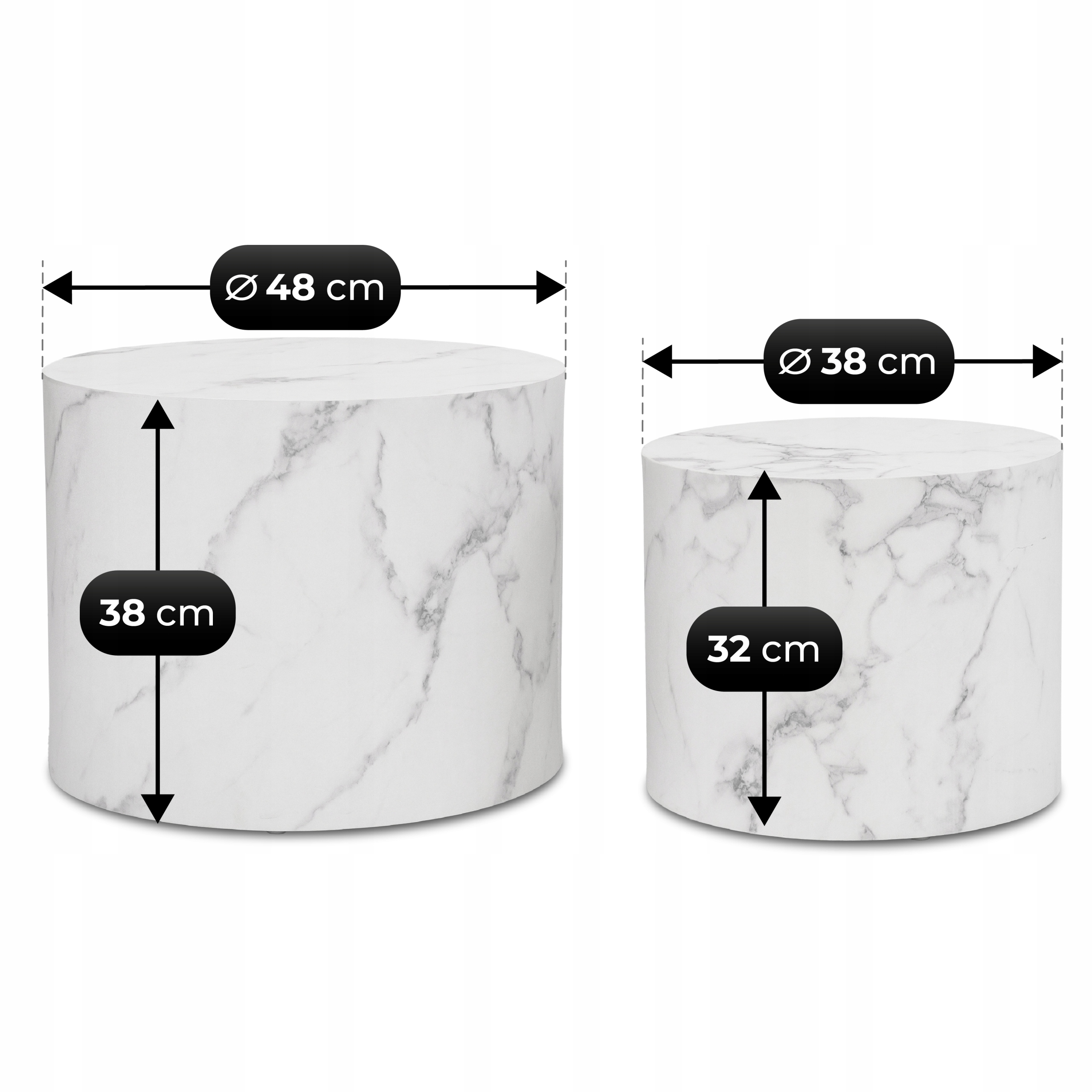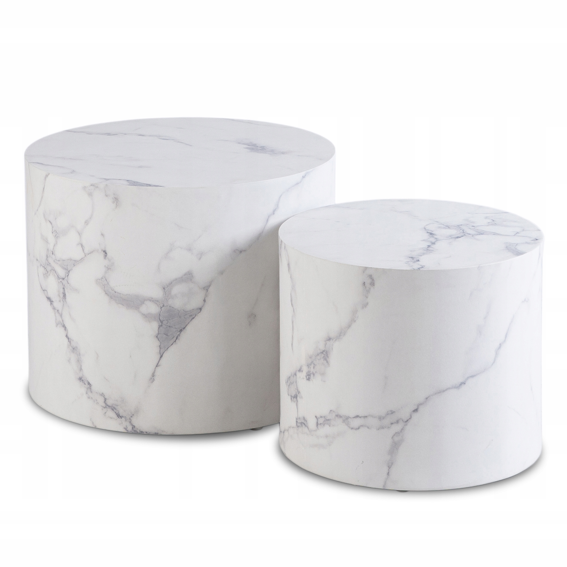 Stoliki Kawowe Okrągłe Loft Ława Salon Zestaw Ław 2w1 Biały Marmur LEILA ⭐⭐⭐⭐⭐