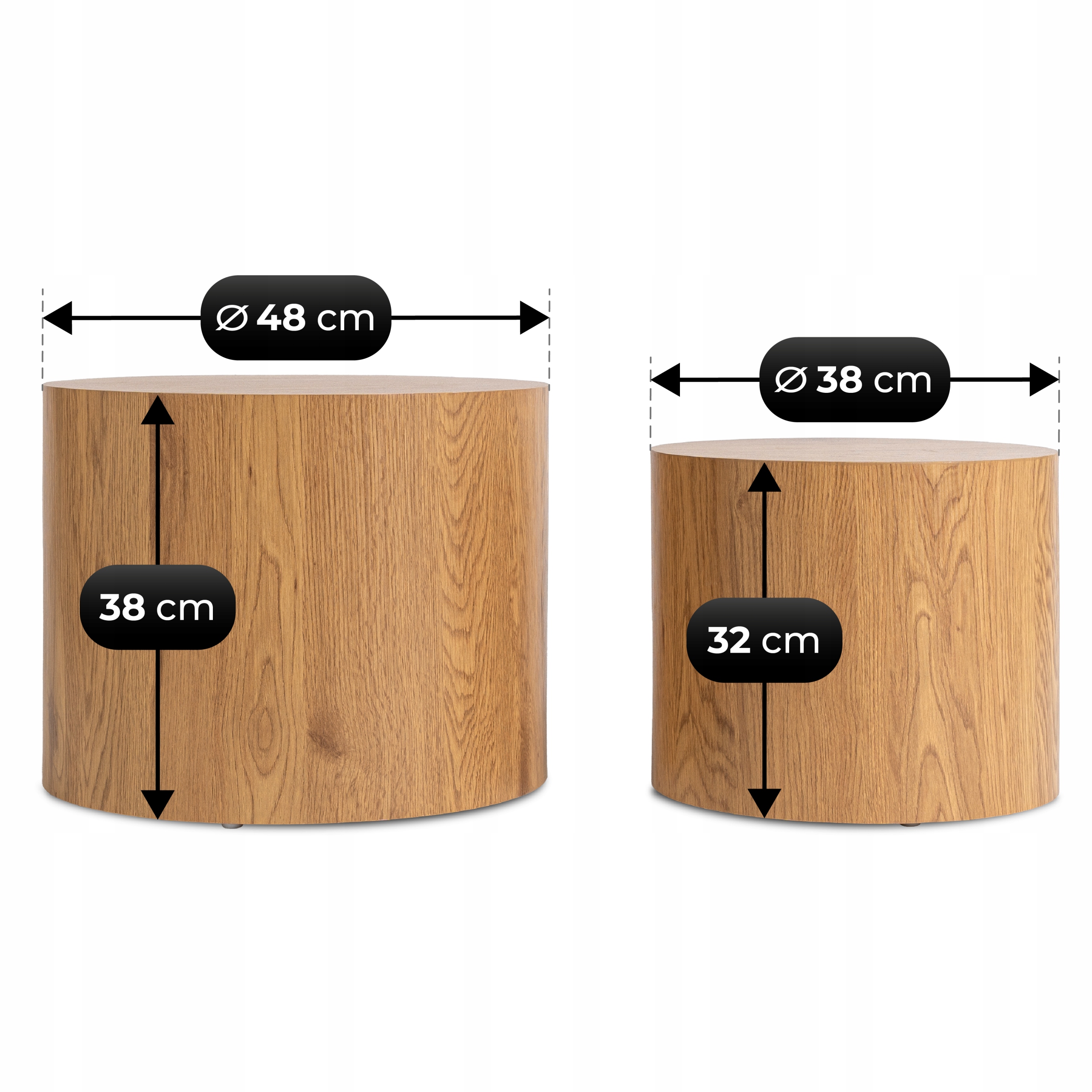 - Wysokość mniejszego stolika: 32 cm