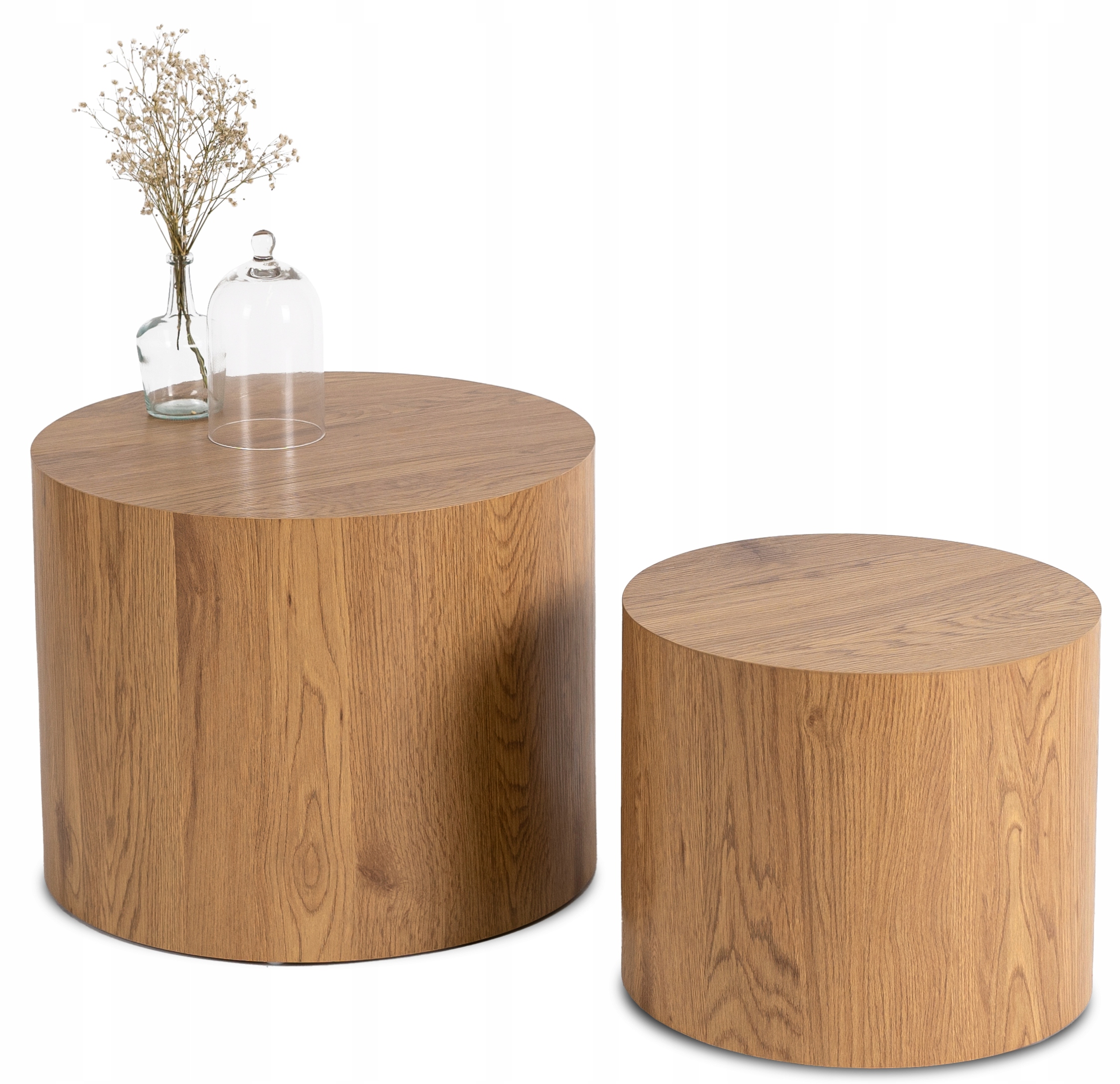Stoliki Kawowe Okrągłe Loft Ława Salon Zestaw Ław Dąb Złoty 2w1 LEILA ⭐⭐⭐⭐⭐