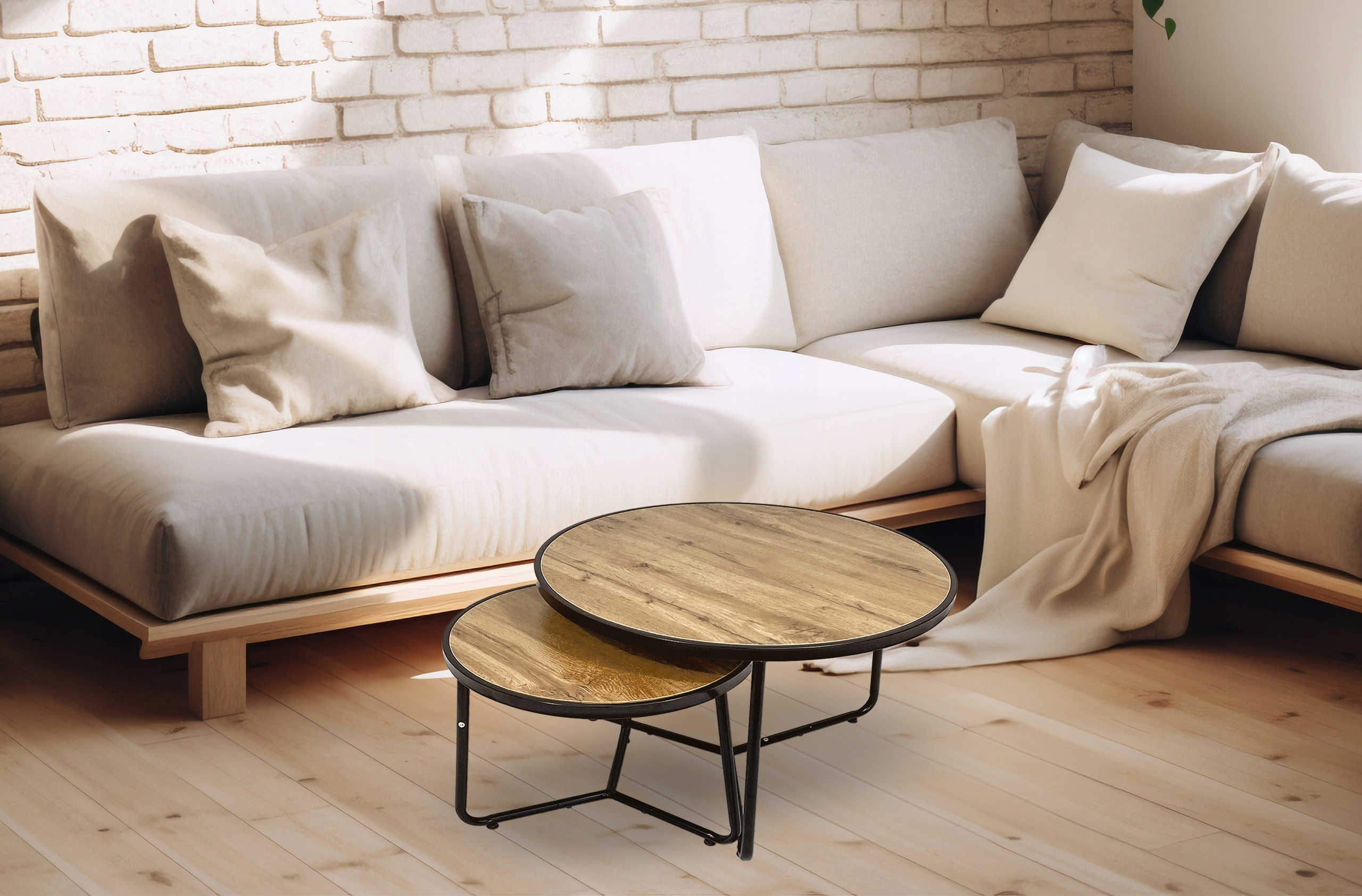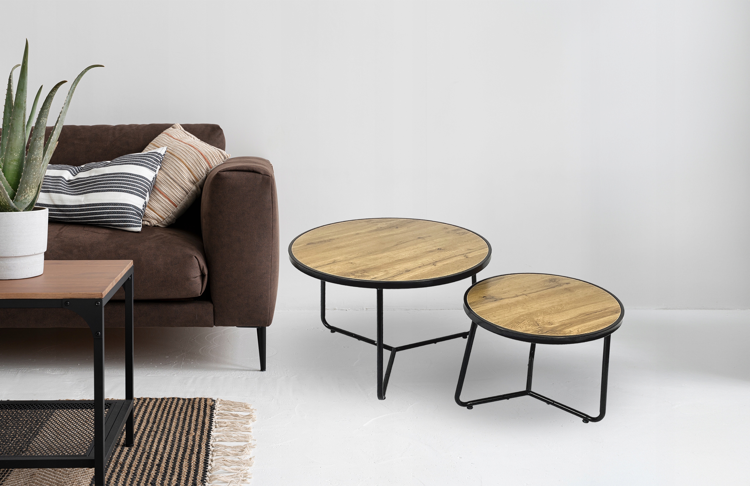 - Praktyczne dwa stoliki ze stalową ramą do salonu, pokoju czy sypialni.