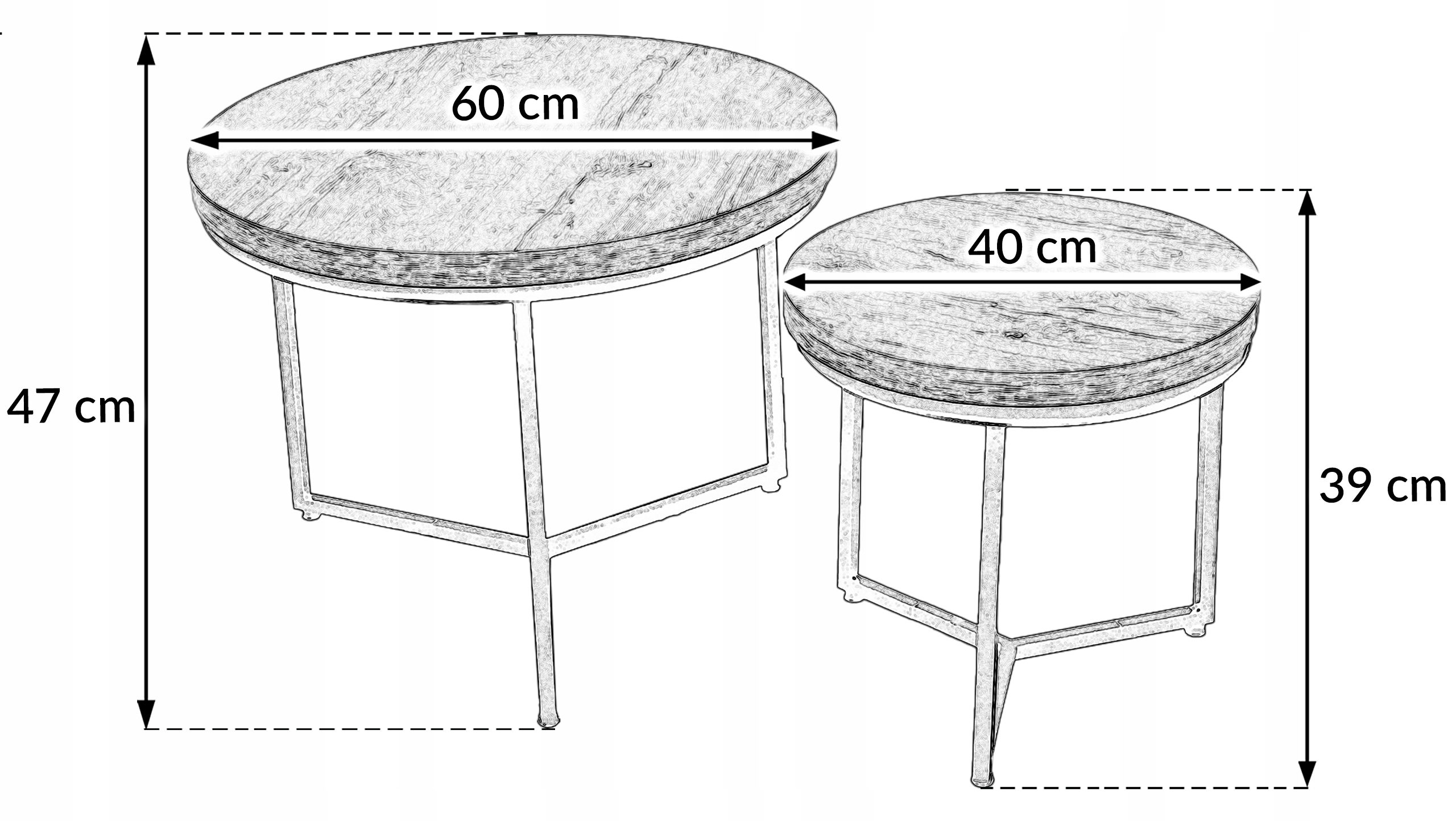 - Rozmiar większego stolika: fi 60x47cm.
