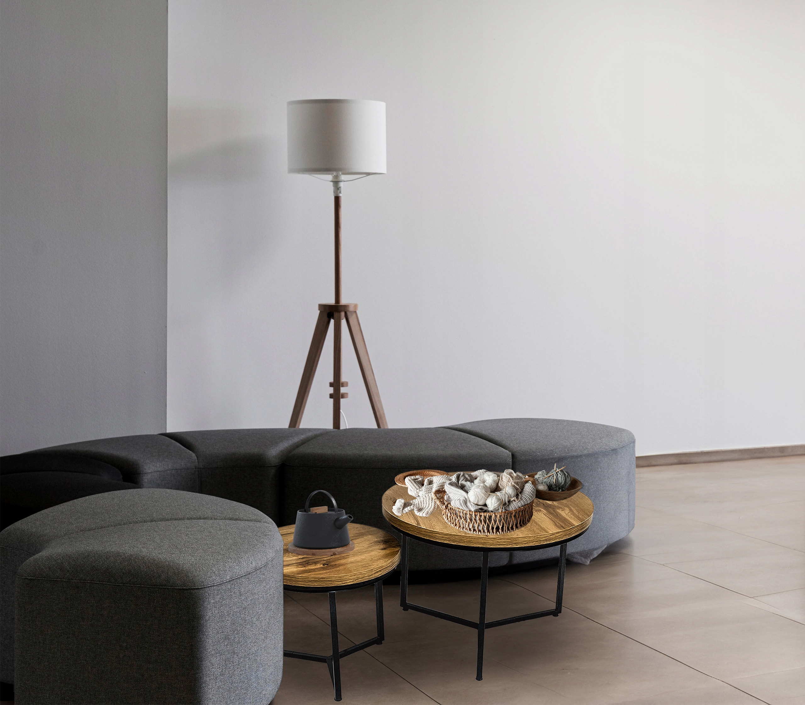 - Praktyczne dwa stoliki ze stalową ramą do salonu, pokoju czy sypialni.
