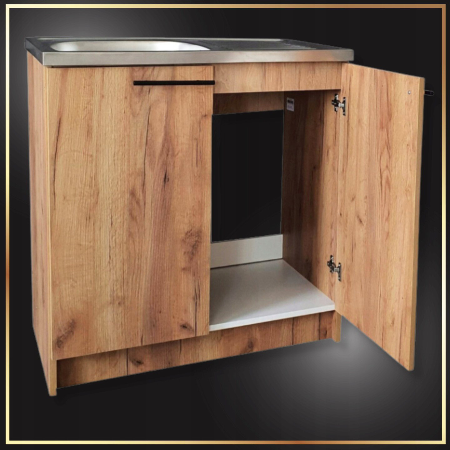 ⭐️ Kompletny Zestaw do Kuchni: Szafka 80 cm Dąb Złoty ze Zlewozmywakiem, Baterią i Syfonem