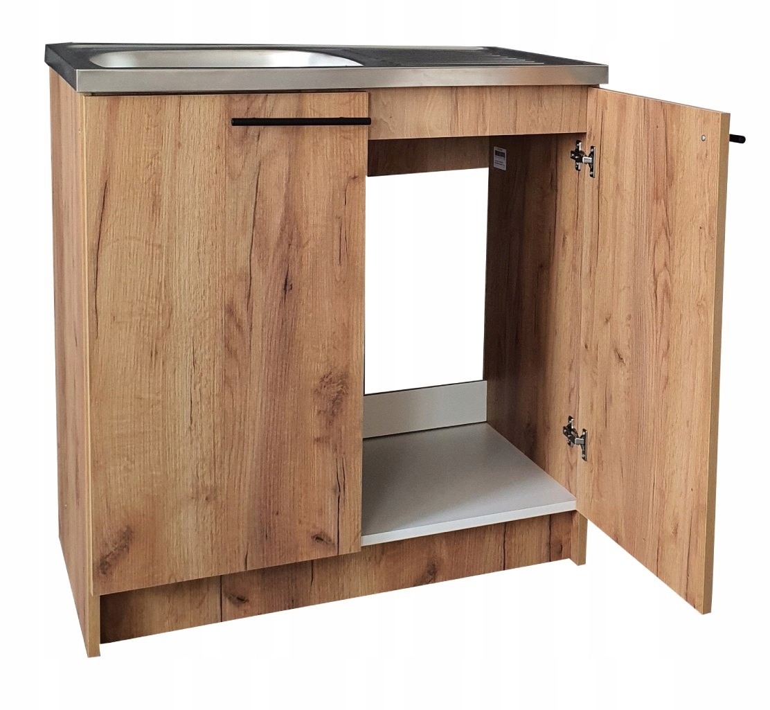 ⭐️ Kompletny Zestaw do Kuchni: Szafka 80 cm Dąb Złoty ze Zlewozmywakiem i Syfonem