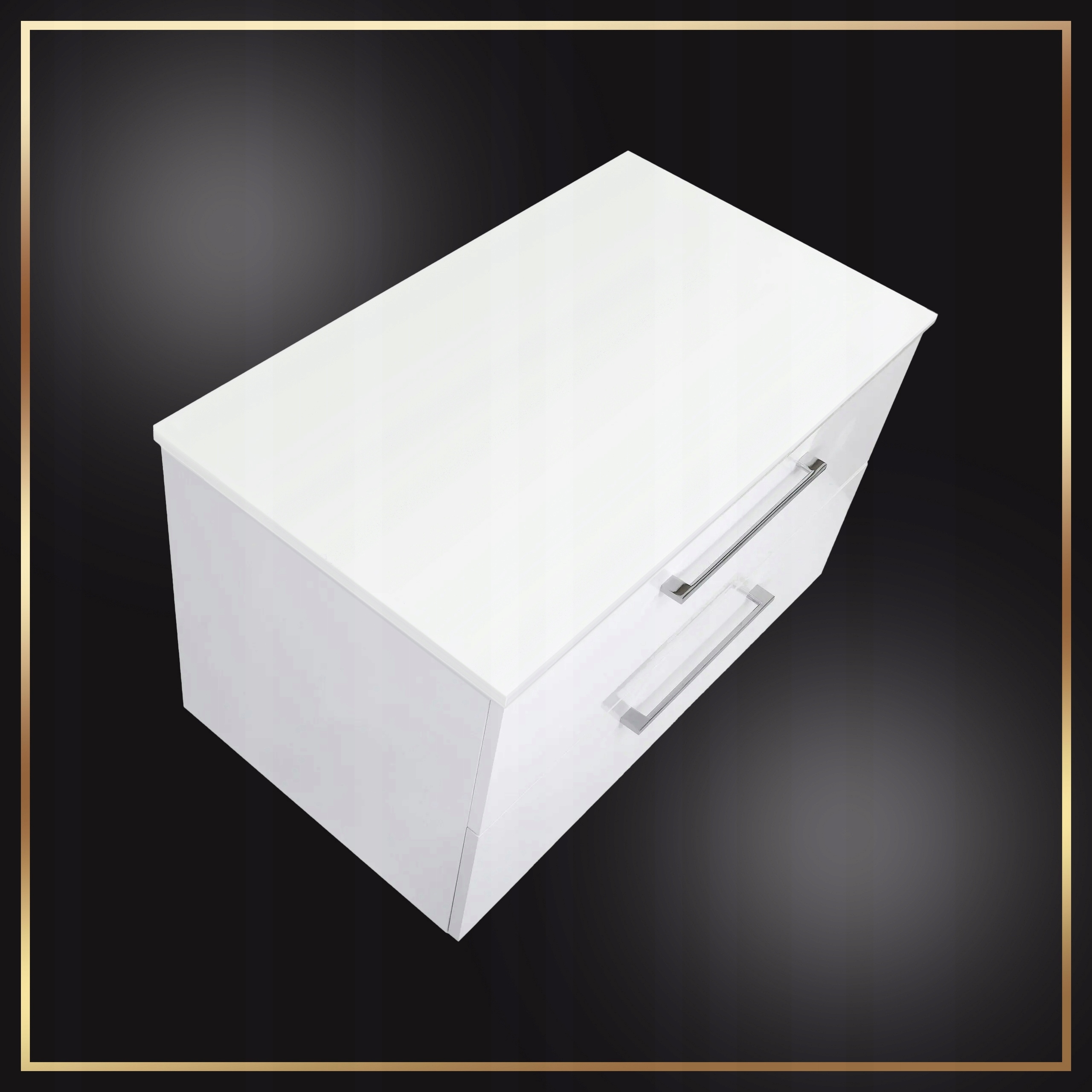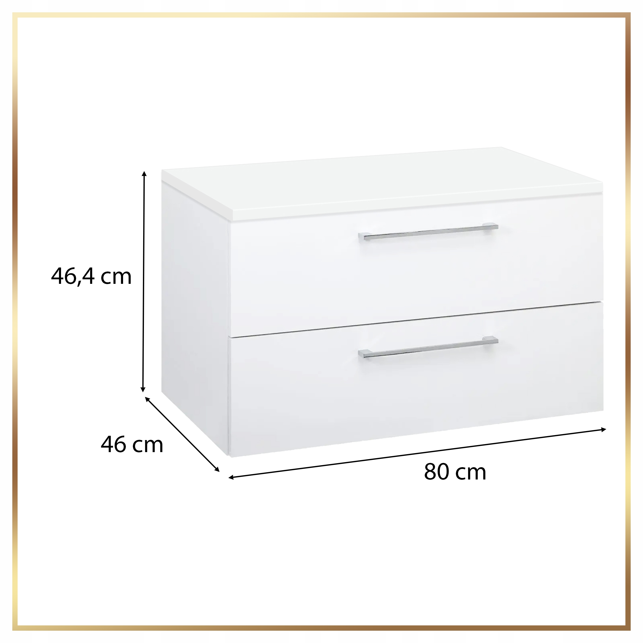 Szafka Łazienkowa 80 Vic Biała Wisząca 2 Szuflady Połysk + Blat + Mocowania