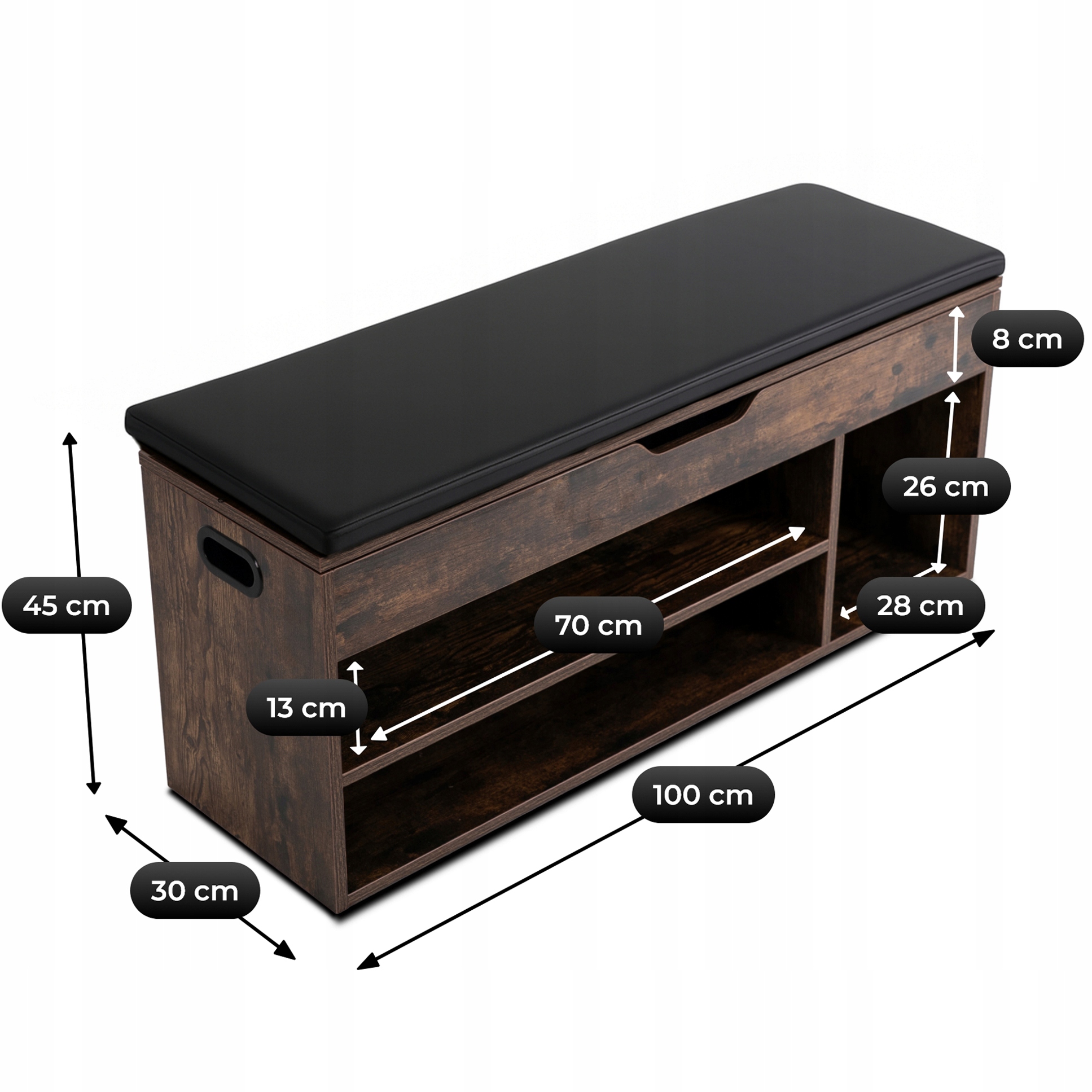 ✨ Szafka na Buty z Siedziskiem Ławka 100cm Do Przedpokoju Dąb Rustykalny ALEC