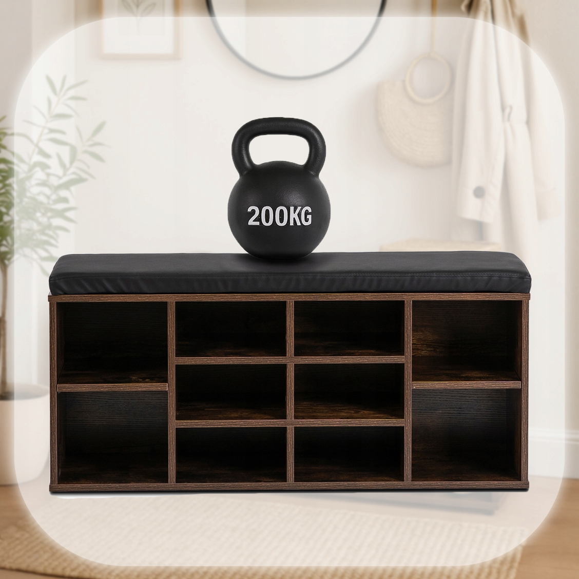 - Praktyczne półki na buty i akcesoria – 10 przegródek idealnie nadaje się do uporządkowanego przechowywania różnych rodzajów obuwia.