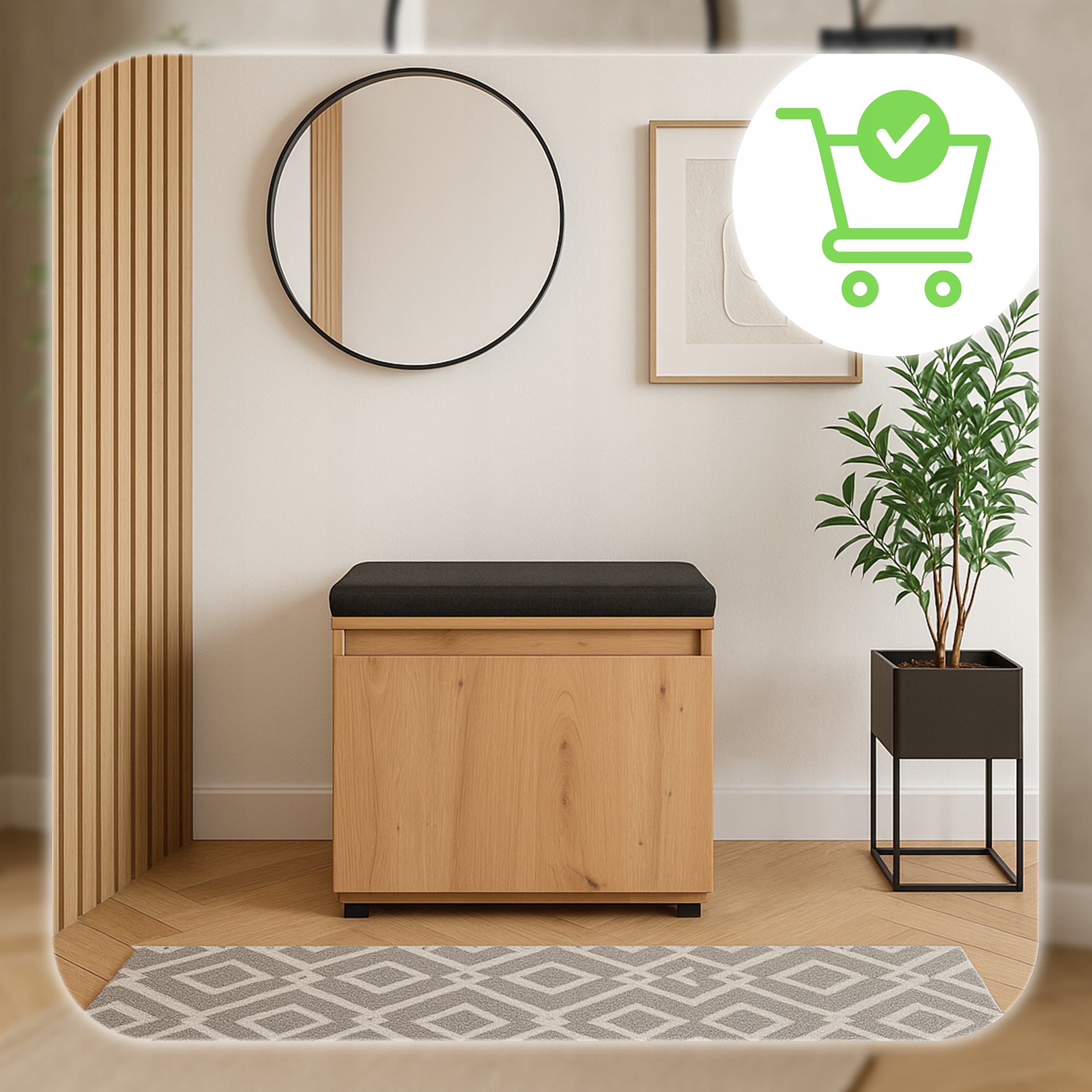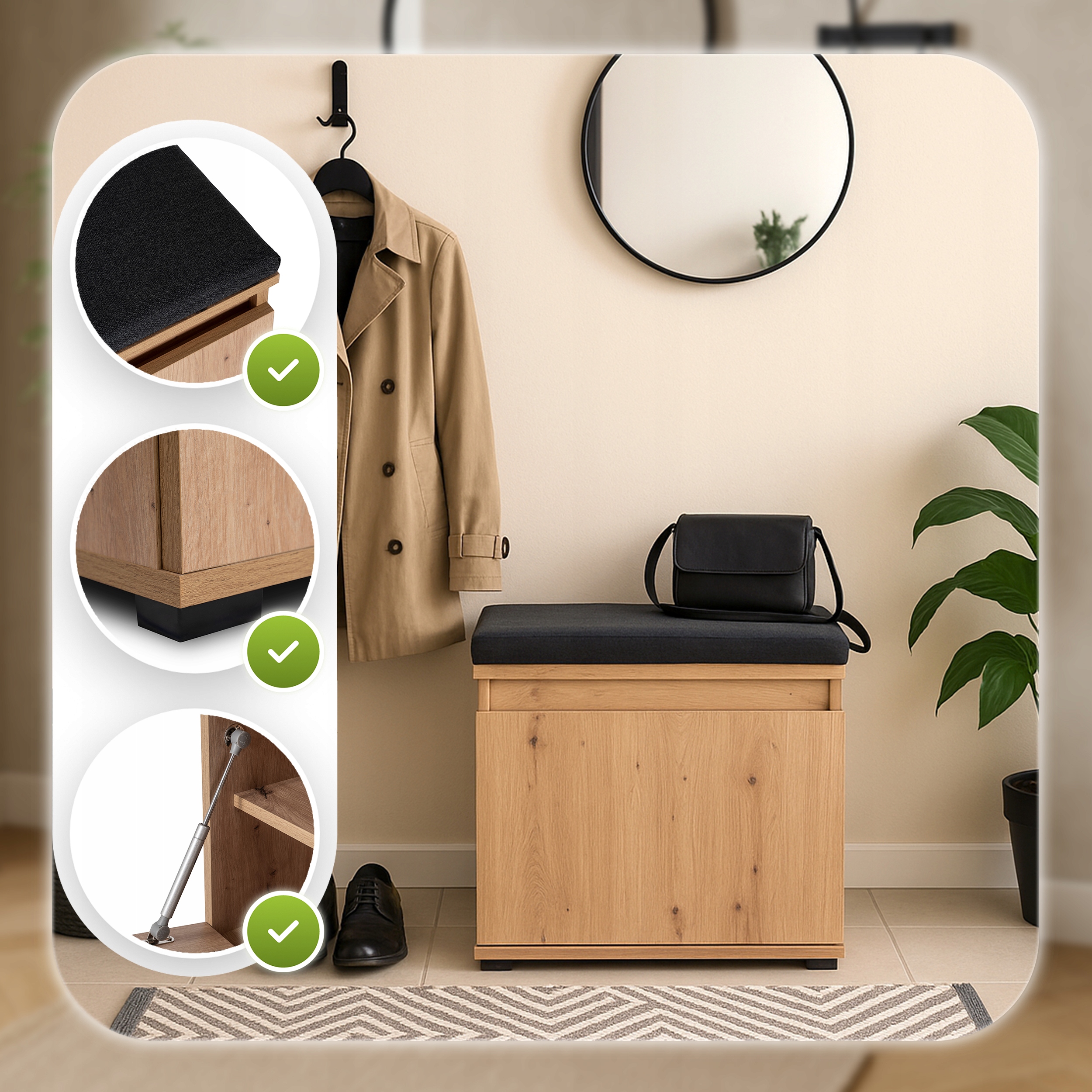✨ Szafka Na Buty Z Siedziskiem Ławka Do Przedpokoju Dąb Artisan MODENA 60 cm