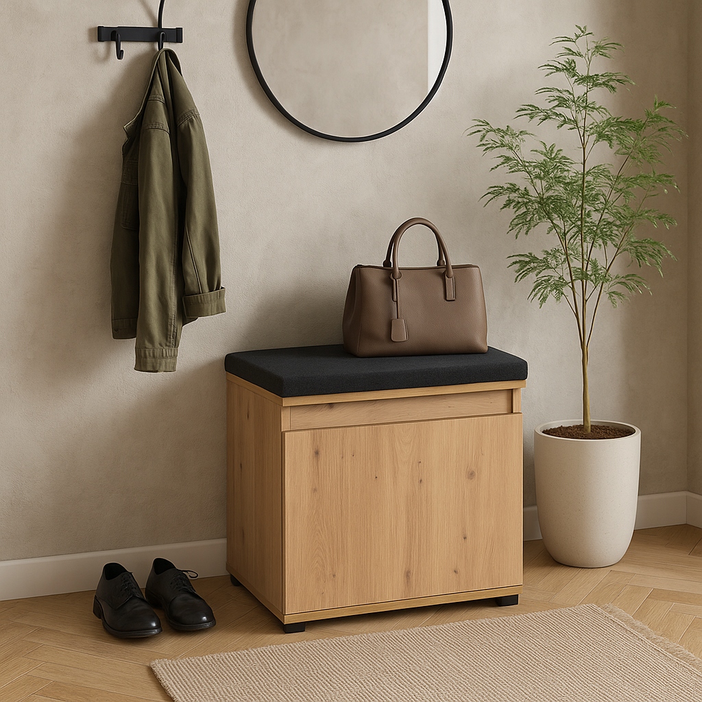Oczywiście – półki pomieszczą kilka par obuwia, a schowek pod tapicerowanym siedziskiem świetnie sprawdzi się na drobiazgi i akcesoria.
