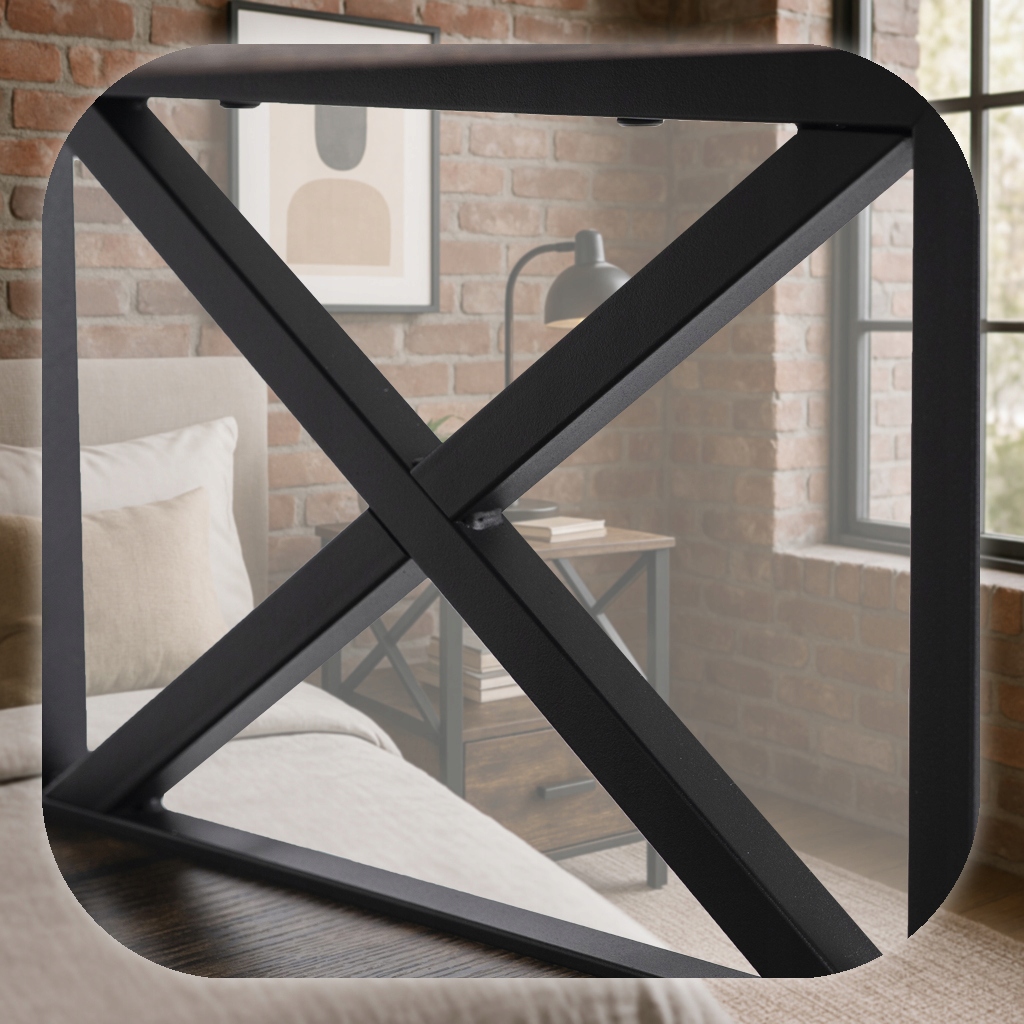 Metalowe nogi w połączeniu z krzyżowym wzmocnieniem boków gwarantują, że szafka pozostaje stabilna nawet przy większym obciążeniu – możesz bez obaw przechowywać na niej książki, lampki nocne czy inne akcesoria.