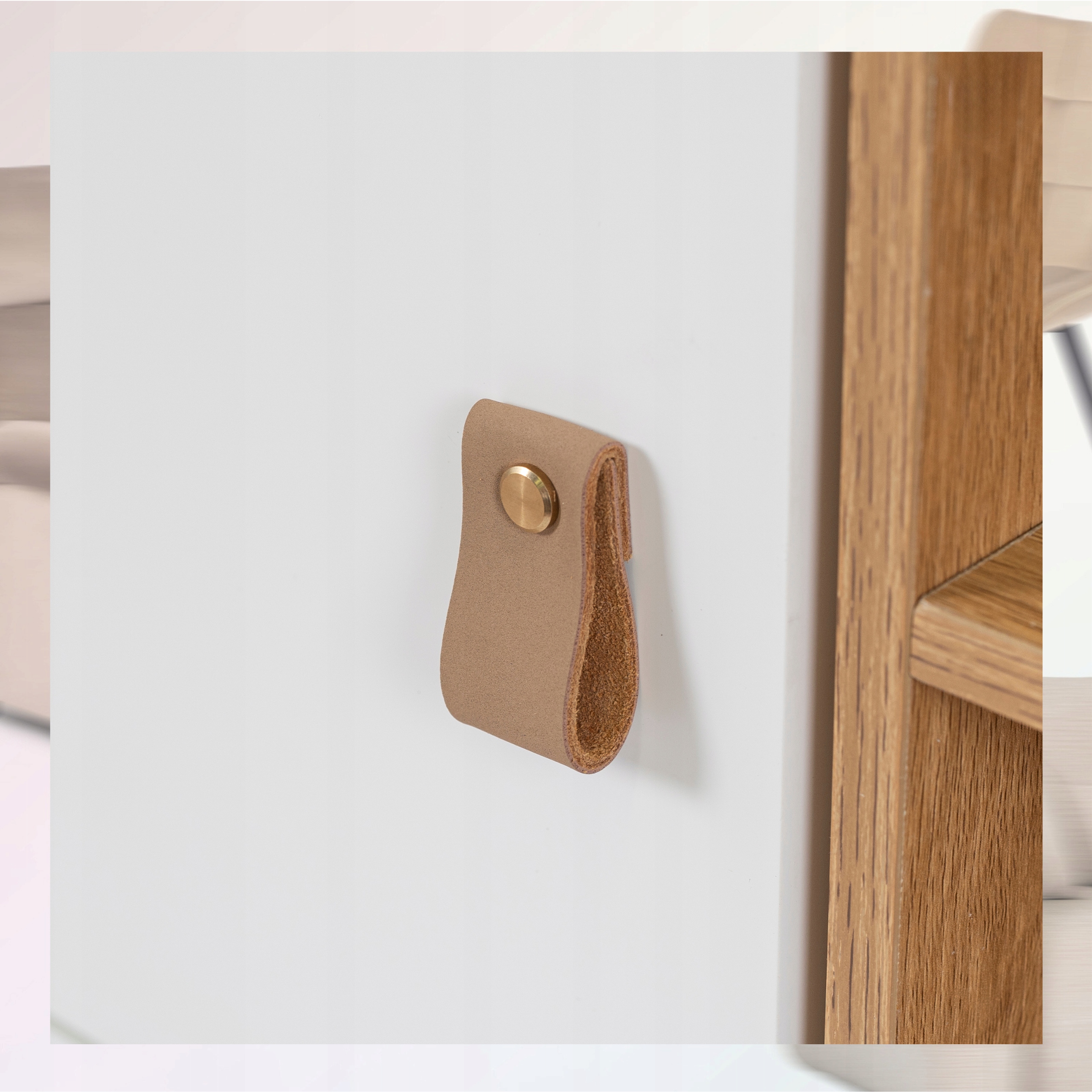 ⭐ Skórzane uchwyty wyglądają bardzo ładnie i podkreślają elegancki styl szafki.
