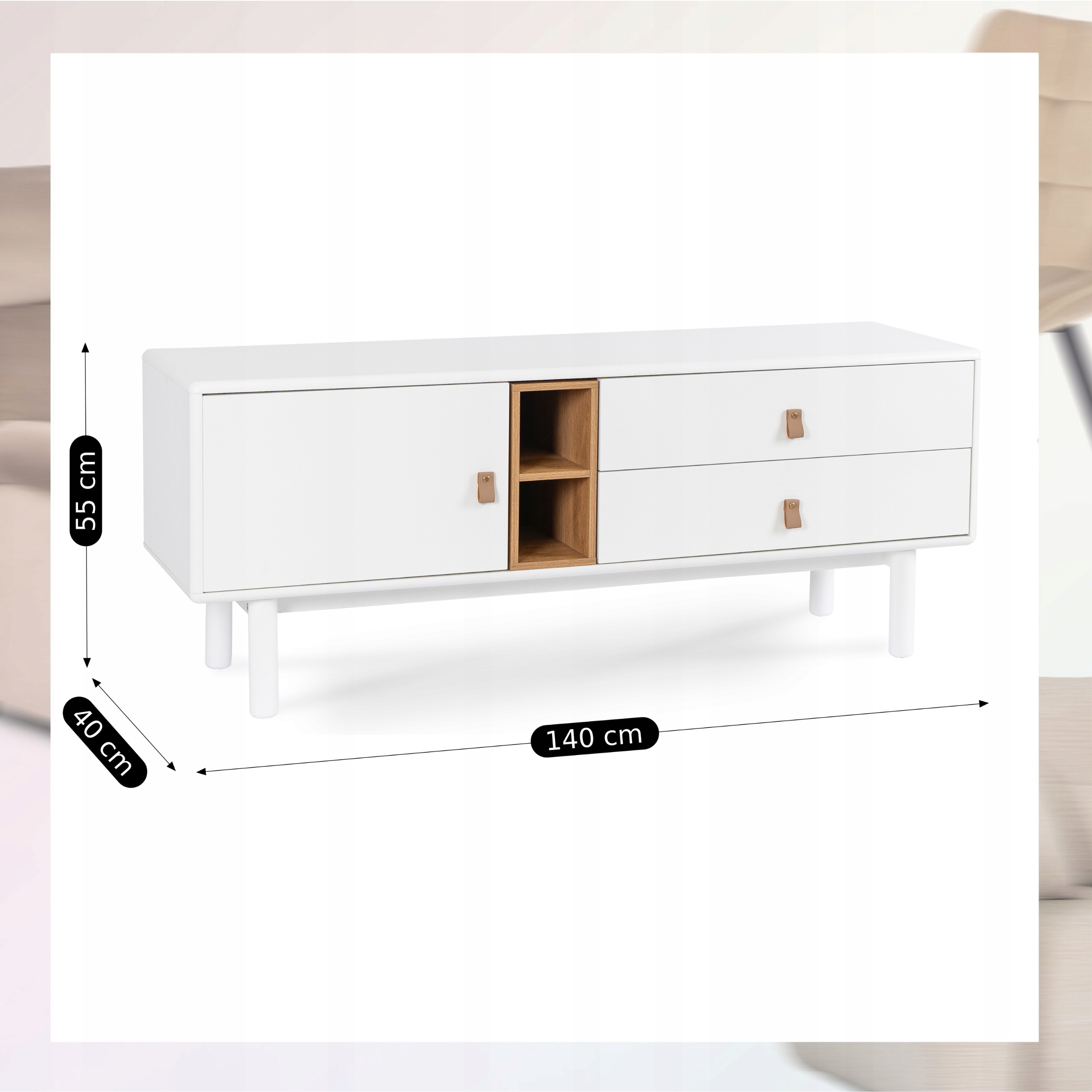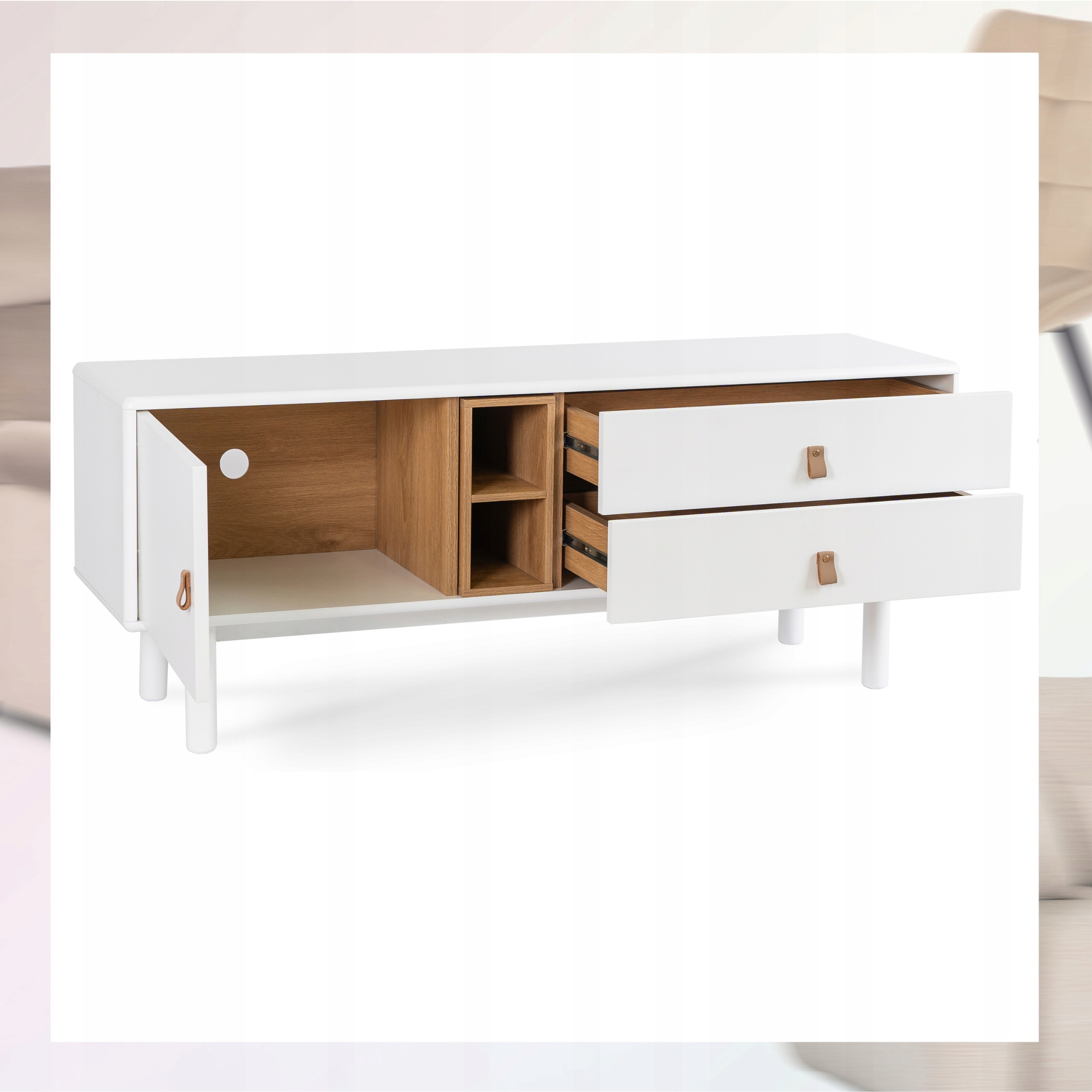 Szafka RTV 140 Biała z Szufladami ARTI Do Salonu Sypialni Styl Skandynawski ⭐⭐⭐⭐⭐