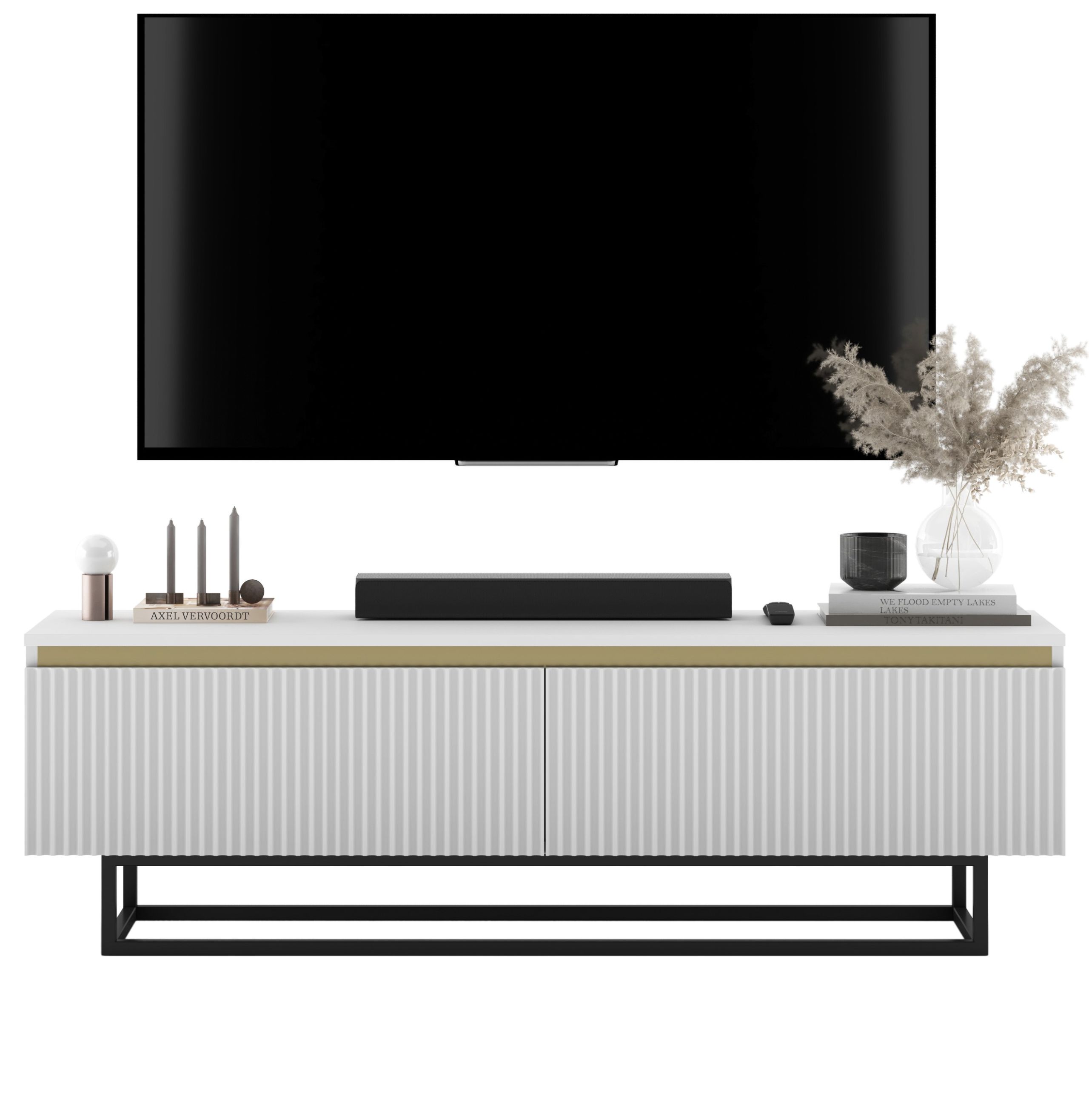 Szafka RTV SELENE to elegancki mebel w stylu Glamour, który harmonijnie łączy nowoczesny design z funkcjonalnością. Podzielona na dwie przestronne, zamykane komory, zapewnia użytkownikom wygodne i praktyczne miejsce do przechowywania. Dzięki uchylnym drzwiczkom z blokadą opadania oferuje łatwy dostęp do wnętrza. Szafka wyposażona jest w system "push to open", który eliminuje konieczność stosowania uchwytów, nadając jej estetyczny i minimalistyczny wygląd. Charakterystyczne ryflowane fronty oraz złote akcenty wyróżniają ją na tle innych szafek RTV, podkreślając nowoczesny i luksusowy charakter. SELENE to doskonały wybór dla osób, które cenią elegancję i nowoczesne rozwiązania w aranżacji wnętrz.