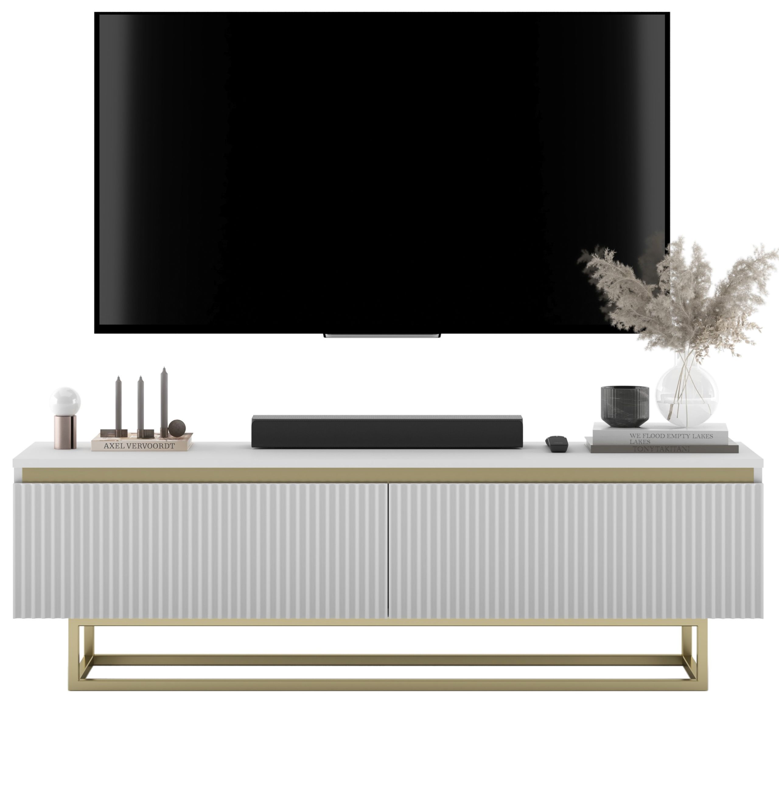 Szafka RTV SELENE to elegancki mebel w stylu Glamour, który harmonijnie łączy nowoczesny design z funkcjonalnością. Podzielona na dwie przestronne, zamykane komory, zapewnia użytkownikom wygodne i praktyczne miejsce do przechowywania. Dzięki uchylnym drzwiczkom z blokadą opadania oferuje łatwy dostęp do wnętrza. Szafka wyposażona jest w system "push to open", który eliminuje konieczność stosowania uchwytów, nadając jej estetyczny i minimalistyczny wygląd. Charakterystyczne ryflowane fronty oraz złote akcenty wyróżniają ją na tle innych szafek RTV, podkreślając nowoczesny i luksusowy charakter. SELENE to doskonały wybór dla osób, które cenią elegancję i nowoczesne rozwiązania w aranżacji wnętrz.