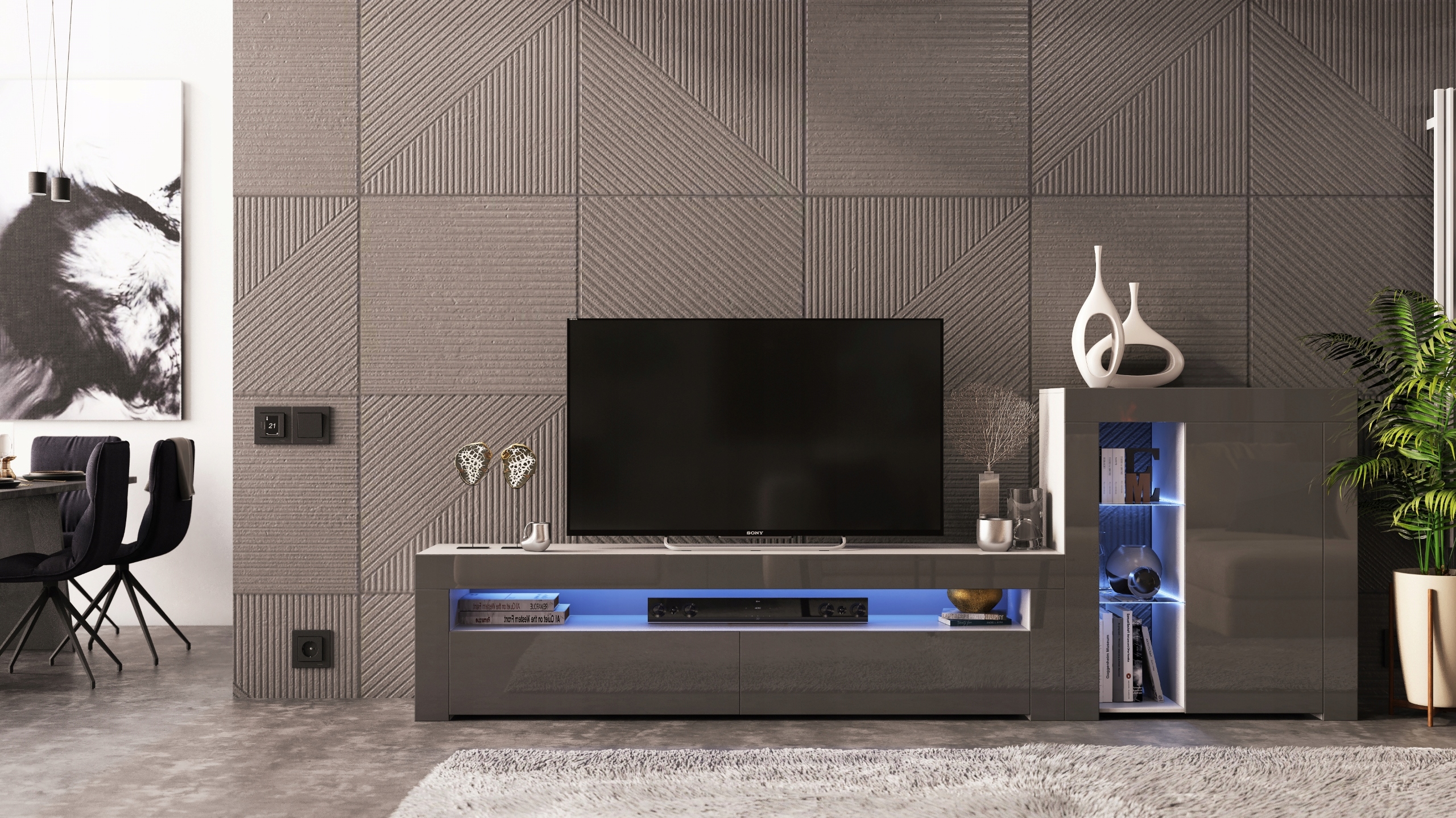 Szafka RTV grafit połysk nowoczesna komoda 155 cm