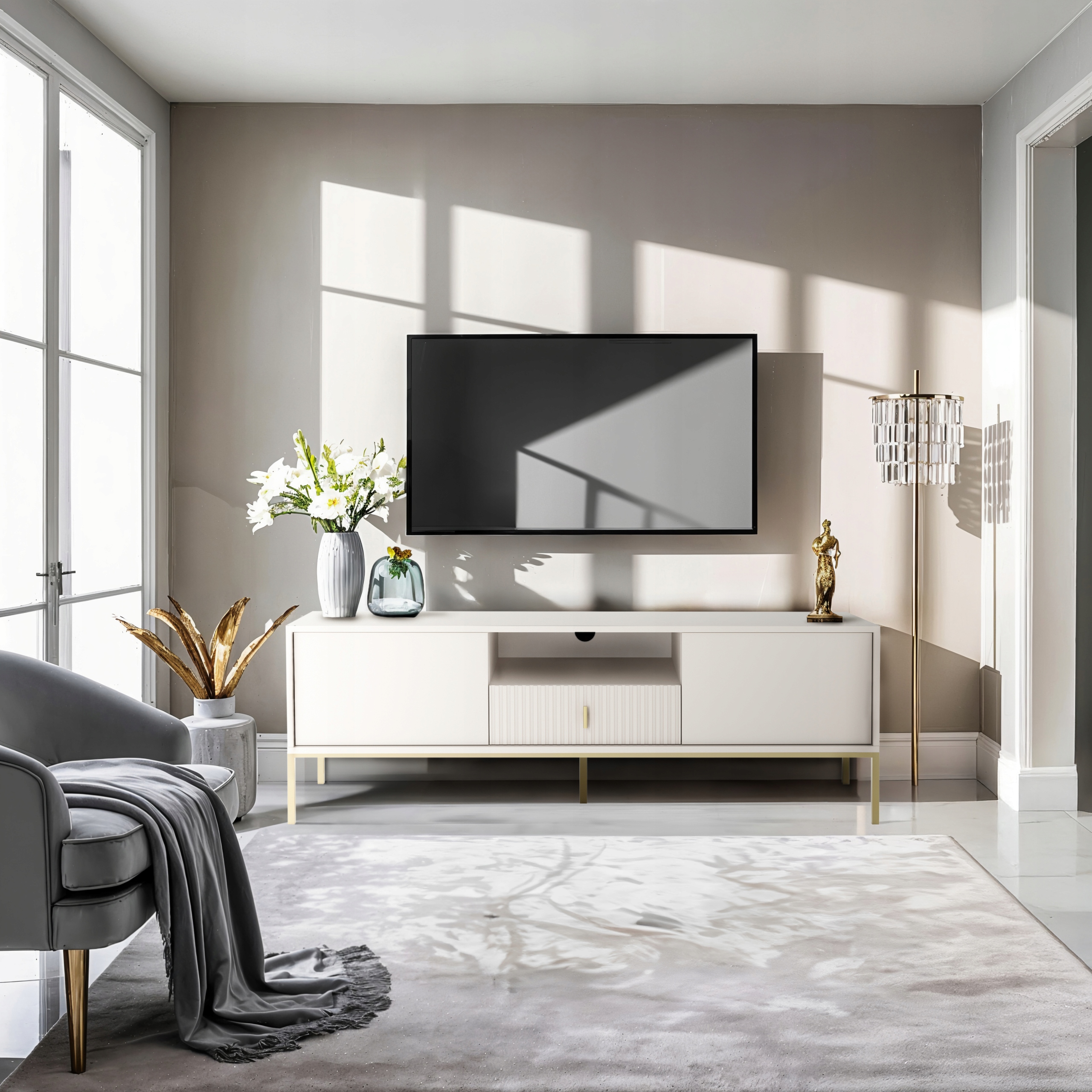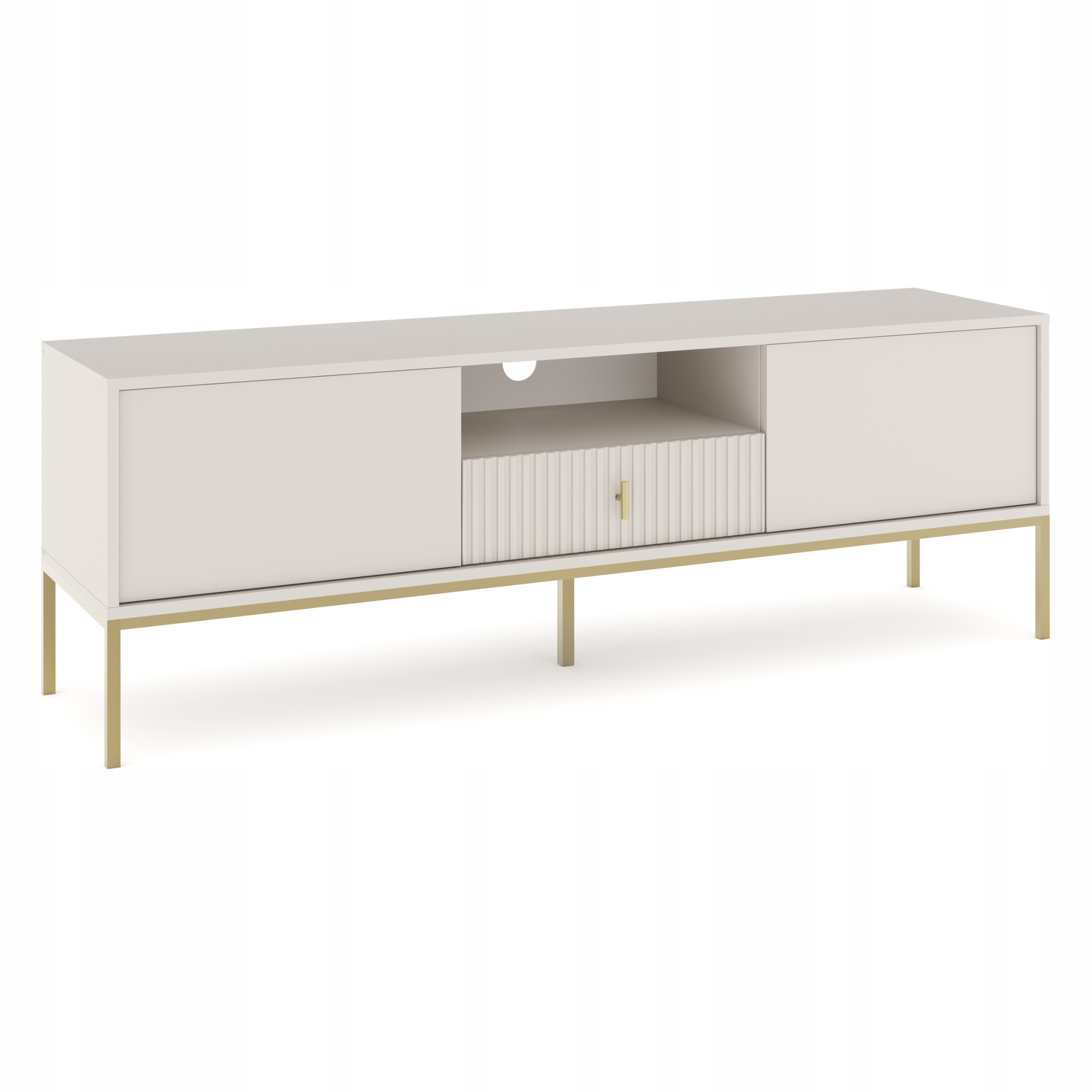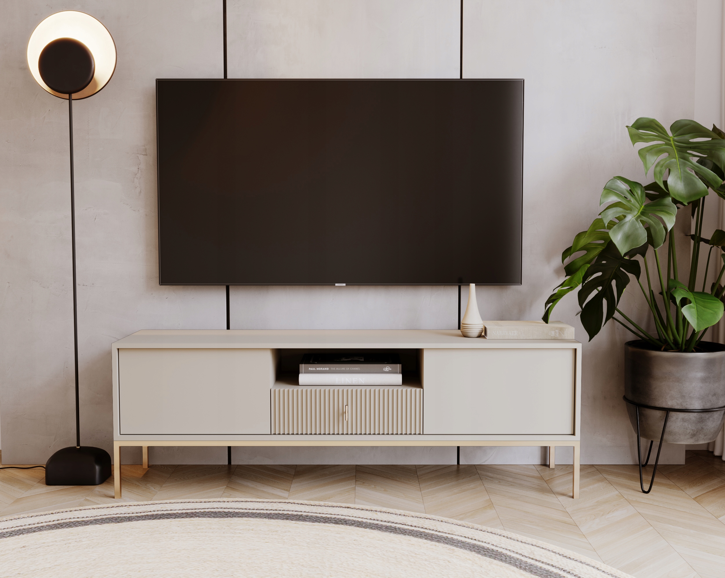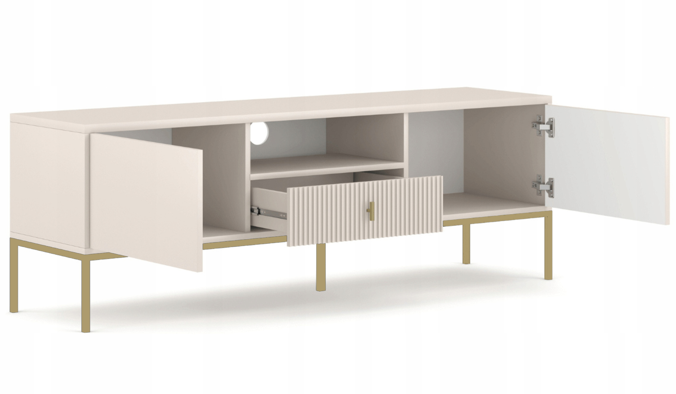 Szafka RTV Kaszmir Pod Telewizor Stojąca Ryflowana Beż Złoty MARCOS ⭐⭐⭐⭐⭐