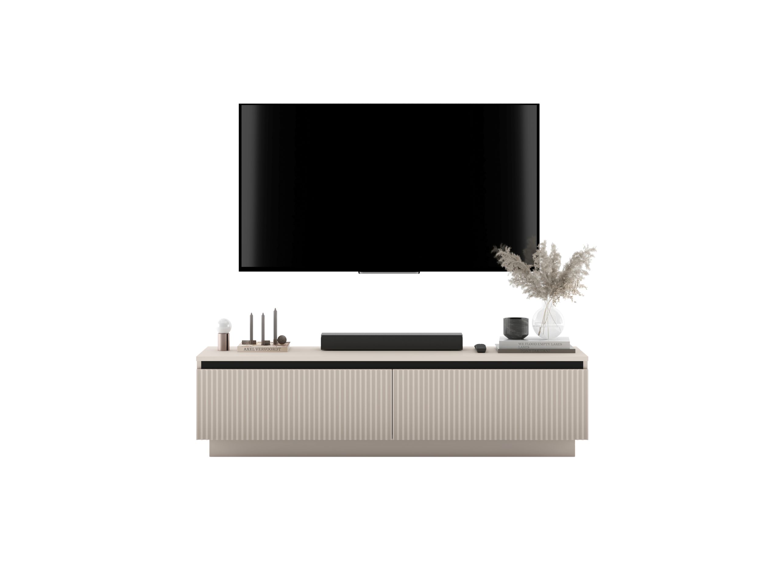 Szafka RTV SELENE to elegancki mebel w stylu Glamour, który harmonijnie łączy nowoczesny design z funkcjonalnością. Podzielona na dwie przestronne, zamykane komory, zapewnia użytkownikom wygodne i praktyczne miejsce do przechowywania. Dzięki uchylnym drzwiczkom z blokadą opadania oferuje łatwy dostęp do wnętrza. Szafka wyposażona jest w system "push to open", który eliminuje konieczność stosowania uchwytów, nadając jej estetyczny i minimalistyczny wygląd. Charakterystyczne ryflowane fronty wyróżniają ją na tle innych szafek RTV, podkreślając nowoczesny i luksusowy charakter. Produkt może zostać zamontowany w wersji wiszącej lub stojącej na drewnianym cokole. Pozwala to na dostosowanie się do indywidualnych potrzeb użytkownika. SELENE to doskonały wybór dla osób, które cenią elegancję i nowoczesne rozwiązania w aranżacji wnętrz.