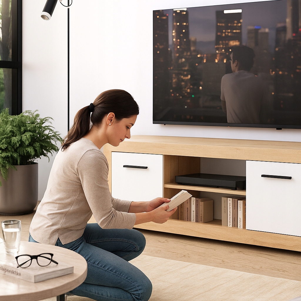 - W salonie – jako szafka pod telewizor lub wolnostojący mebel do przechowywania.