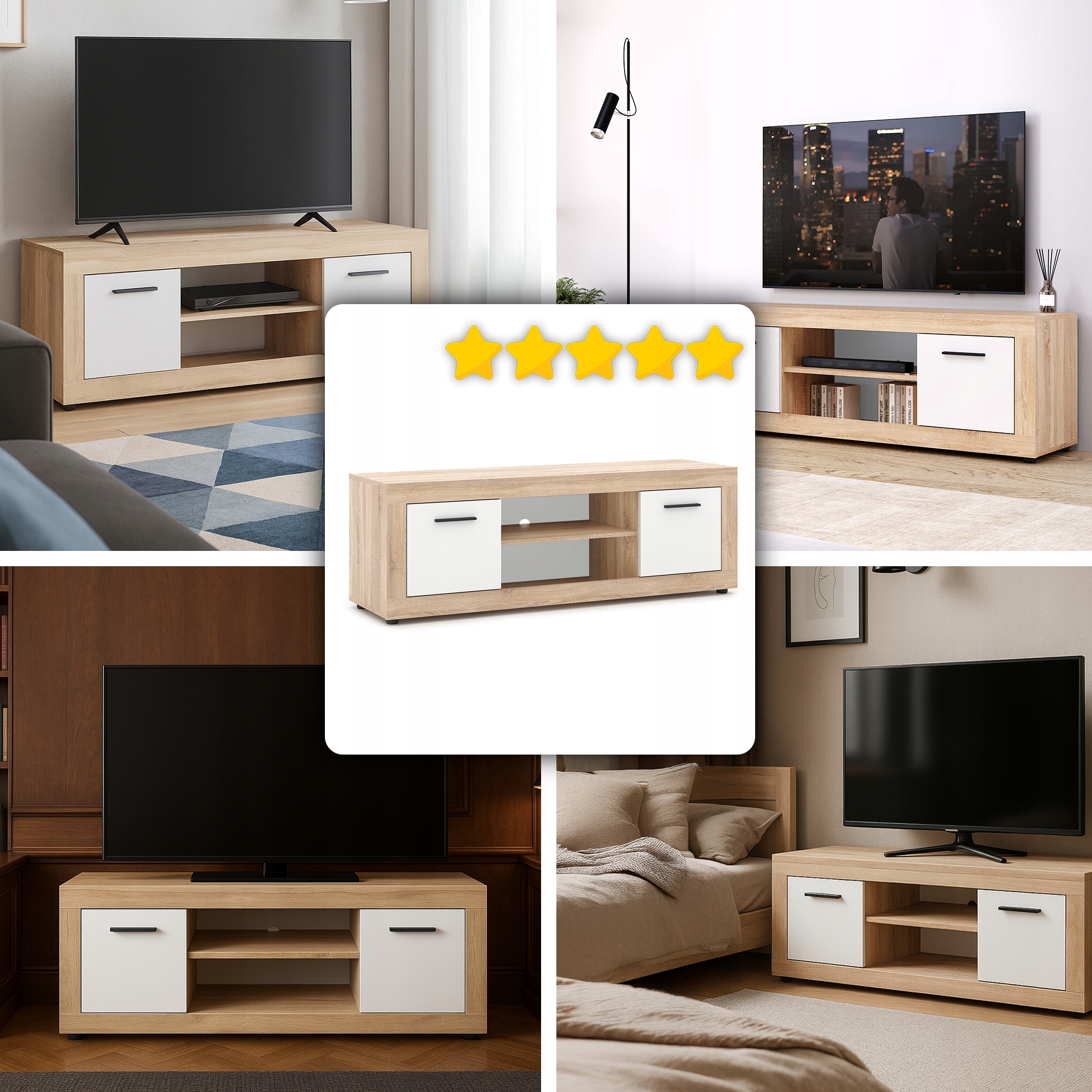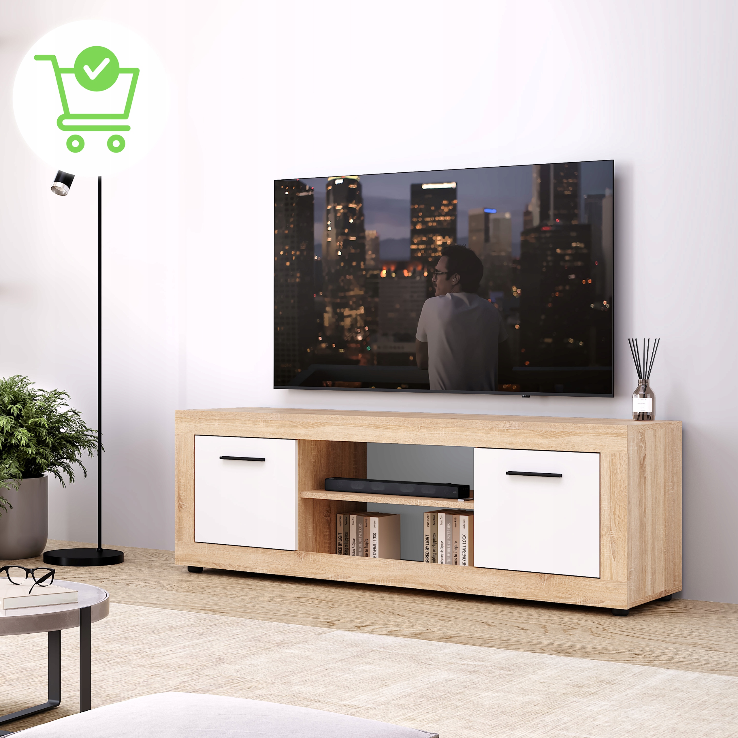 ✨ Szafka RTV Pod Telewizor Komoda Do Salonu Sypialni BLAGO Biały Dąb Sonoma