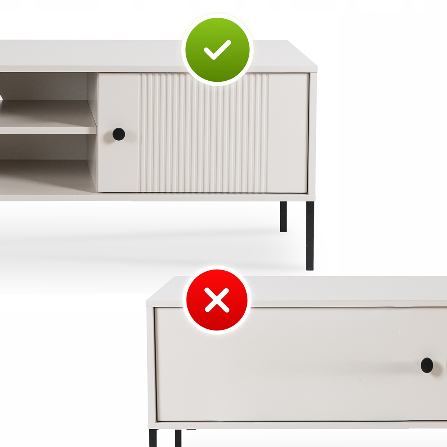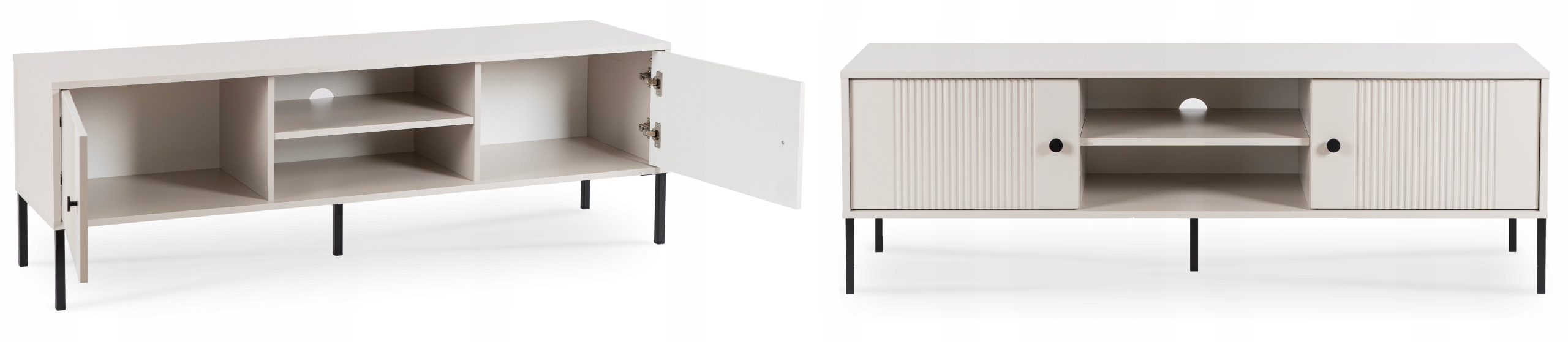 - Ozdobne ryflowanie – eleganckie pionowe frezowania dodają meblowi wyrazistości i stylu, idealnie wpisując się w nowoczesne trendy wnętrzarskie.