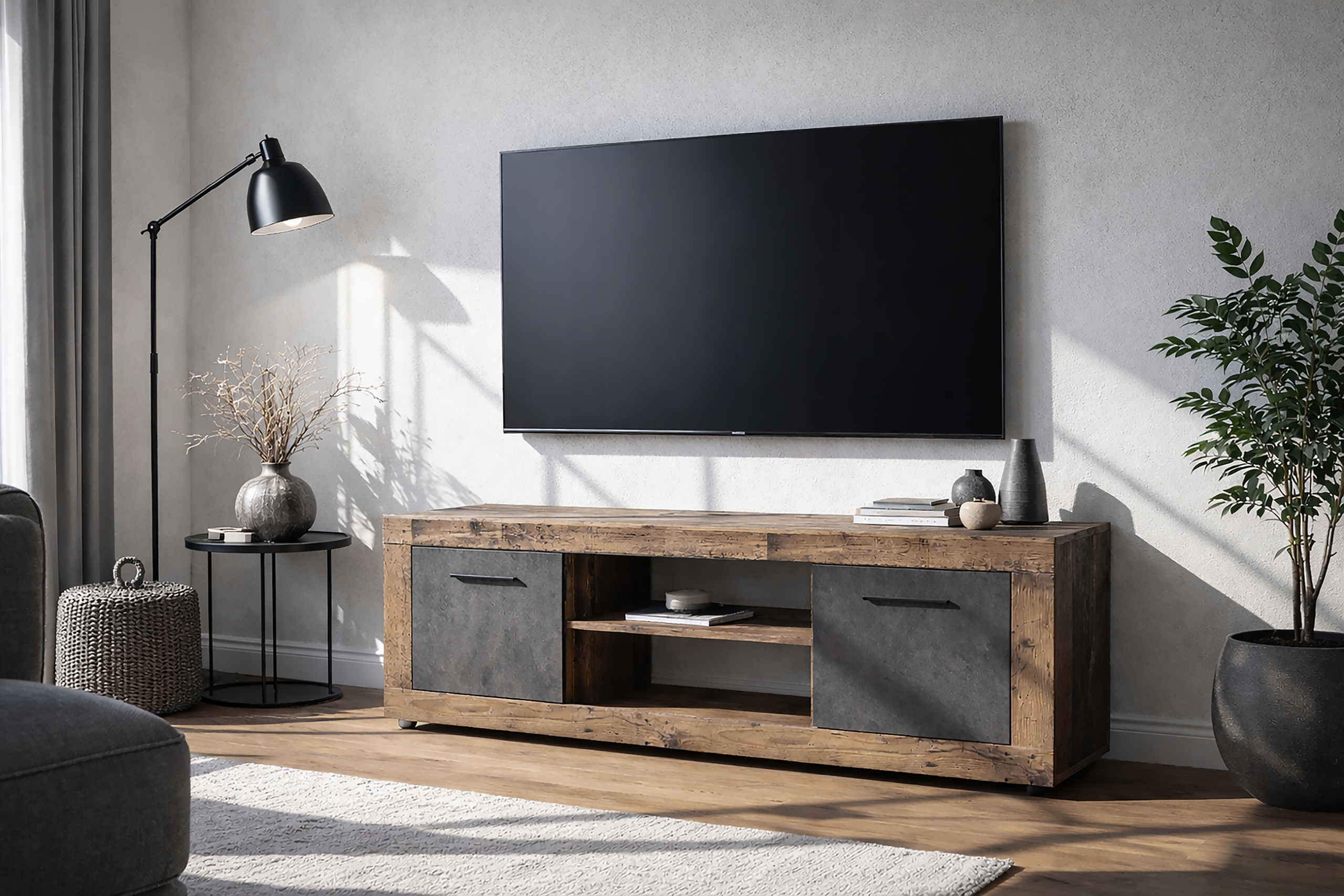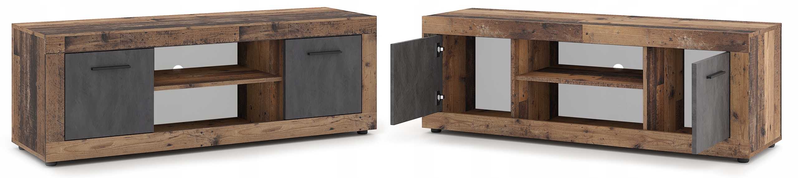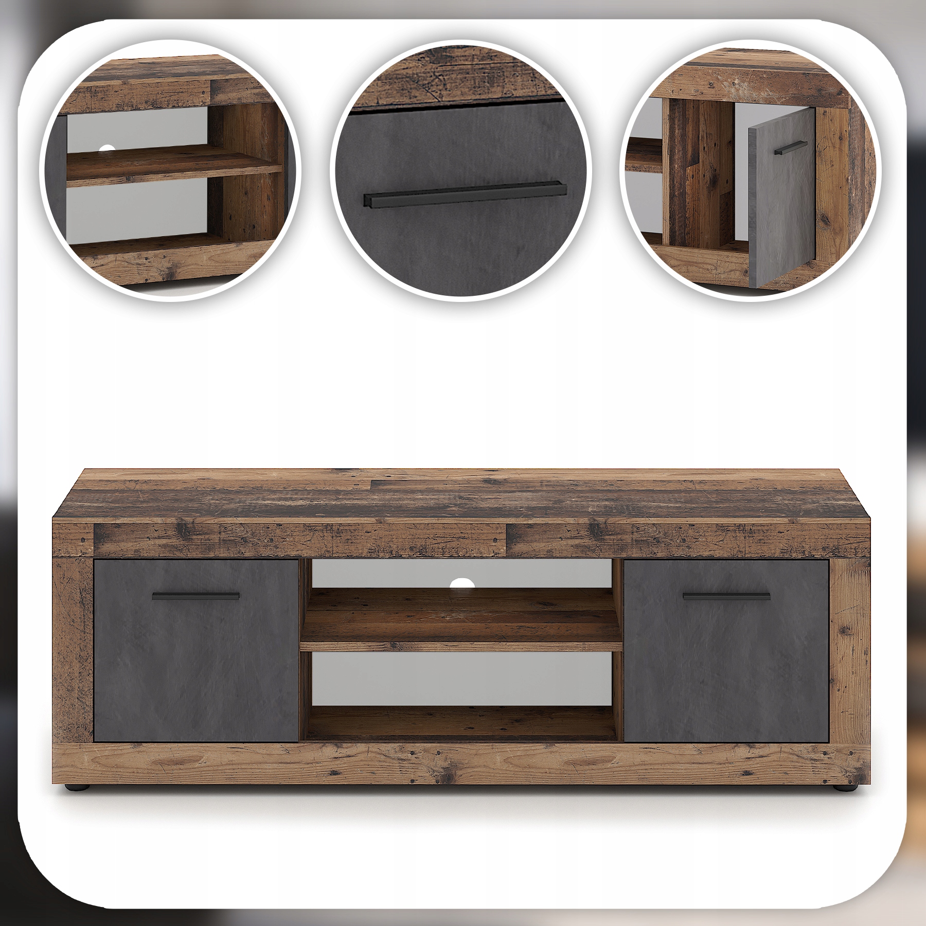 Nowoczesna szafka RTV BLAGO o wymiarach 140 x 40 x 48 cm w kolorze dąb rustykalny z grafitowymi frontami to stylowe i funkcjonalne rozwiązanie do salonu lub sypialni. Posiada praktyczne półki, zamykane szafki i otwór na przewody. To doskonała propozycja dla osób ceniących nowoczesne wzornictwo, dużą pojemność i solidność wykonania. Świetnie sprawdzi się w salonie, sypialni, przedpokoju czy biurze – wszędzie tam, gdzie liczy się design i wygoda przechowywania.
