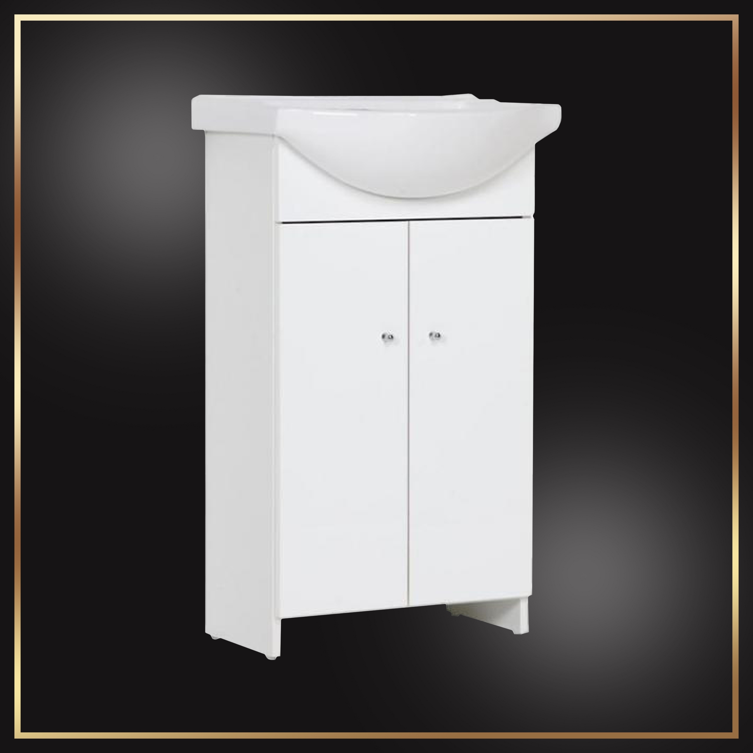 Szafka Stojąca Biała Matowa Łazienkowa z Umywalką 50 cm Płyta Laminowana