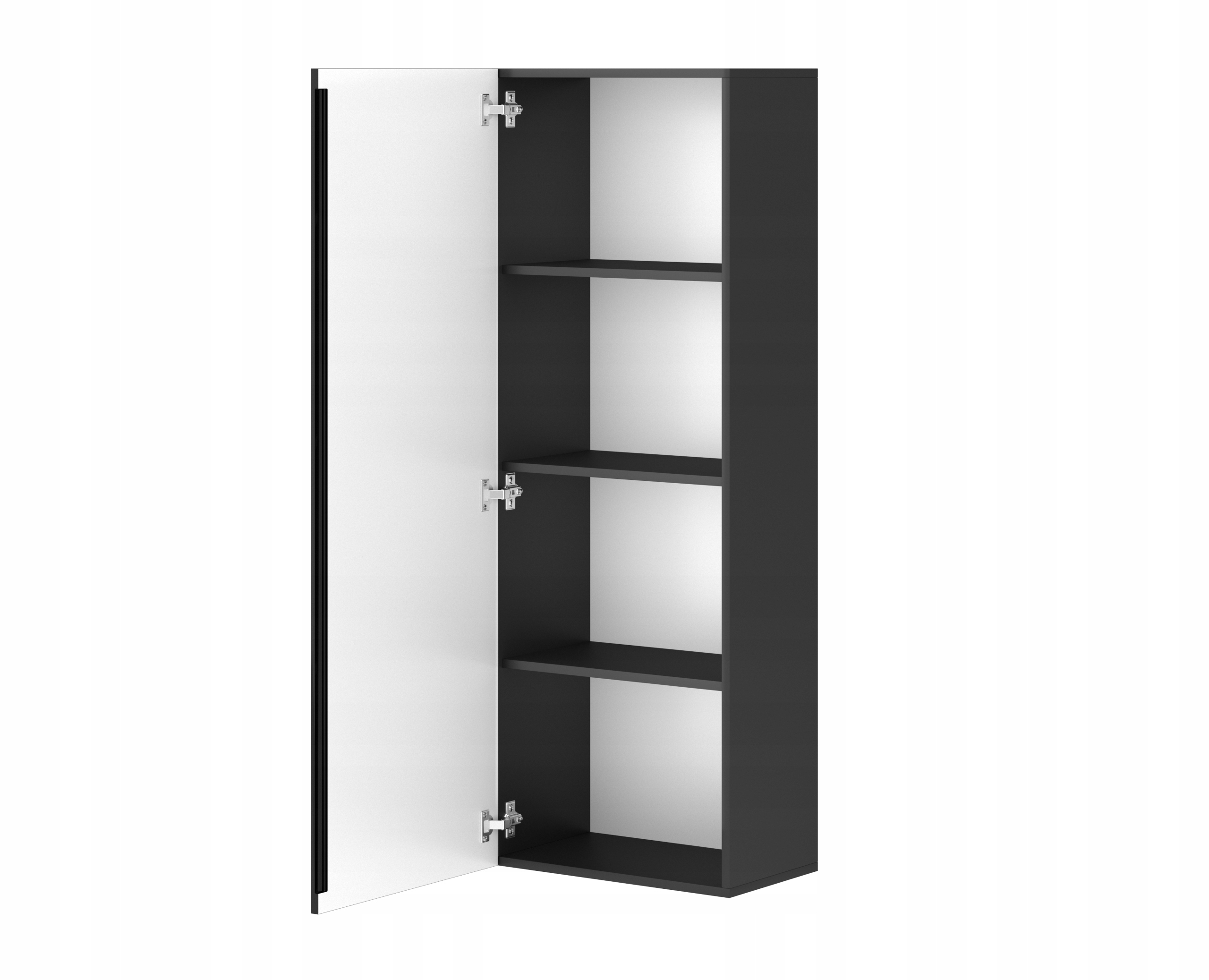 Drzwi otwierane na bok wyposażone są w zawiasy z systemem cichego domyku, co zapewnia komfort i bezpieczeństwo codziennego użytkowania. Wewnątrz znajdują się trzy pojemne półki, idealne na kosmetyki, środki czystości lub inne akcesoria.
