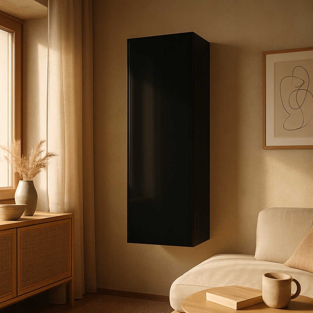 Nowoczesna i funkcjonalna szafka wisząca o wymiarach 140 x 40 x 30 cm to doskonały wybór do łazienki, przedpokoju lub salonu. Jej elegancki front w wykończeniu czarny połysk nadaje wnętrzu wyrazisty i nowoczesny charakter.