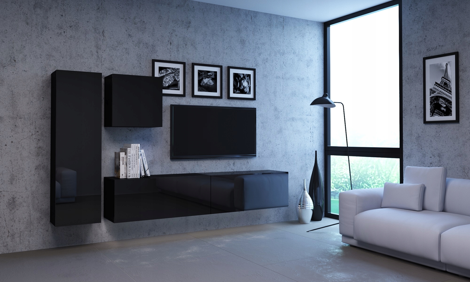 Szafka Wisząca Prostokątna Do Salonu Sypialni VIVIEN Czarny Połysk ⭐⭐⭐⭐⭐