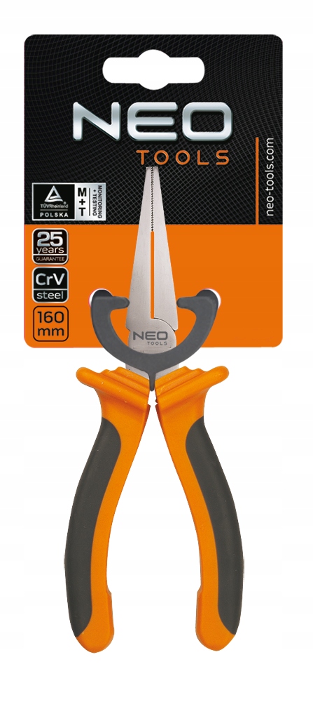Szczypce płaskie NEO (nr ref. 01-019) o wymiarze 160 mm, wykonane zgodnie z normą DIN5745. Szczęki z wysokiej jakości stali, hartowane indukcyjnie (55-60 HRC) zapewniają mocny chwyt. Dwumateriałowa, ergonomiczna rękojeść podnosi komfort użytkowania. Jakość narzędzia potwierdzona certyfikatem TÜV i 25-letnią gw. producenta. Marka NEO spełnia oczekiwania profesjonalistów.
