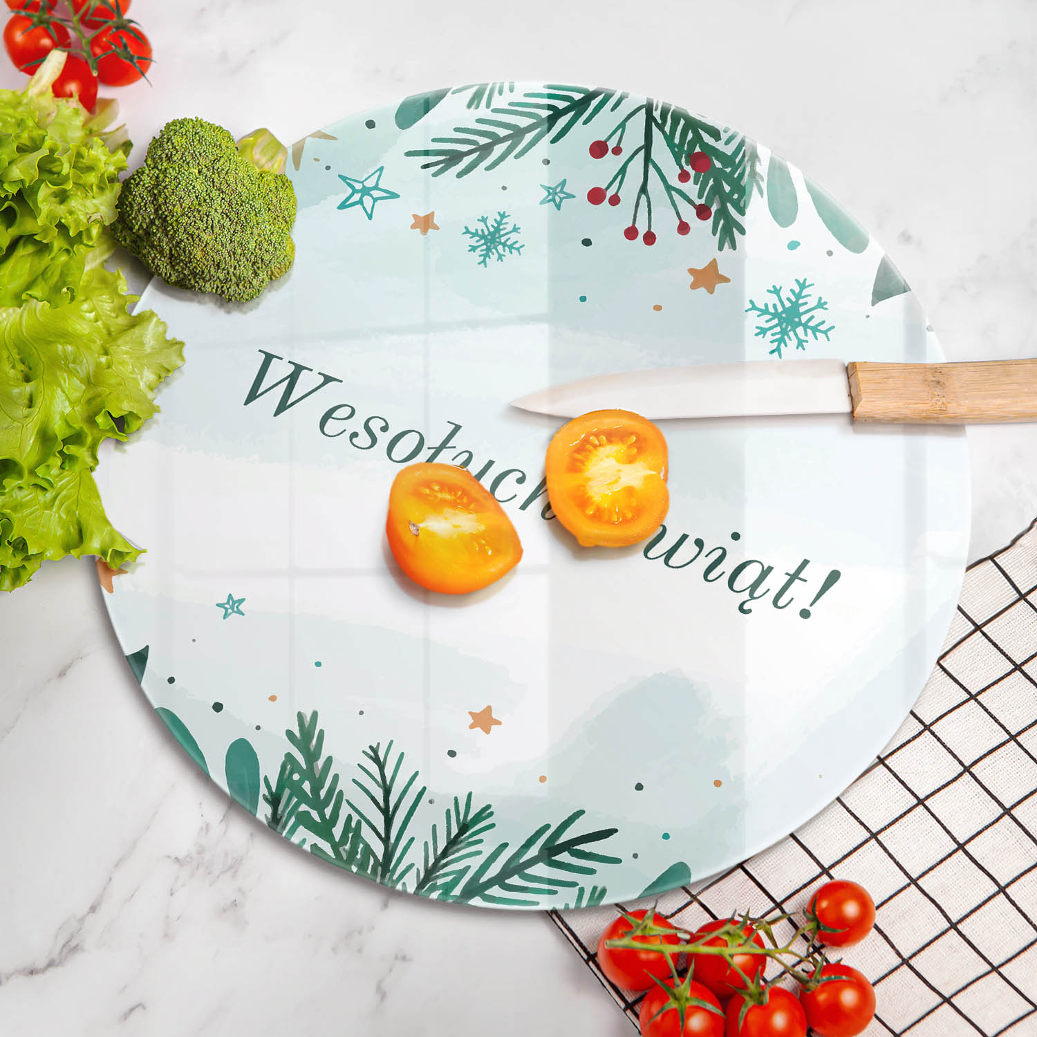 Szklana deska kuchenna z sentencją "Wesołych Świąt!" 40 cm