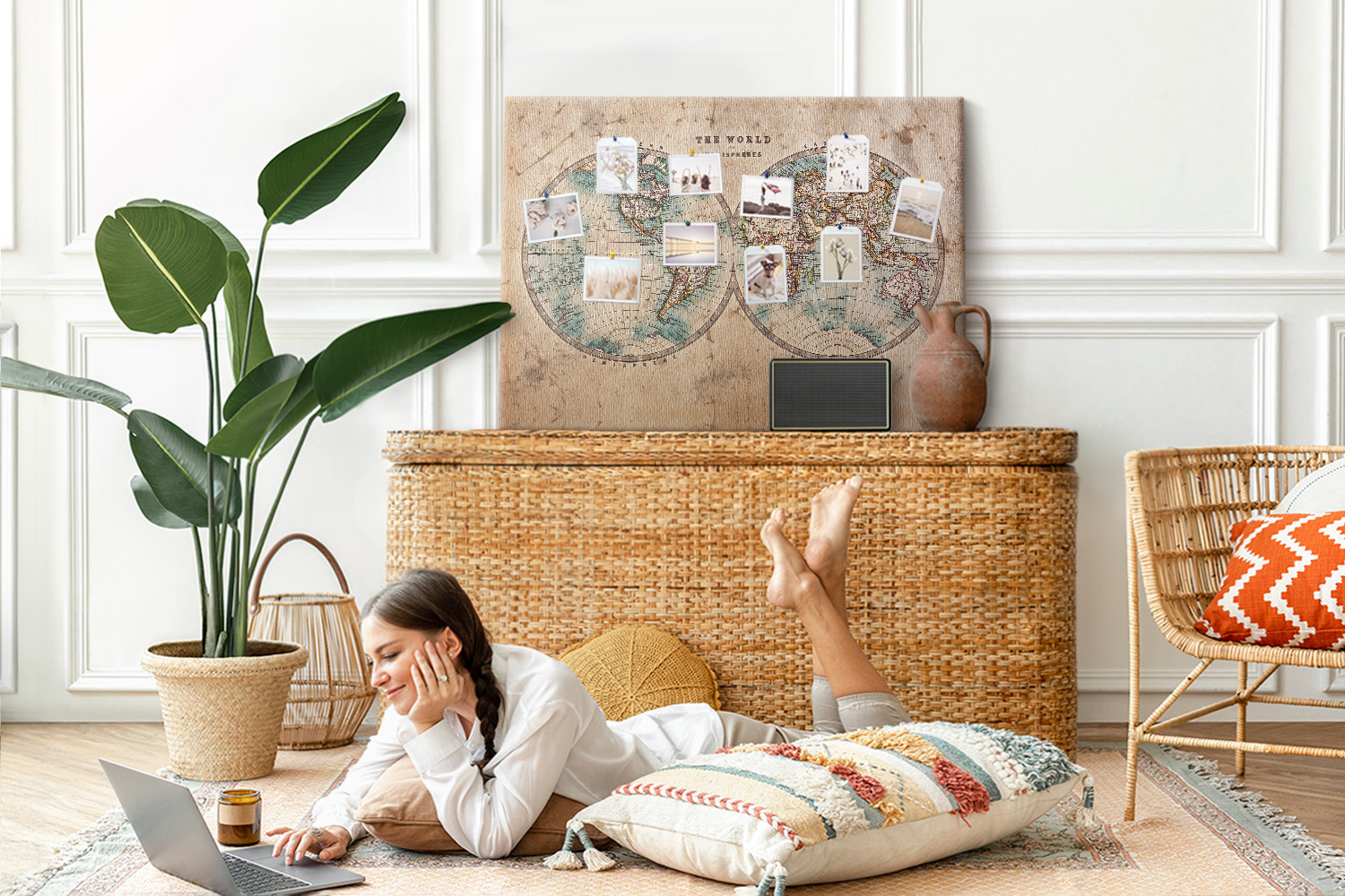 Nasze tablice korkowe dodadzą do każdego z pomieszczeń element zaskoczenia i spektakularny wygląd. Przestrzeń zyska nowe życie, dzięki pięknym i unikatowym wzorom. Razem z nami zainspiruj się i pobudź swoją kreatywność! Wśród bogatej kolekcji wzorów na pewno znajdziesz coś odpowiedniego dla Twojego stylu i gustu.
