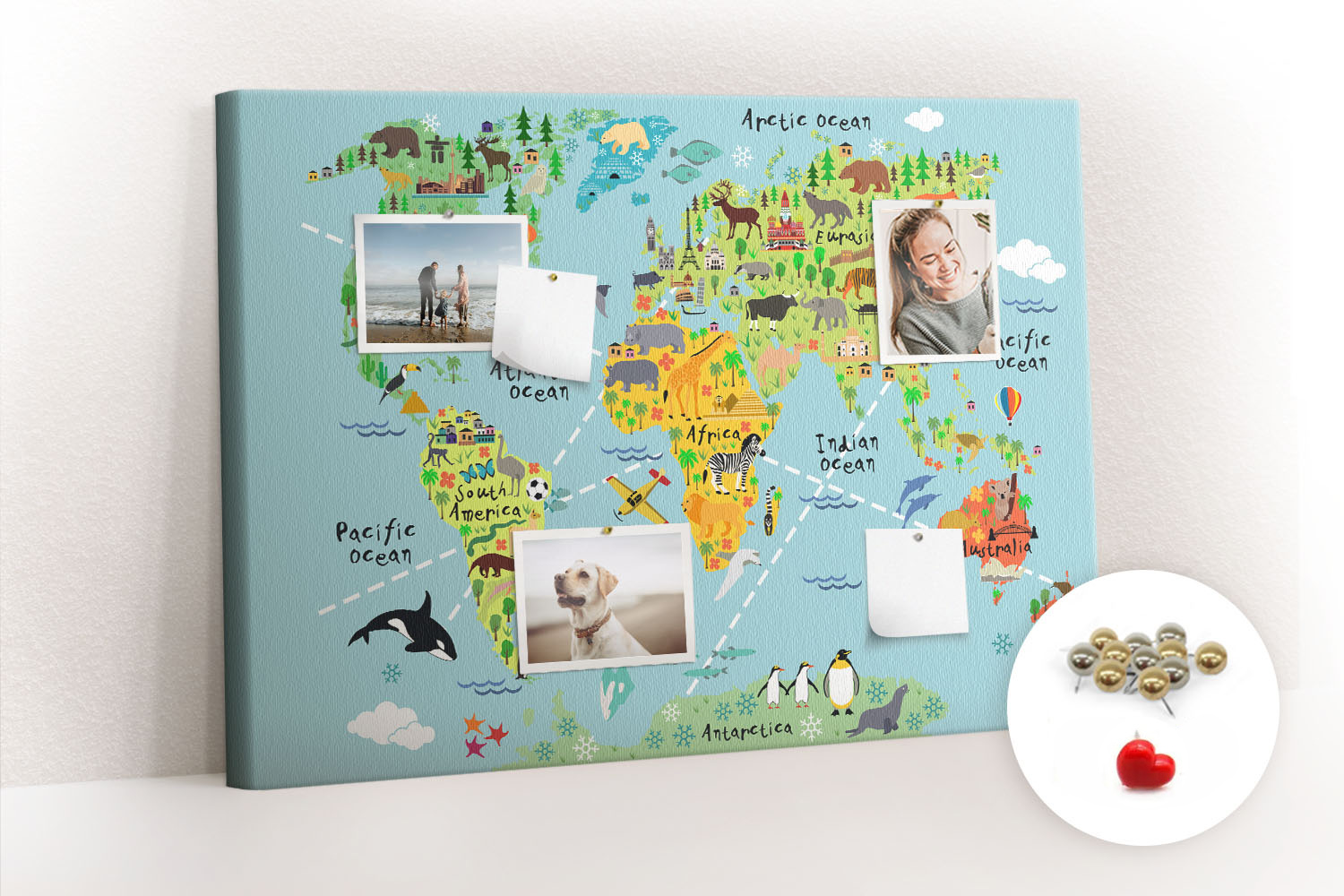 ? Kupując produkt otrzymujesz tablicę z pinezkami pokazanymi na miniaturce.